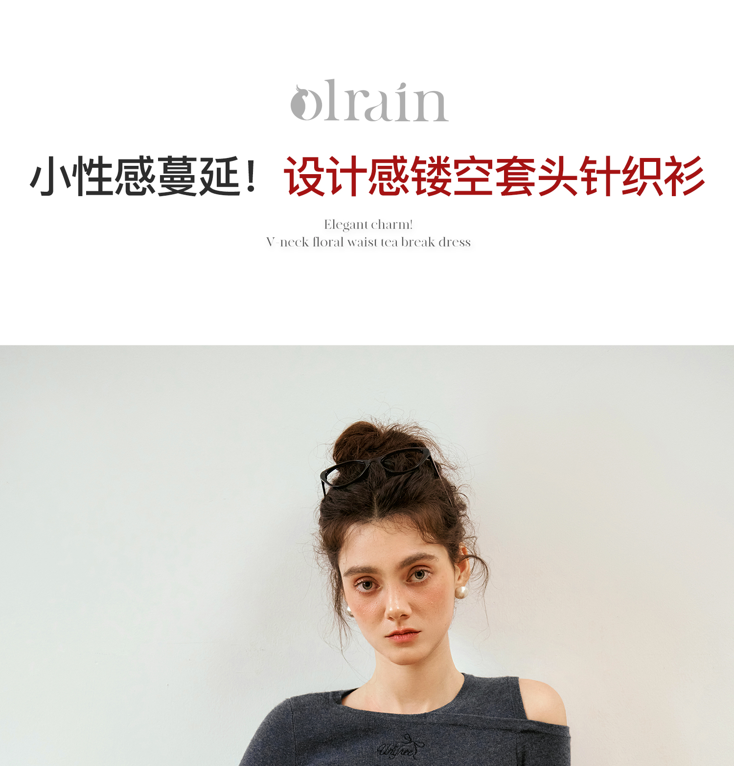 OLrain欧芮儿长袖套头针织衫女秋季2024年新款设计感镂空针织上衣