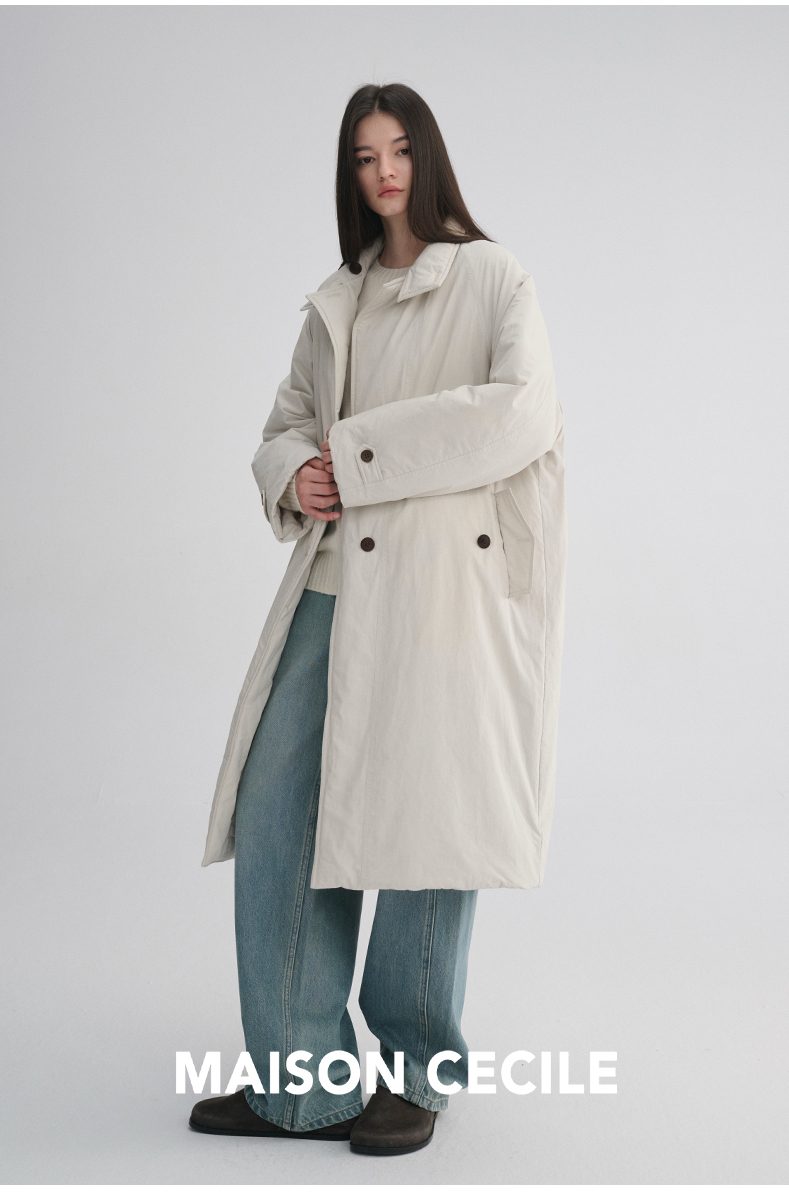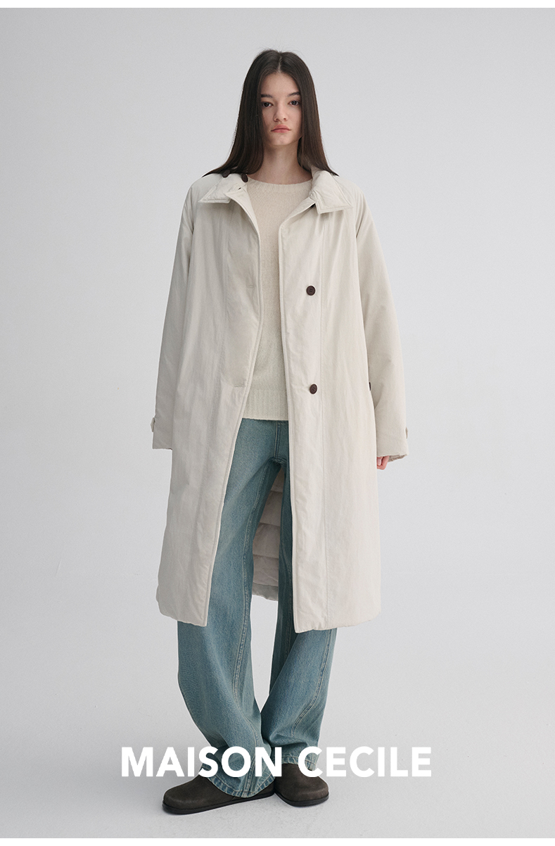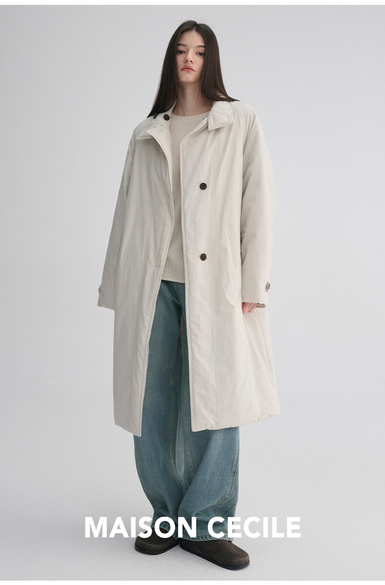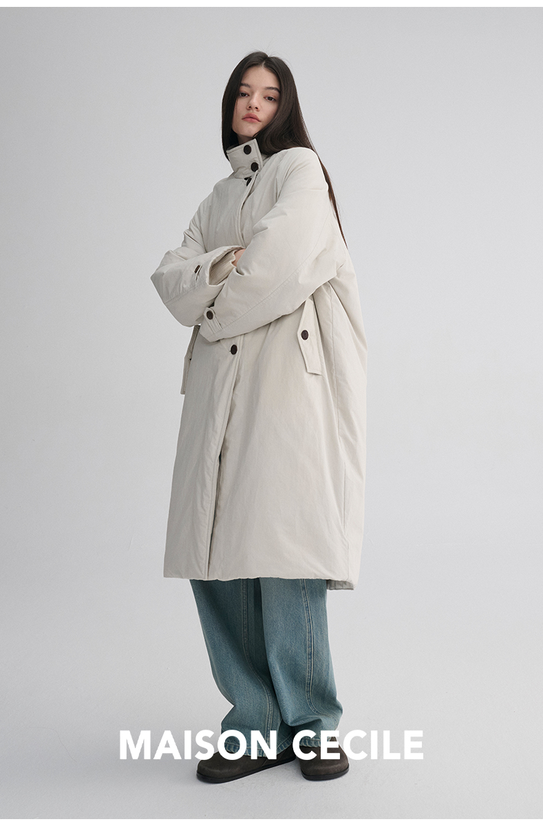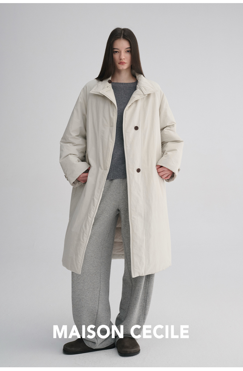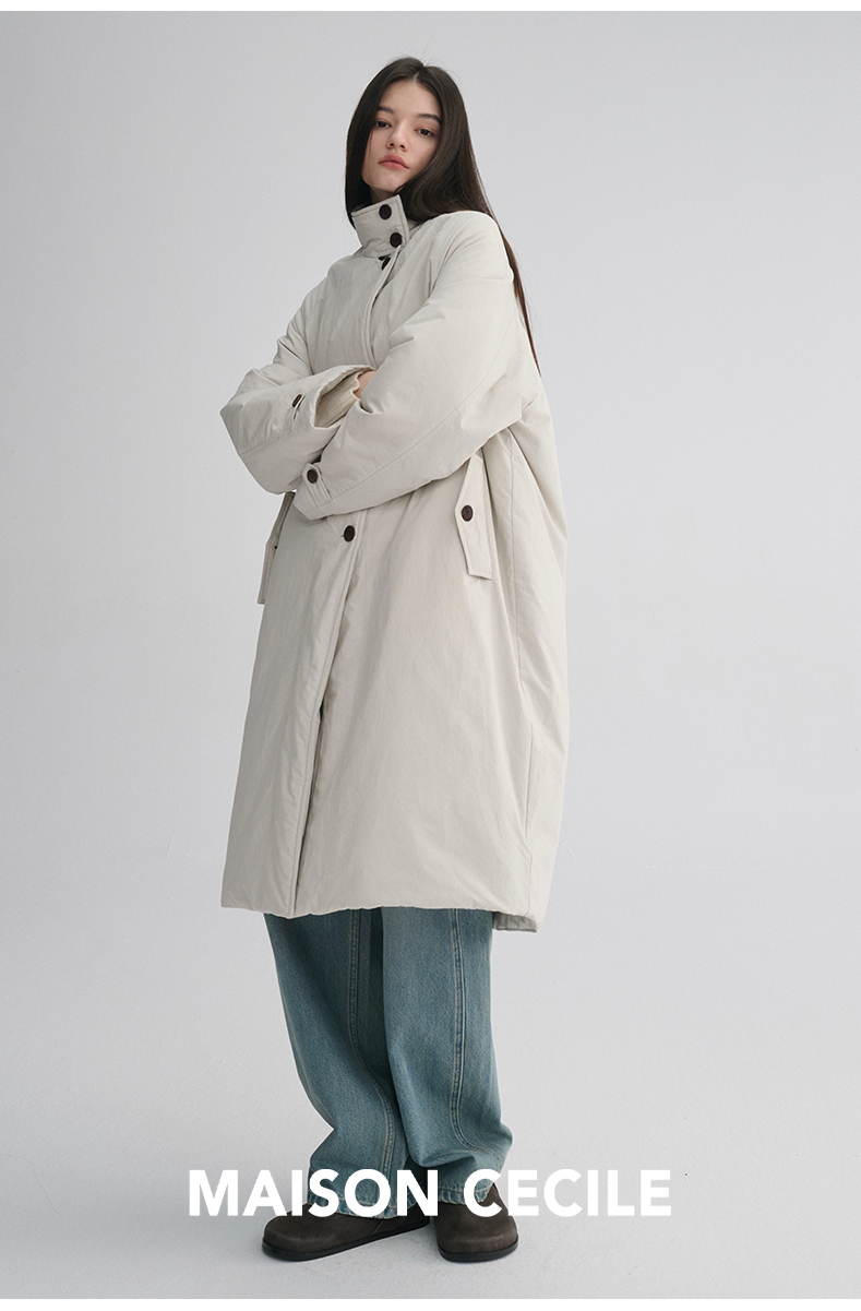 MAISON CECILE 秋冬温暖包裹感廓形百搭可立领长款纽扣棉服