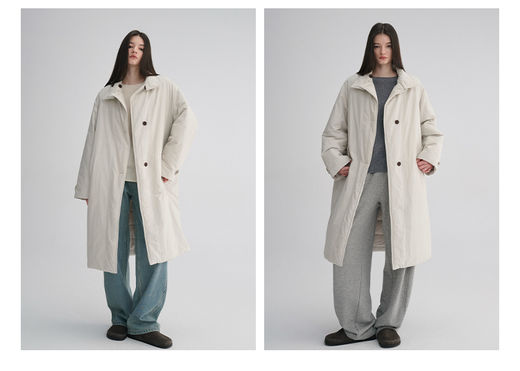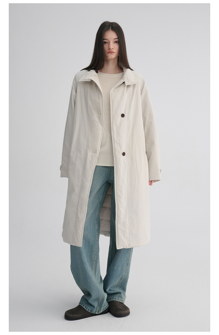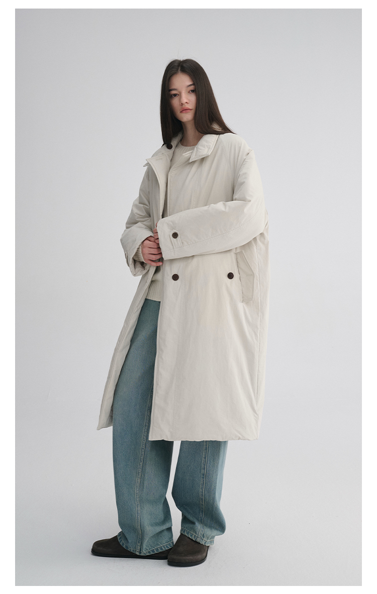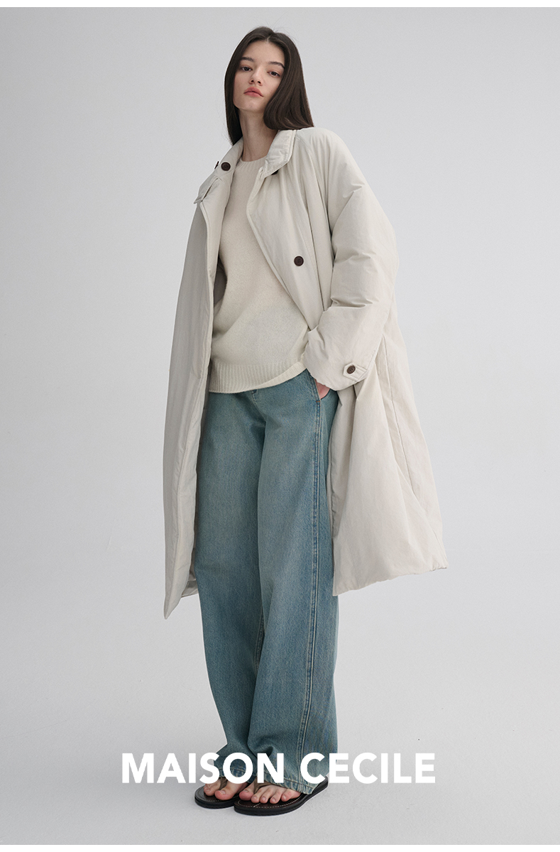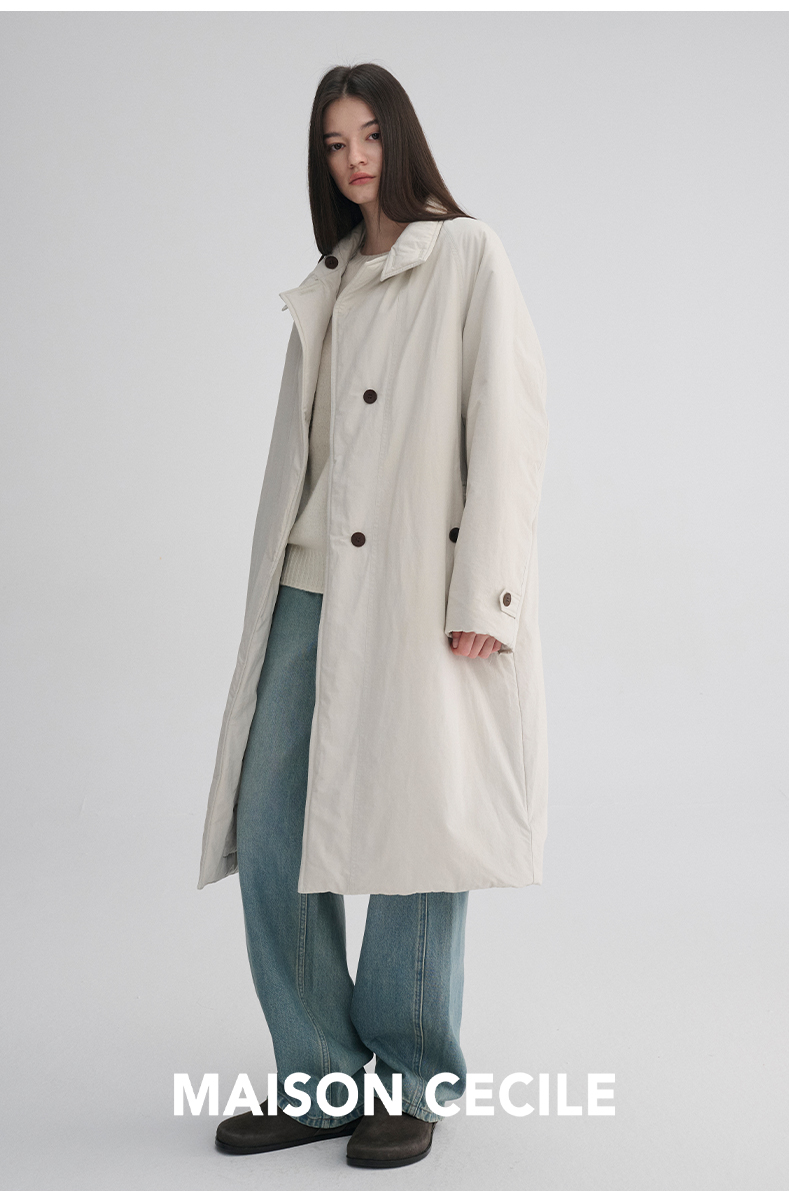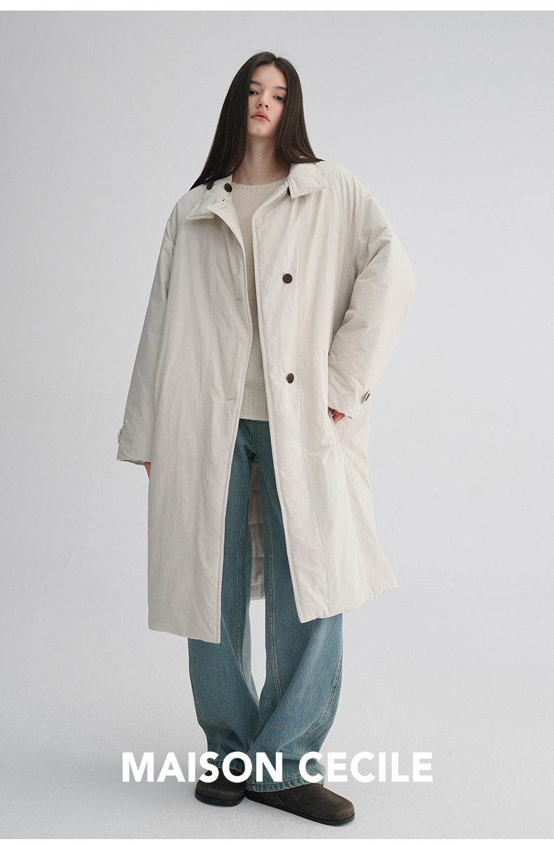 MAISON CECILE 秋冬温暖包裹感廓形百搭可立领长款纽扣棉服