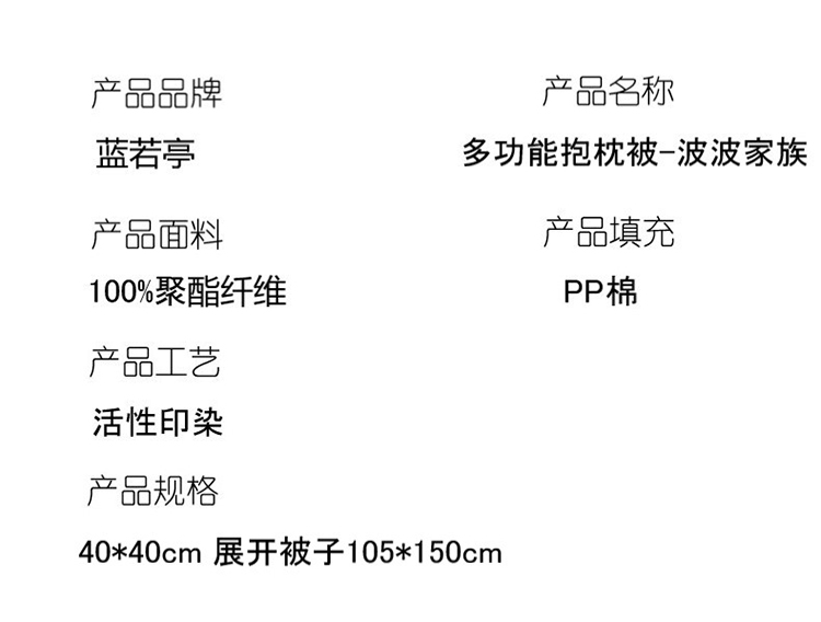 蓝若亭多功能精梳棉抱枕被—波波家族