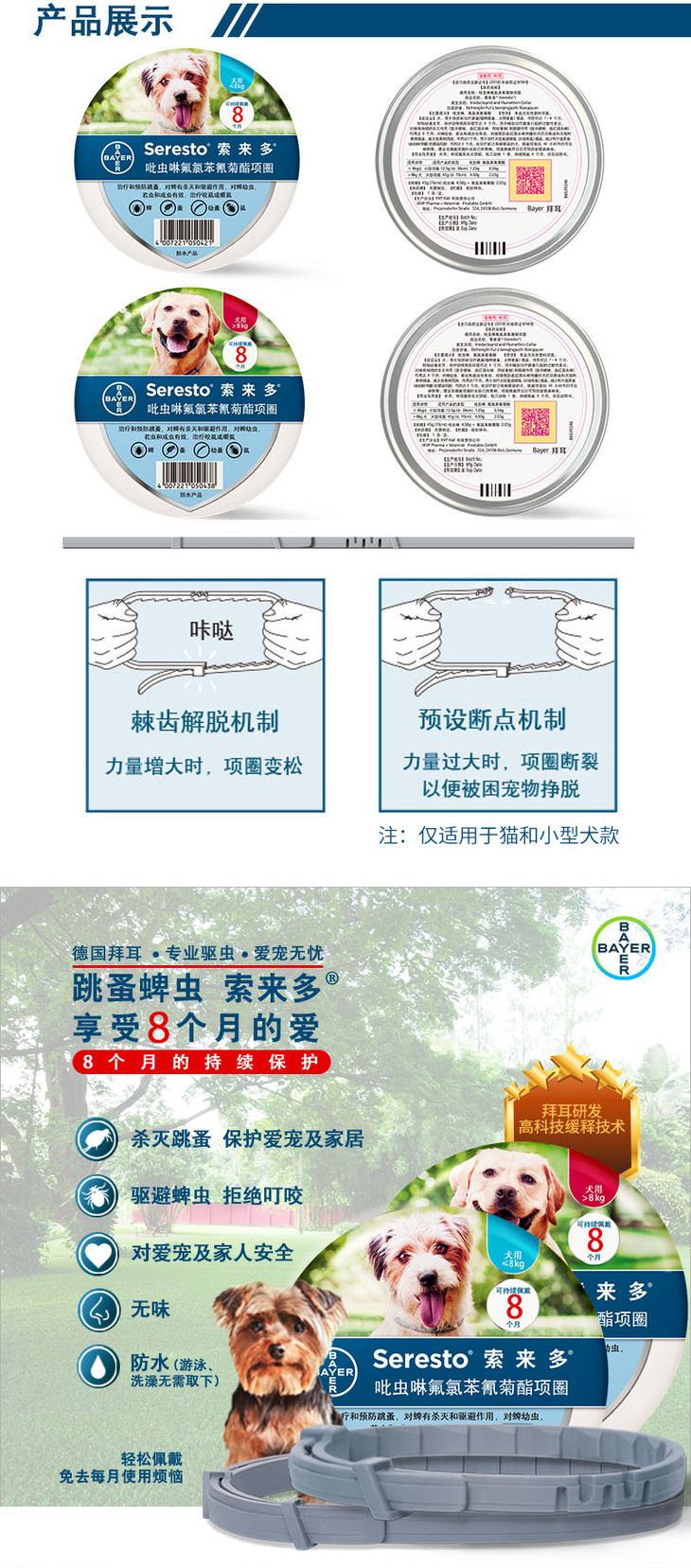 德国拜耳进口索来多猫咪狗狗体外驱虫颈脖项圈除蜱虫跳蚤虱子
