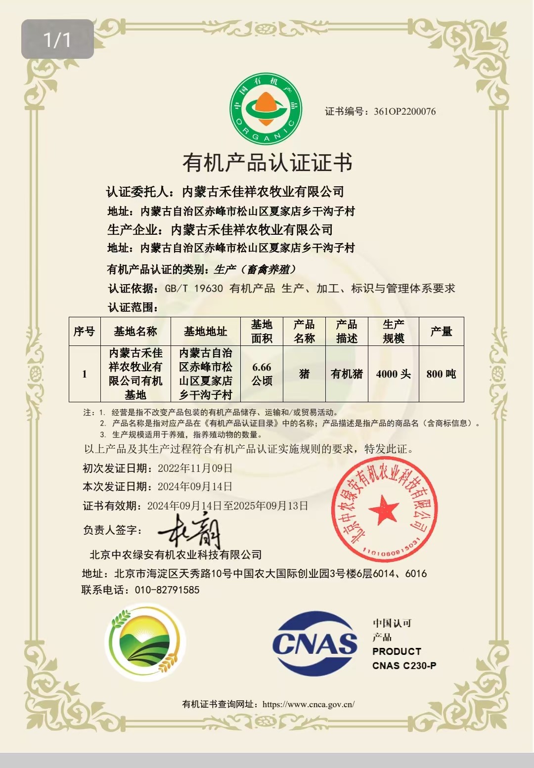 基地概括 禾佳祥有机黑猪养殖基地位于赤峰市松山区夏家店乡干沟村,占地面积200余亩,散养山地面 积2000余亩,基地周边生态环境优越。