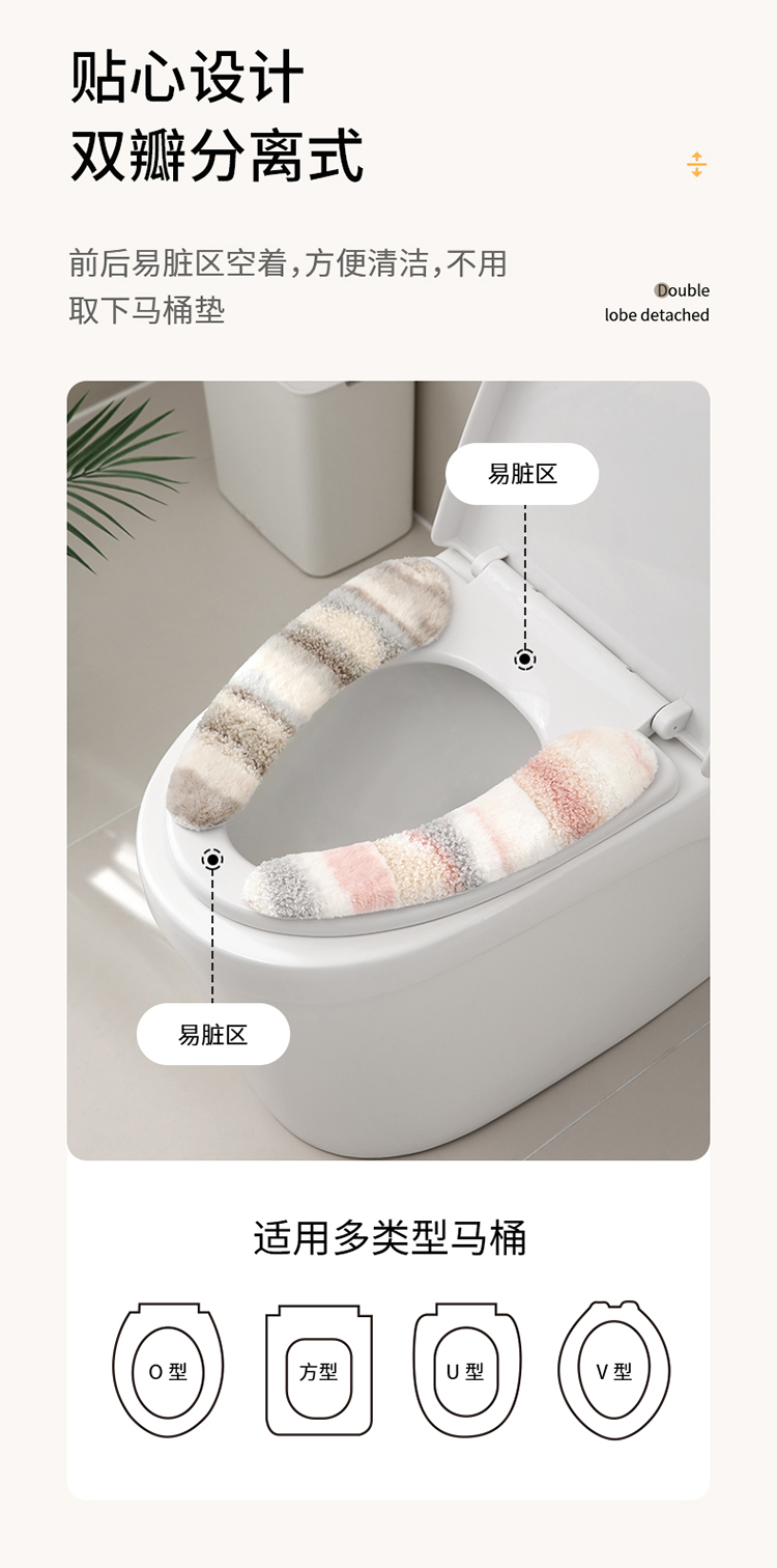 FaSoLa马桶垫坐垫家用加厚毛绒四季通用可水洗马桶圈坐便垫粘贴式