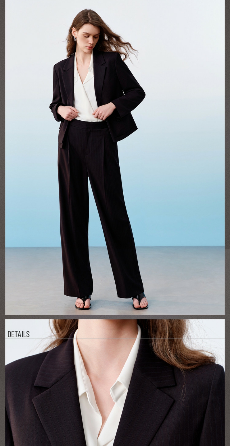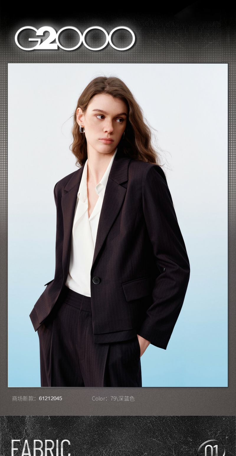 G2000女装SS26商场新款【宽松条纹/可机洗】双层下摆商务通勤西装61212045