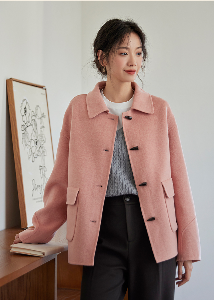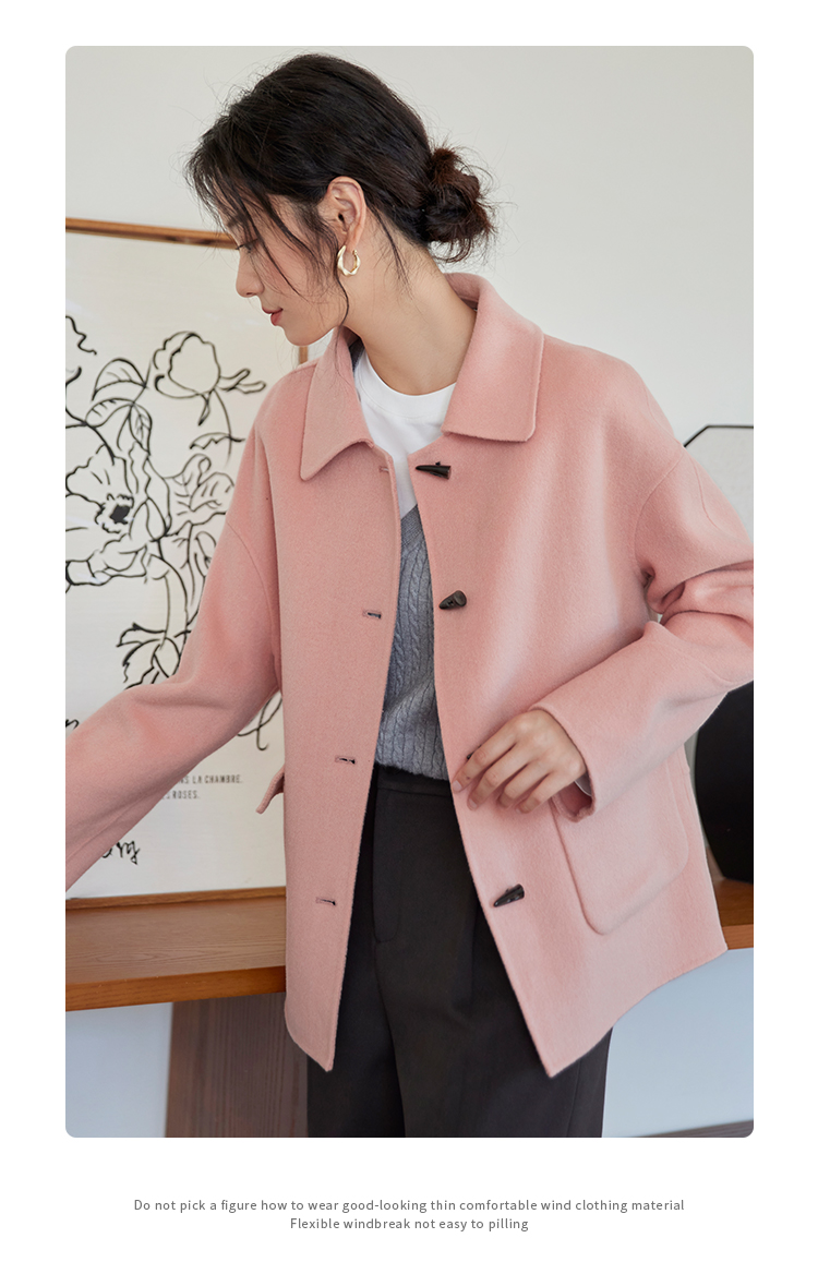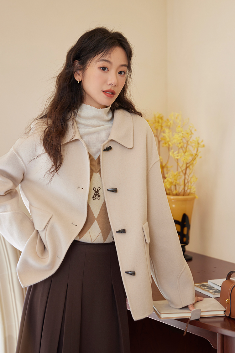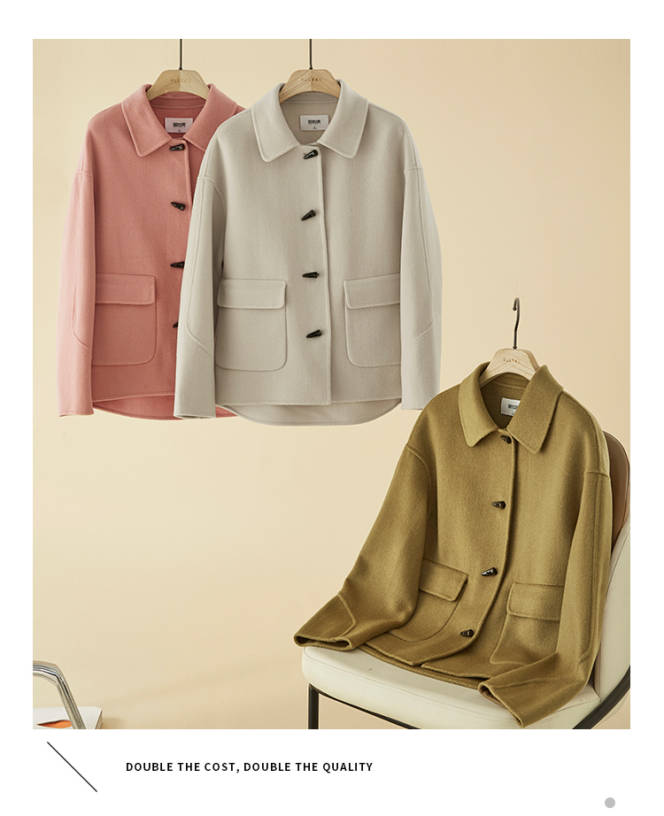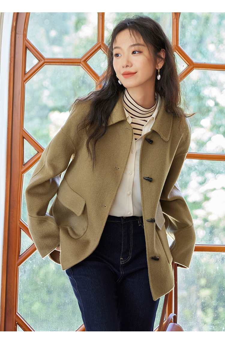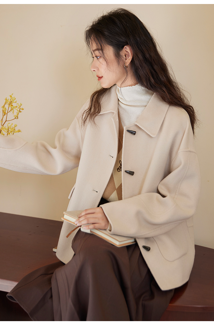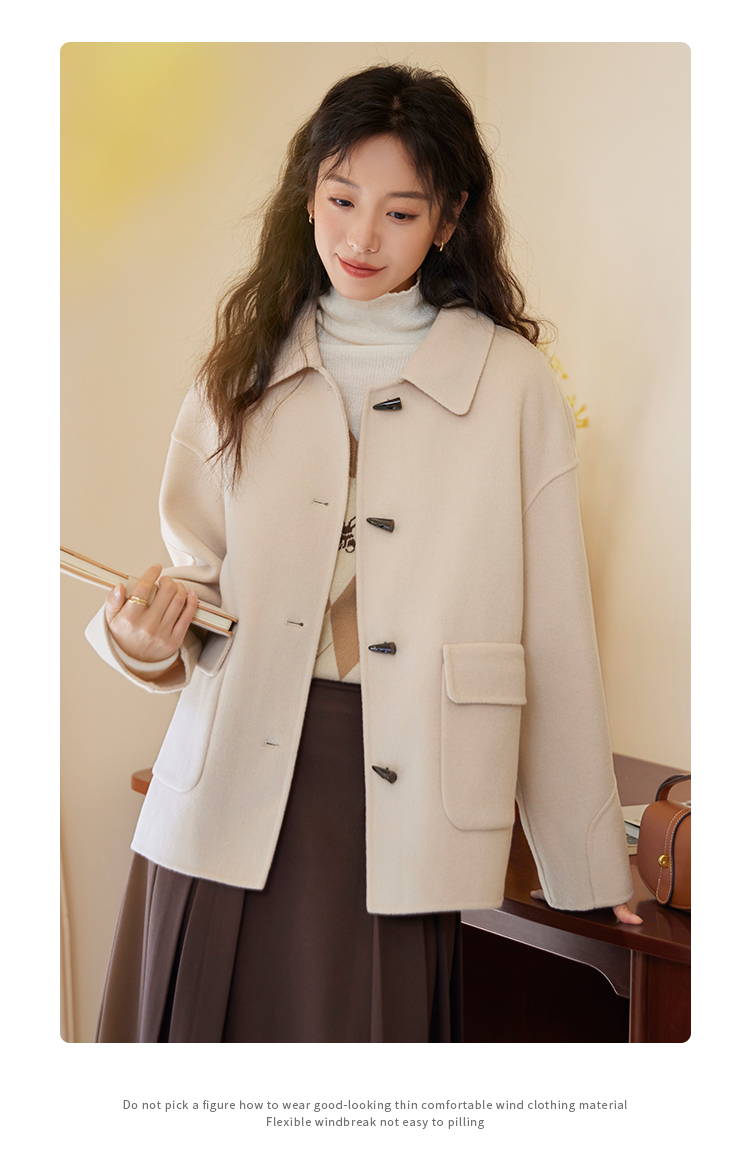 【149元福袋,不支持退换】熙世界双面羊绒大衣女短款小个子羊毛呢子牛角扣外套2025秋冬新款