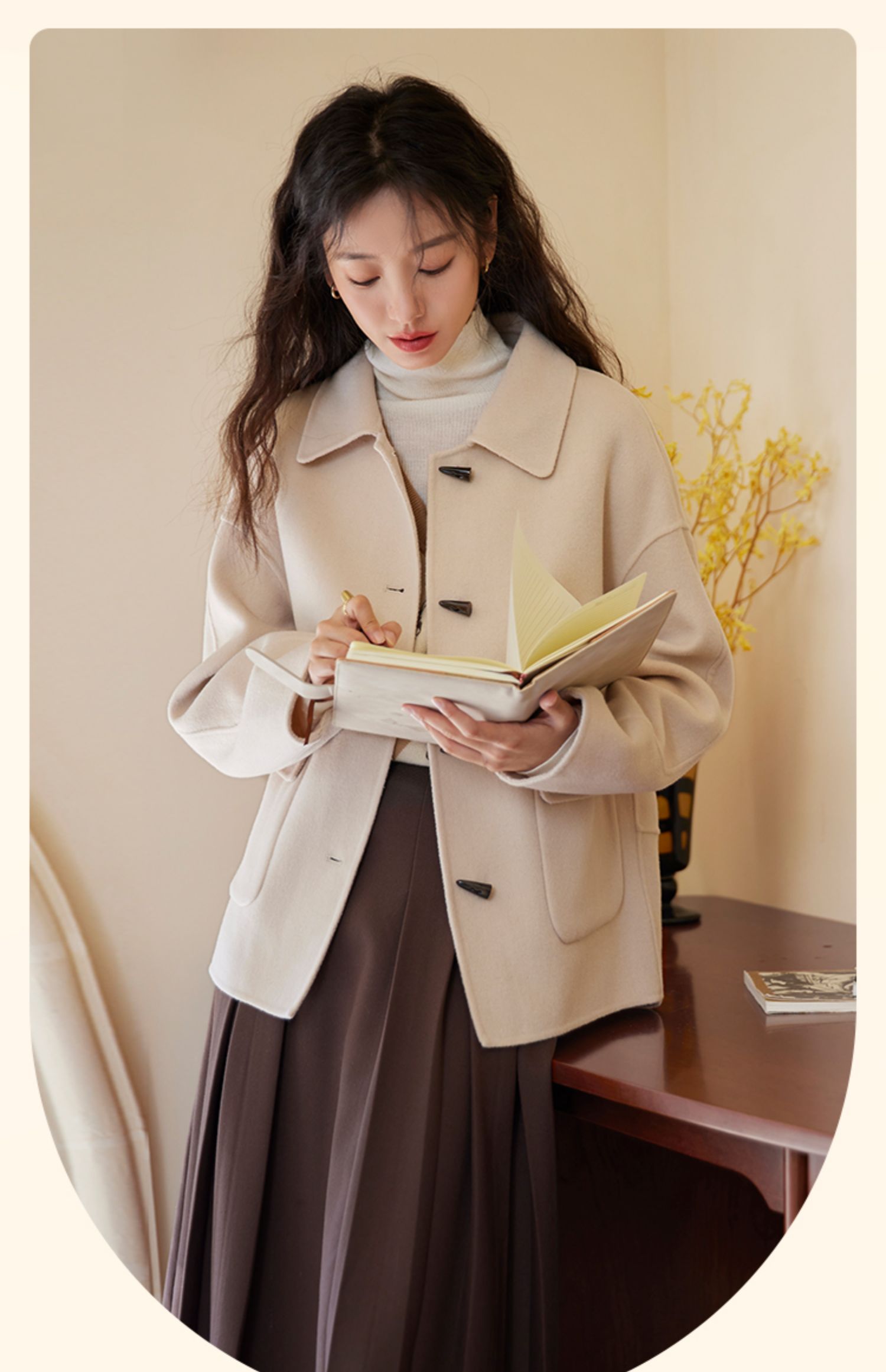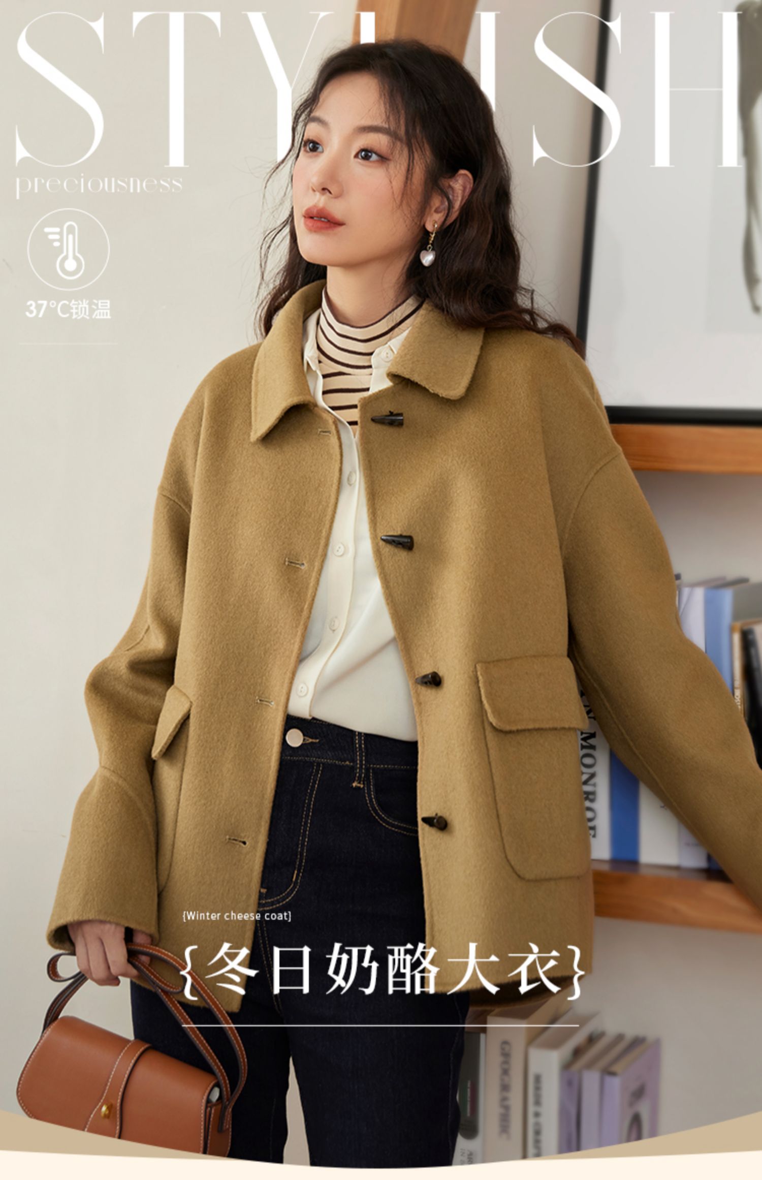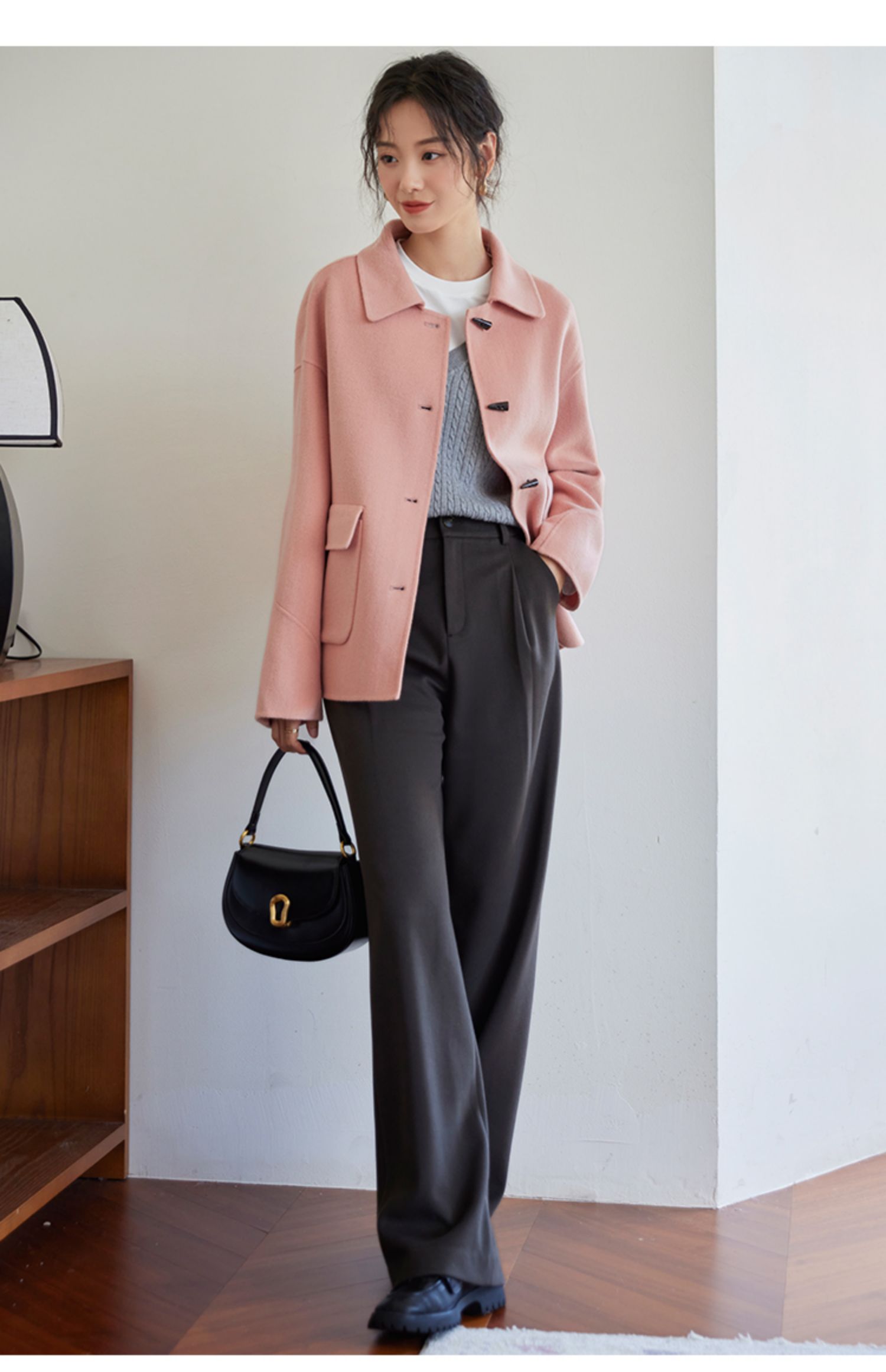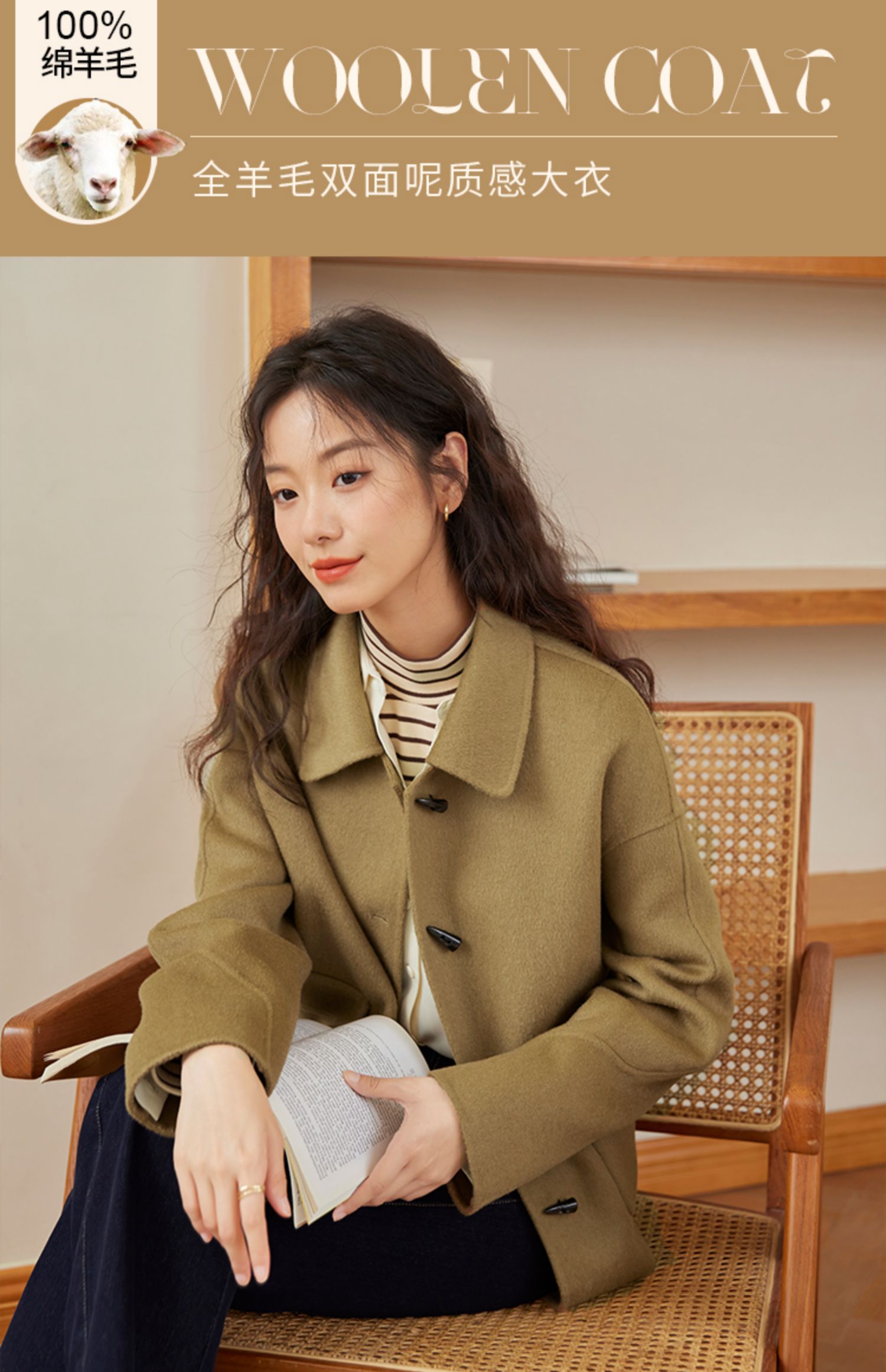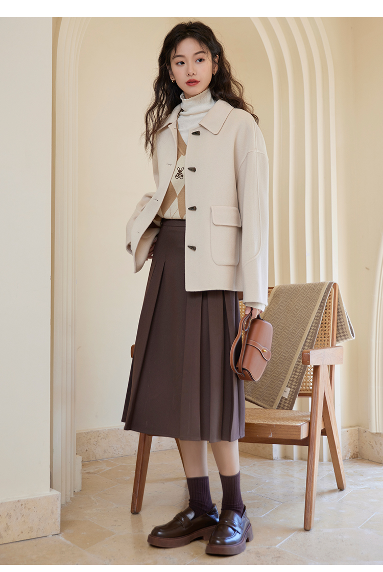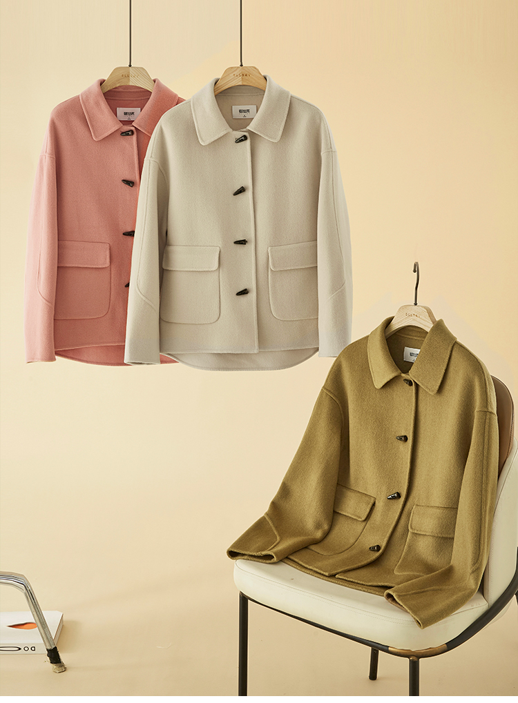 【149元福袋,不支持退换】熙世界双面羊绒大衣女短款小个子羊毛呢子牛角扣外套2025秋冬新款