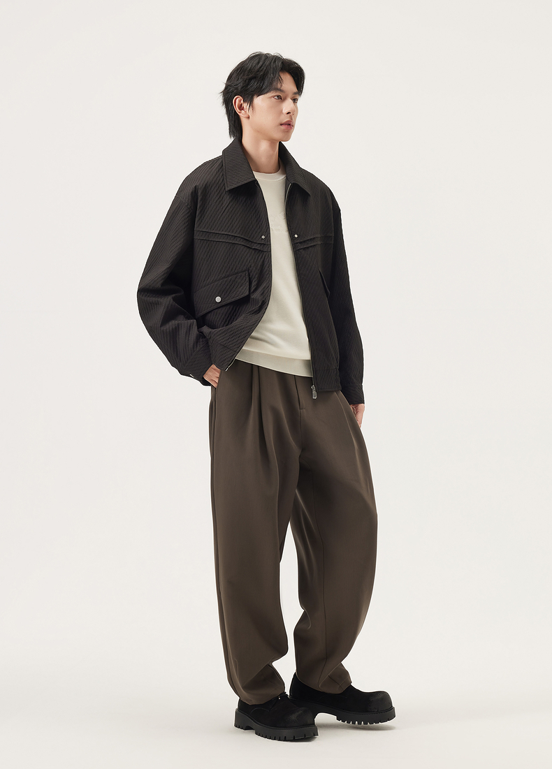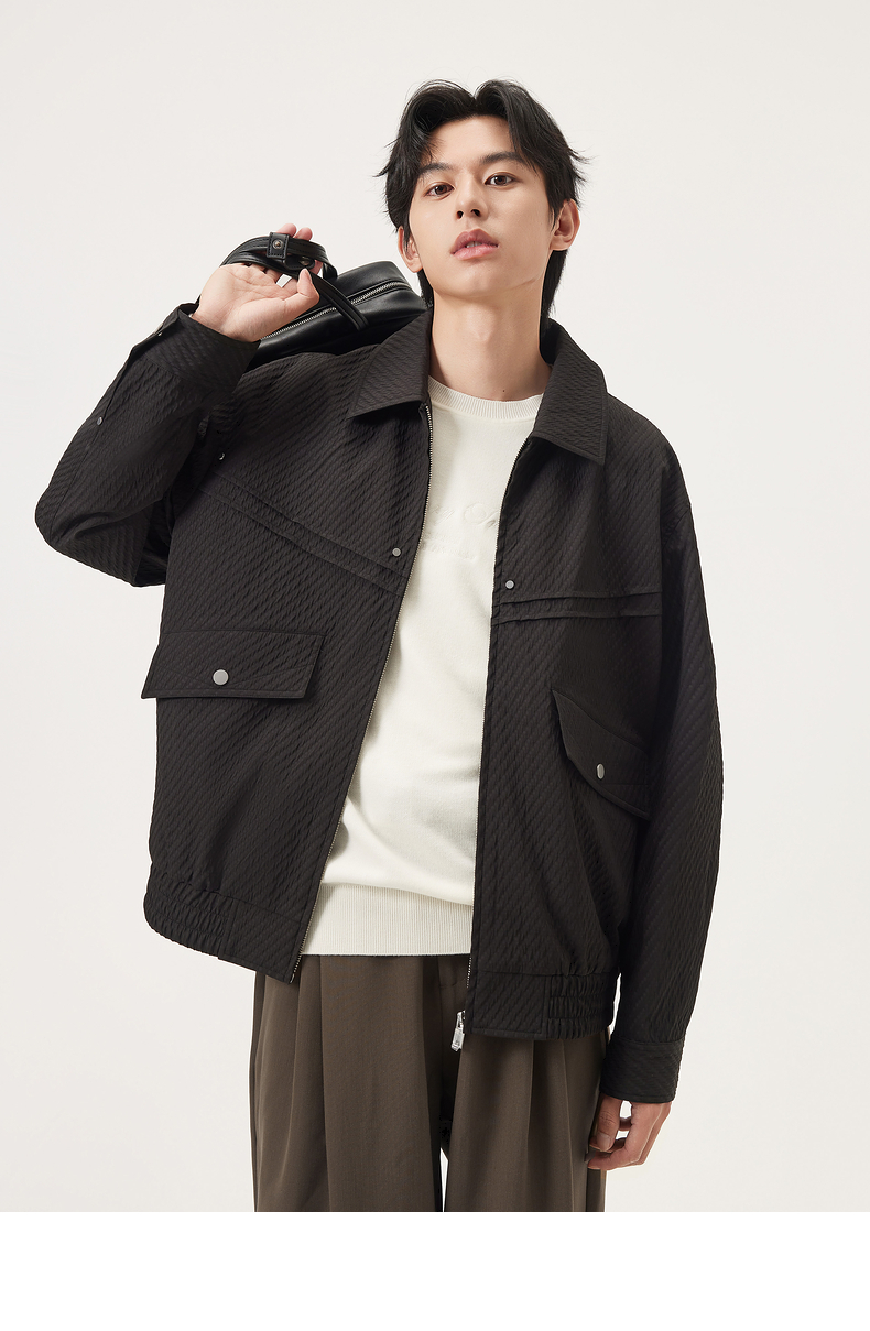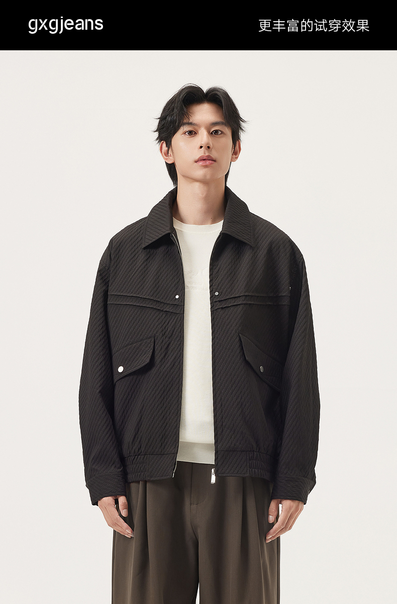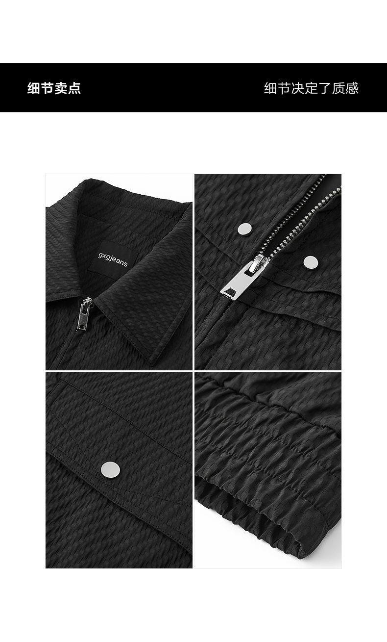 gxg.jeans男装 黑色肌理感分割设计简约翻领宽松夹克外套25秋热卖