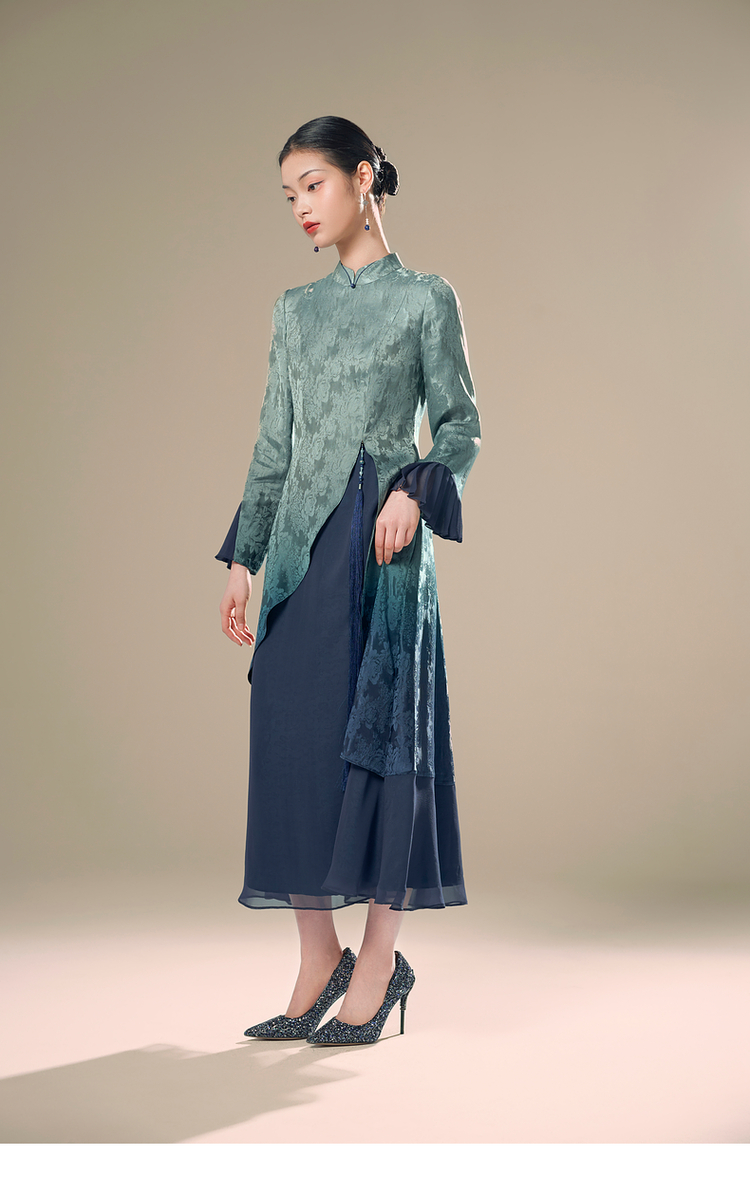 吉祥衣家新中式国风蚕桑丝裙子气质修身女装唯有暗香来连衣裙