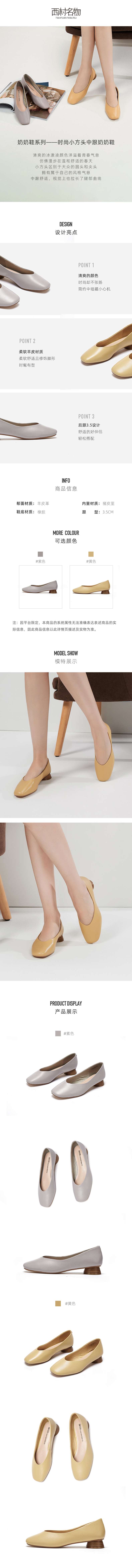 西村名物2020秋季新款奶奶鞋女时尚小方头中跟柔软舒适单鞋X20CE10521