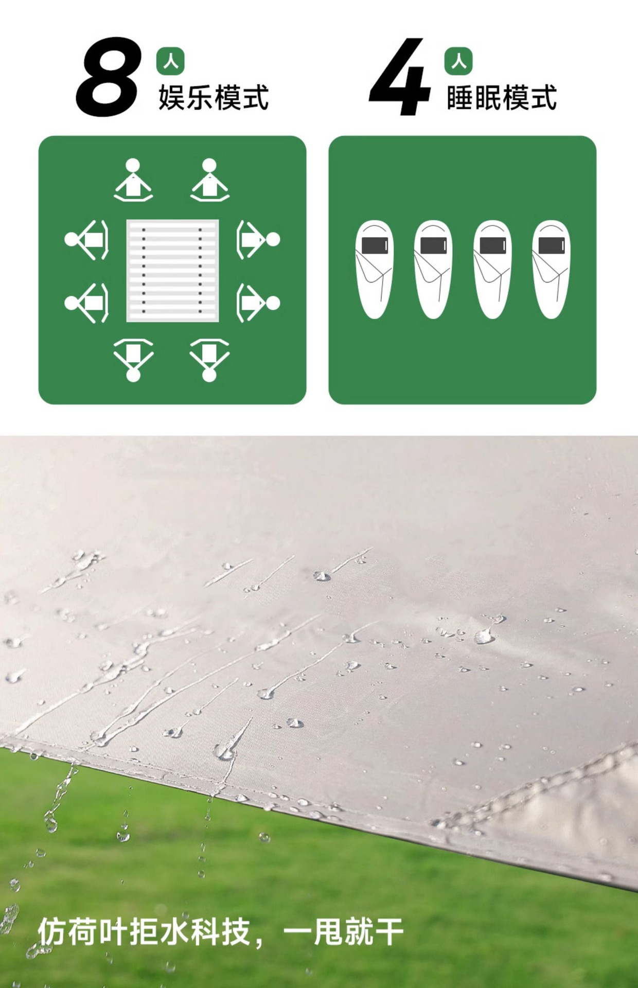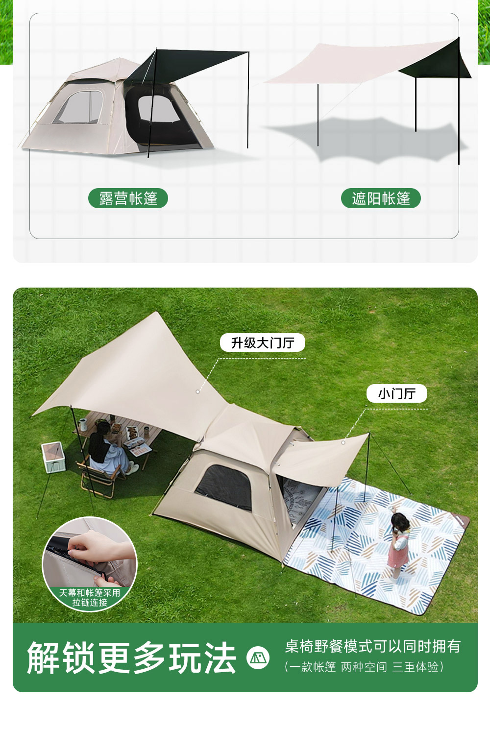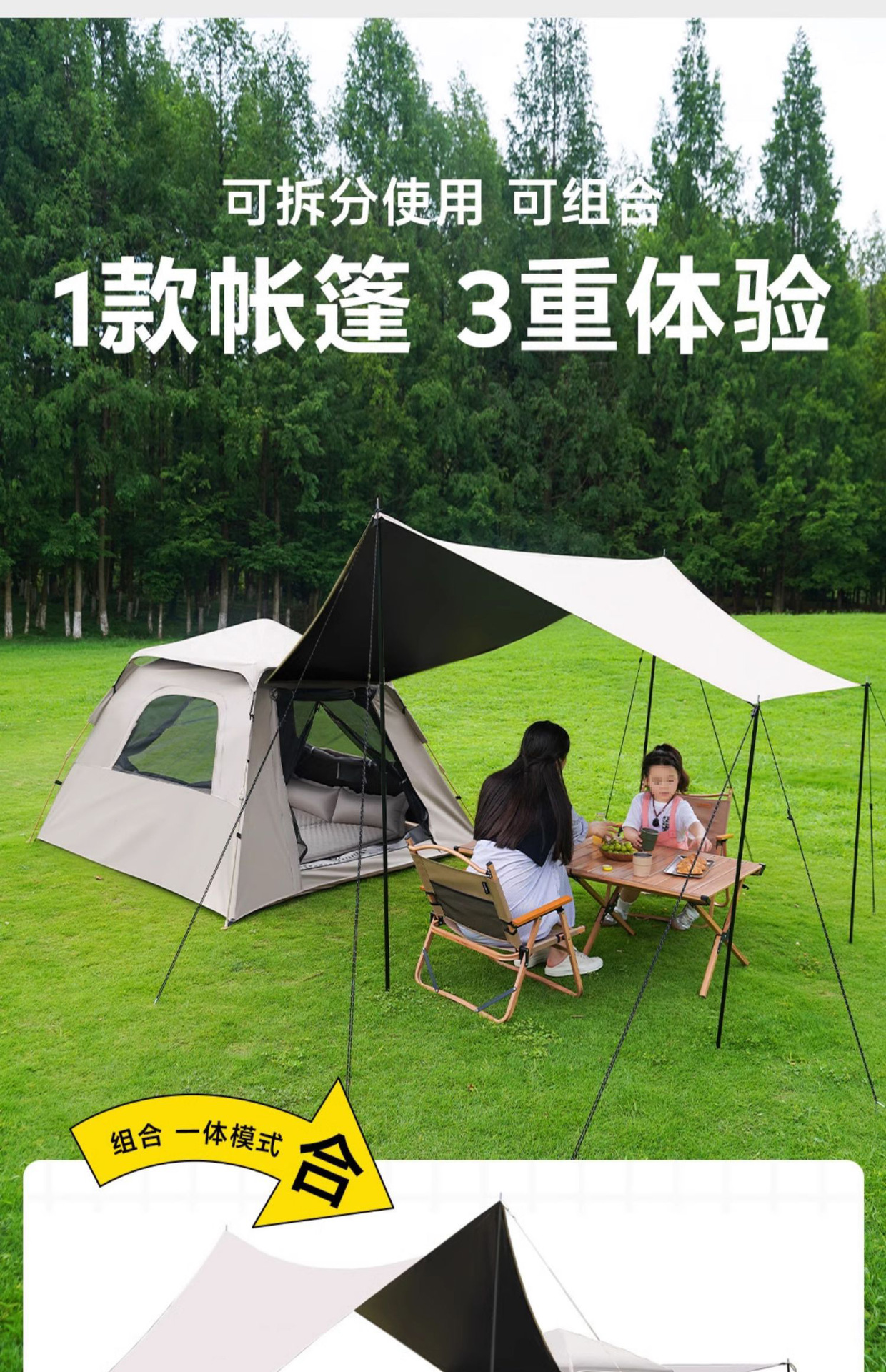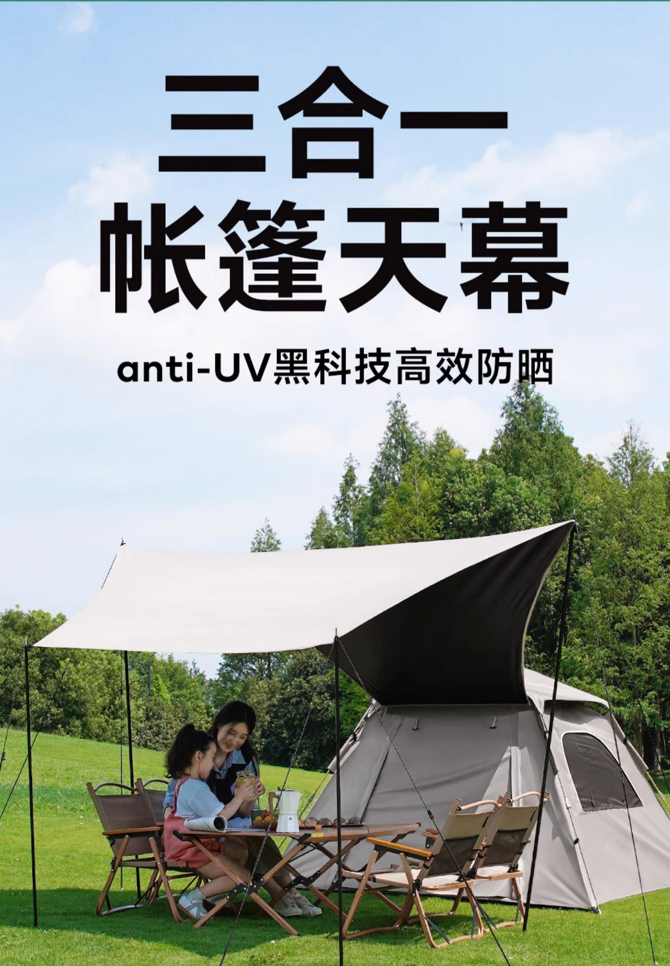 【买帐篷送野餐垫】户外野营过夜帐篷 三合一黑胶天幕帐篷 户外露营高背月亮椅