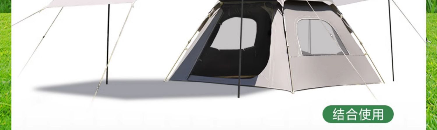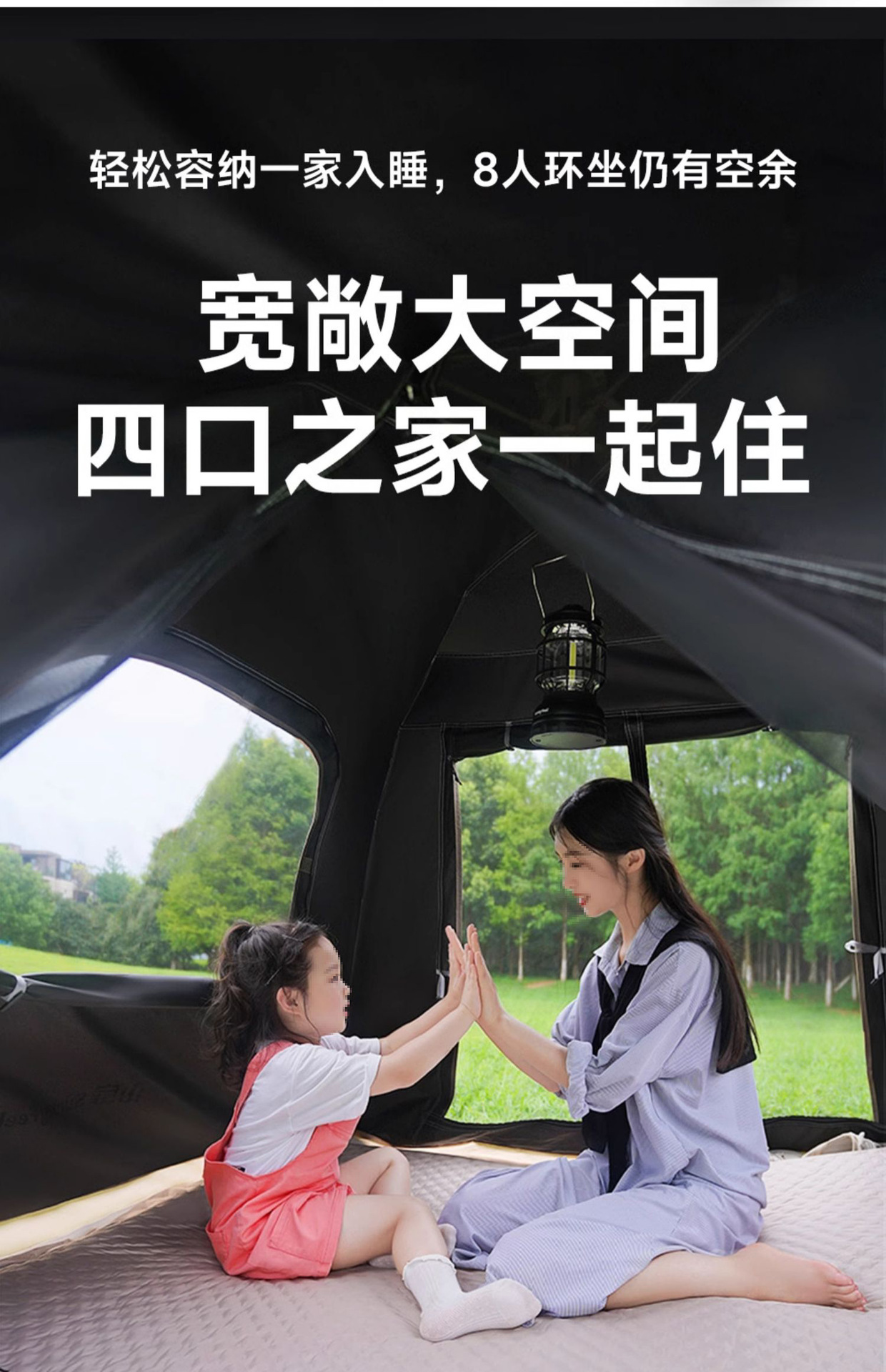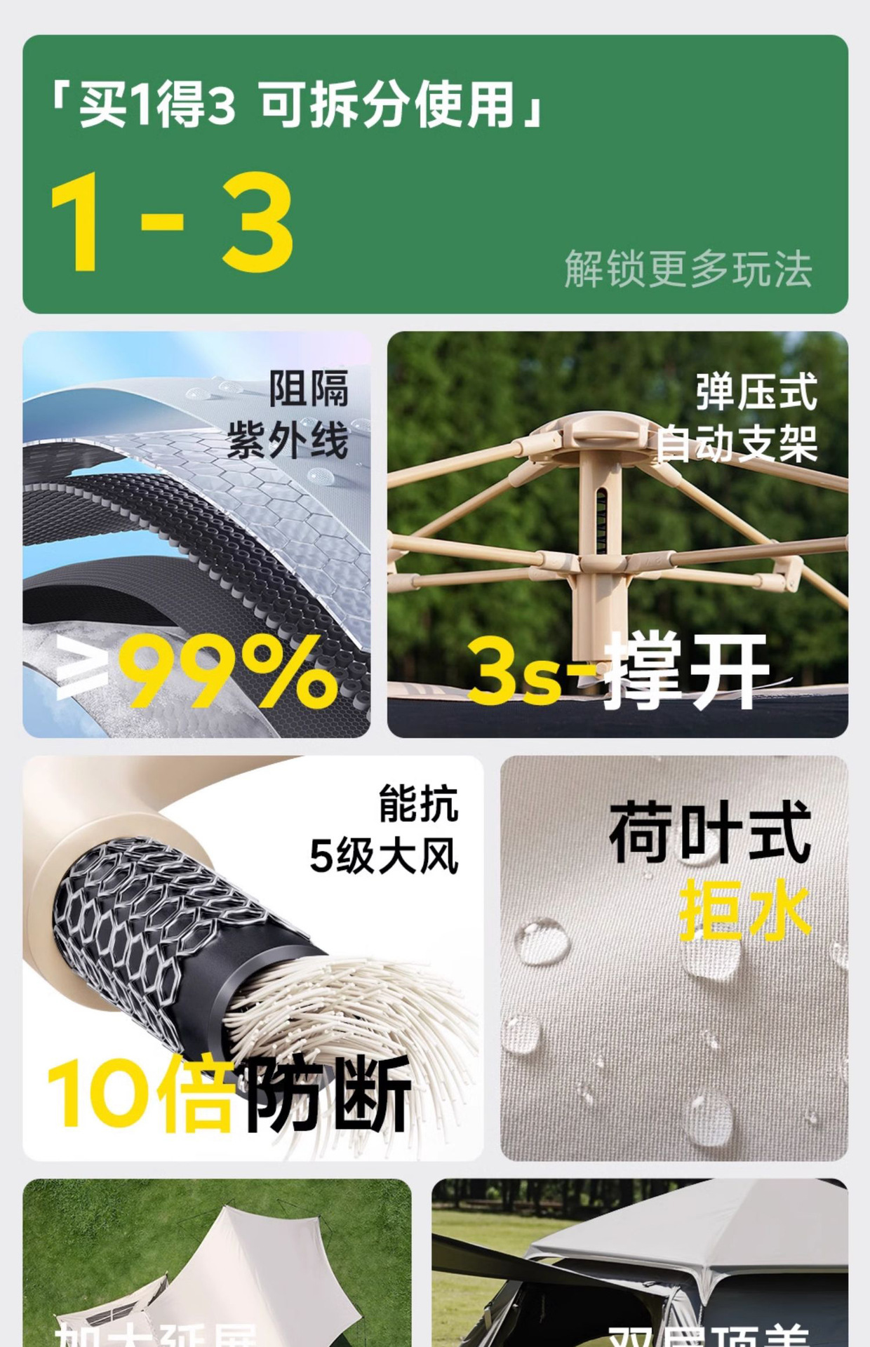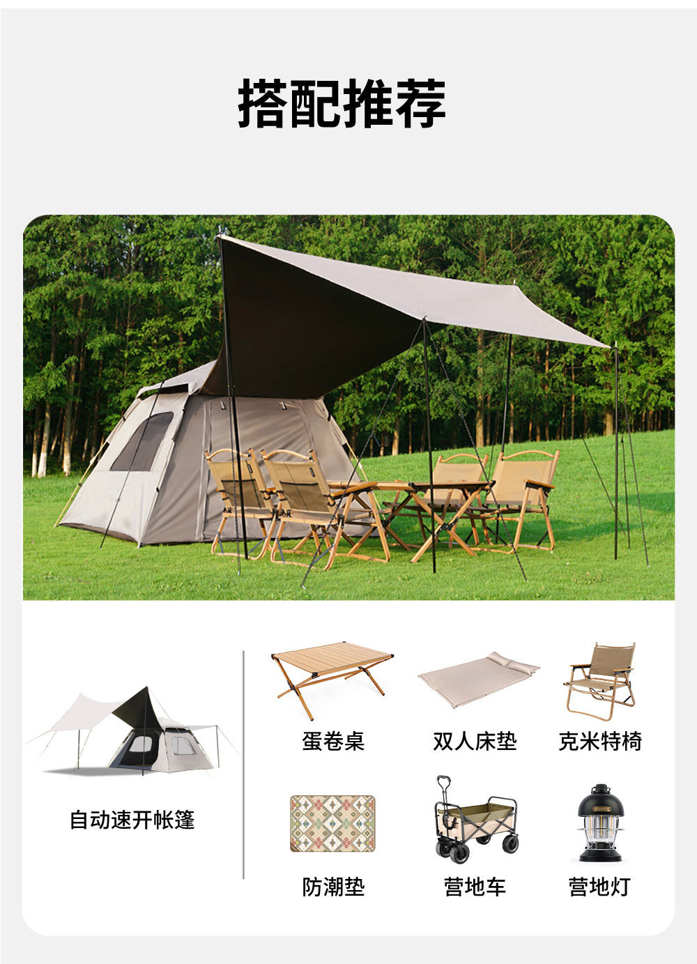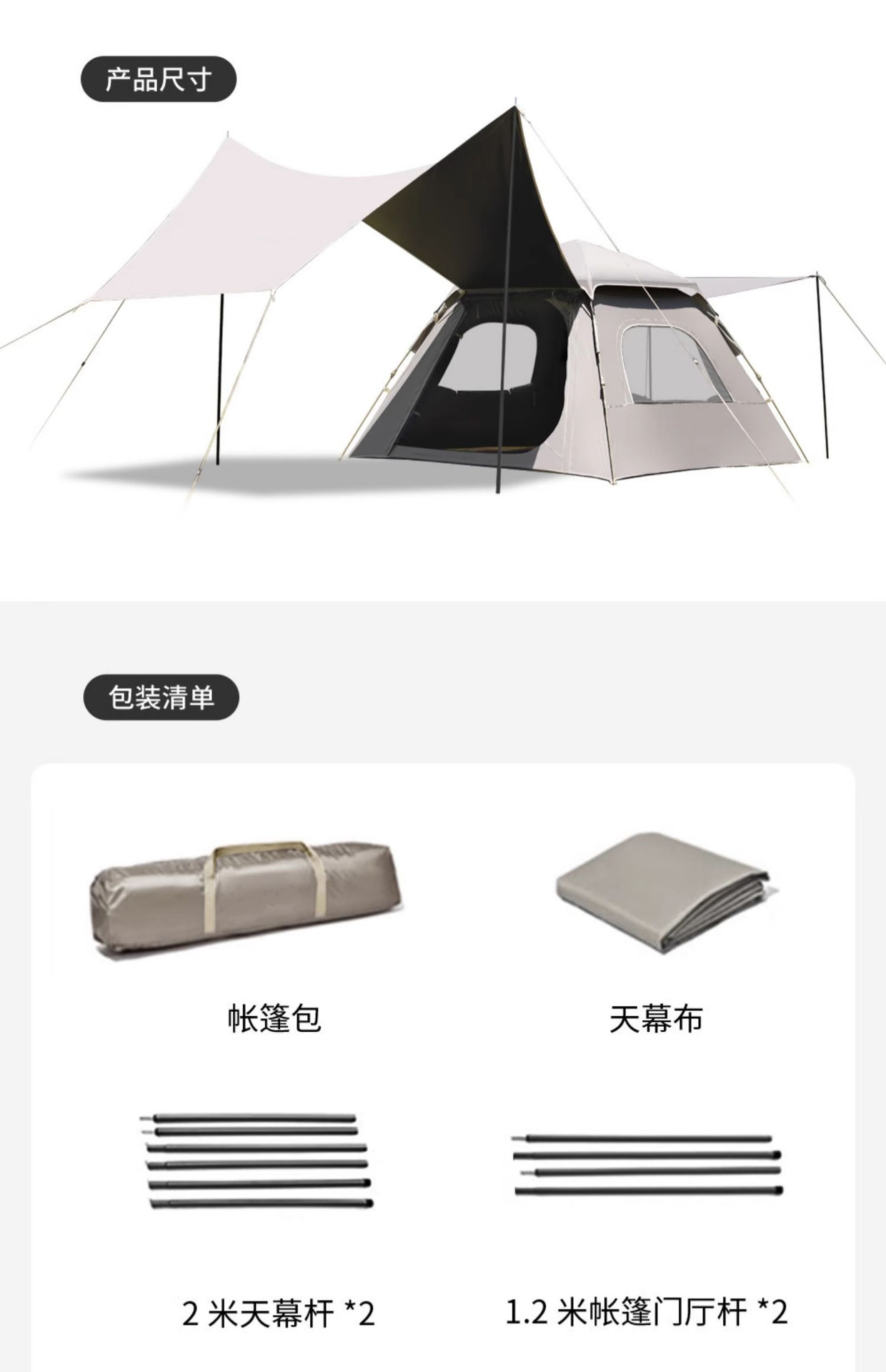 【买帐篷送野餐垫】户外野营过夜帐篷 三合一黑胶天幕帐篷 户外露营高背月亮椅