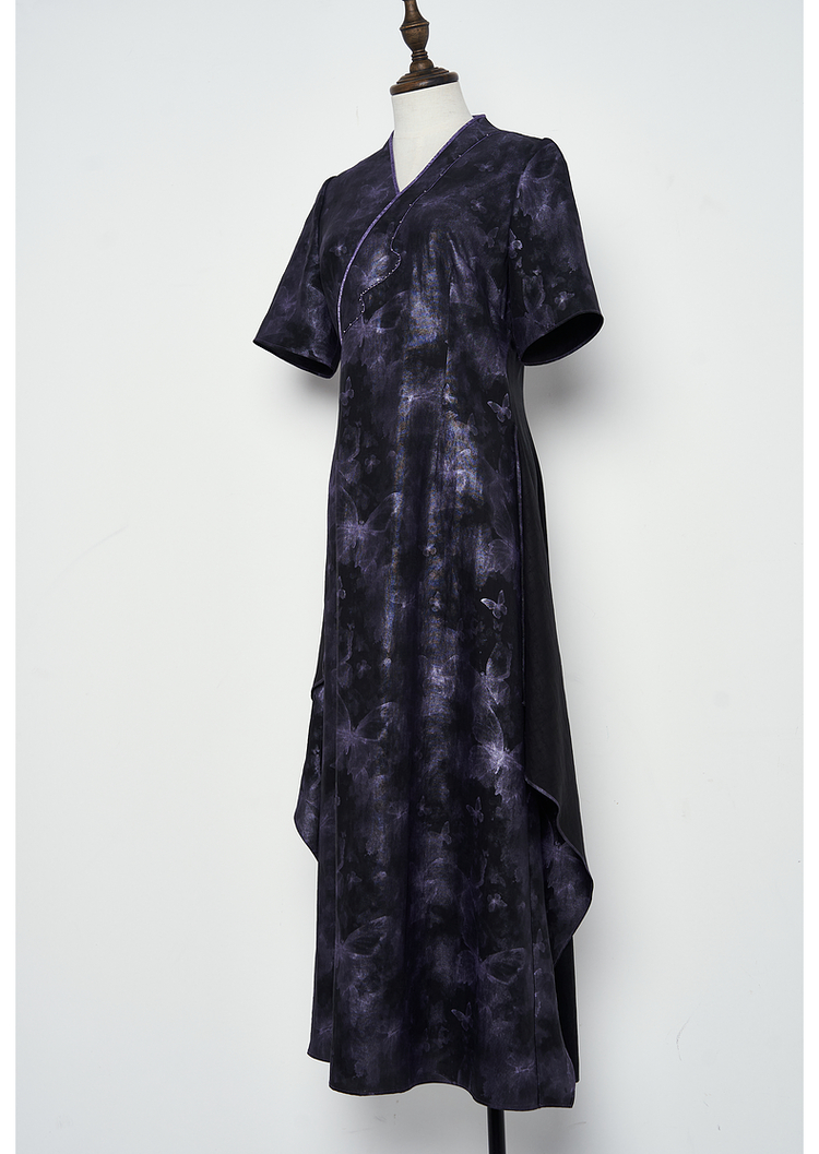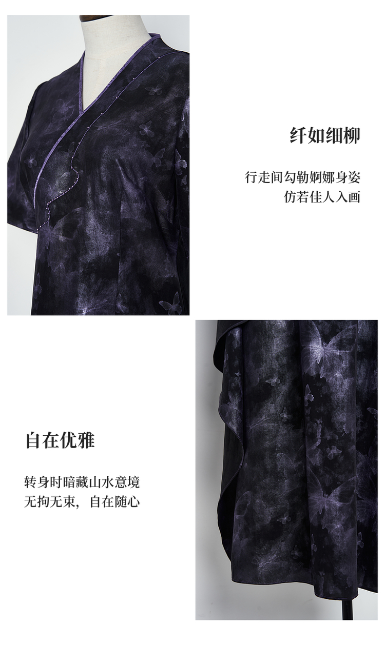 吉祥衣家新中式国风蚕桑丝裙子气质修身显瘦女装云霄化蝶连衣裙