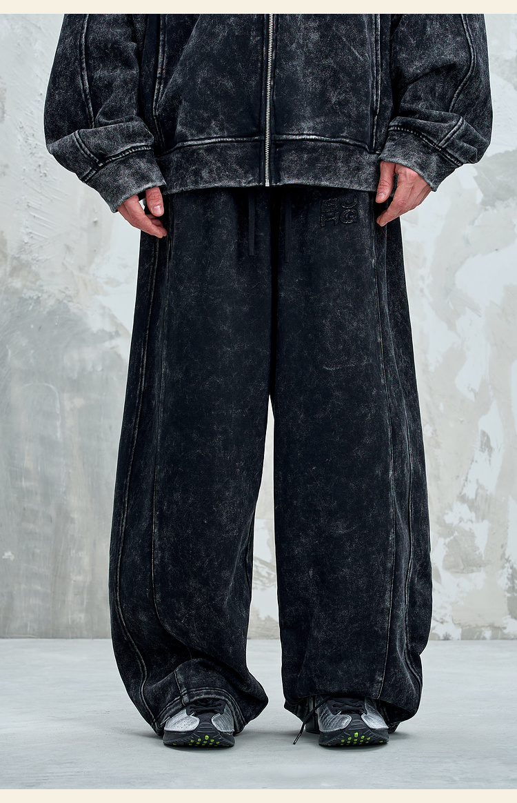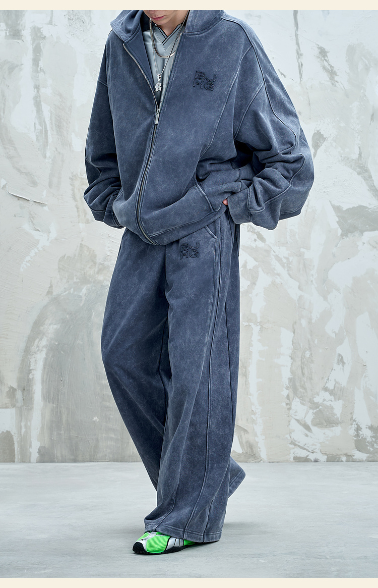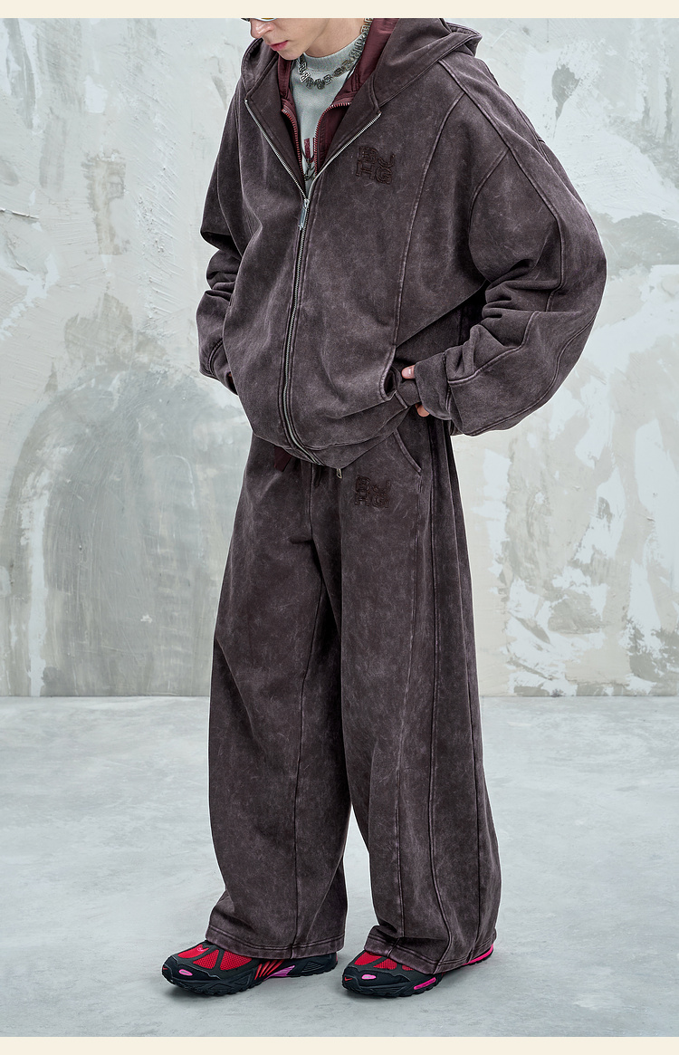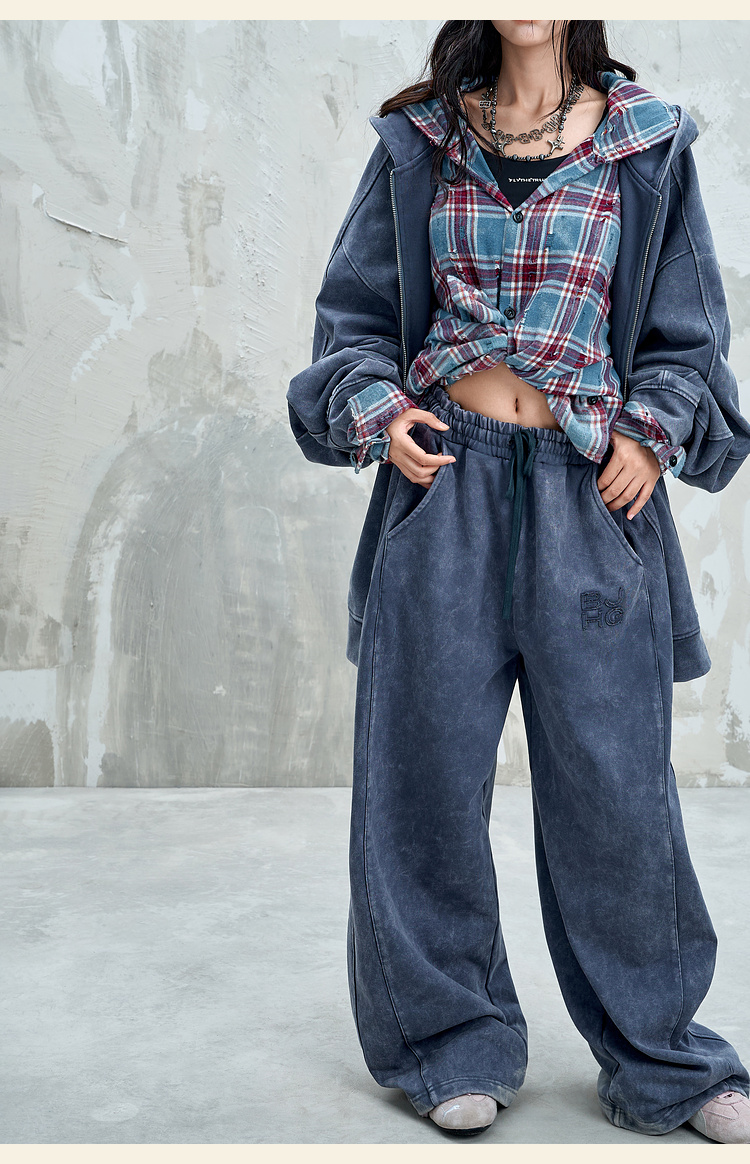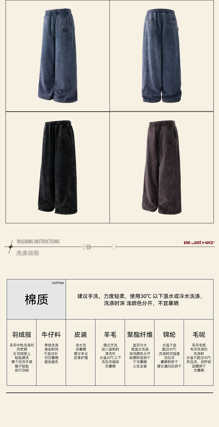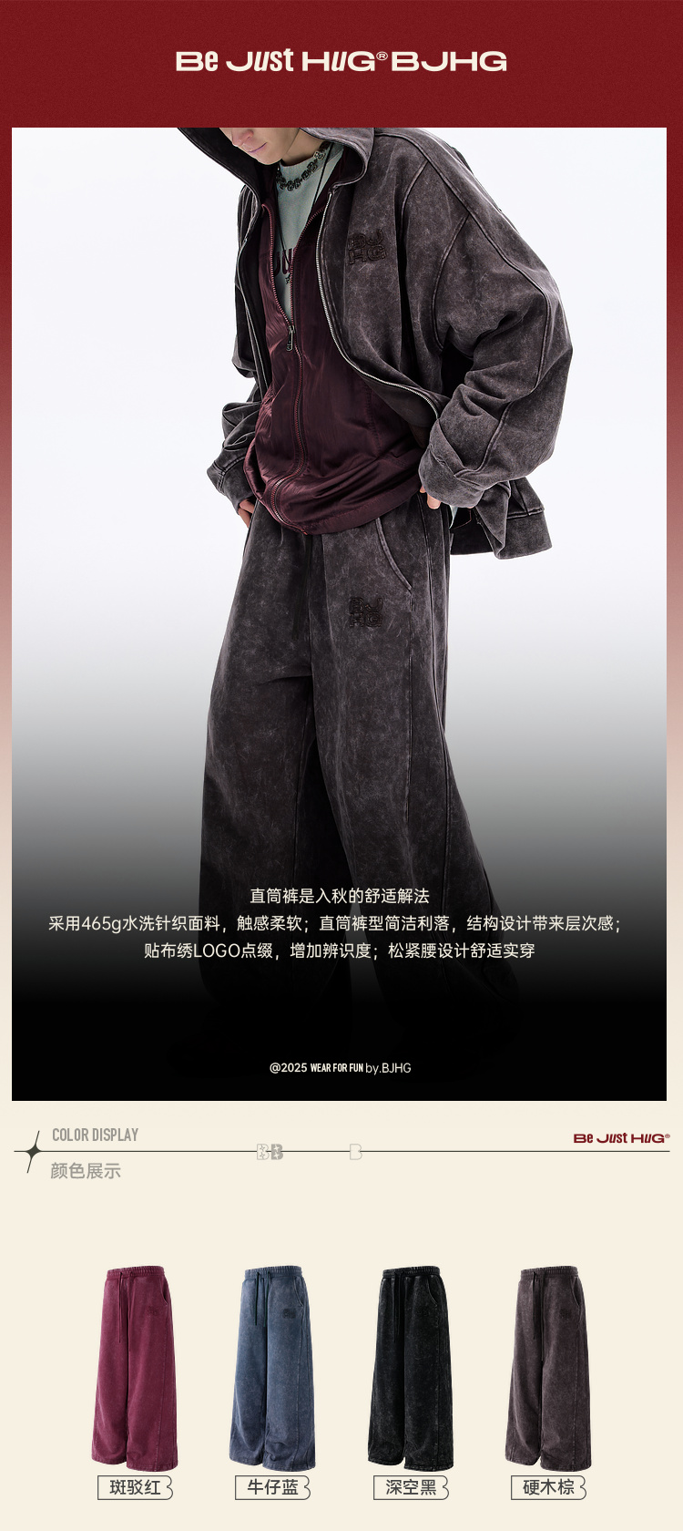 BJHG不计后果新款复古水洗卫裤男款秋季套装宽松层次感直筒裤子女