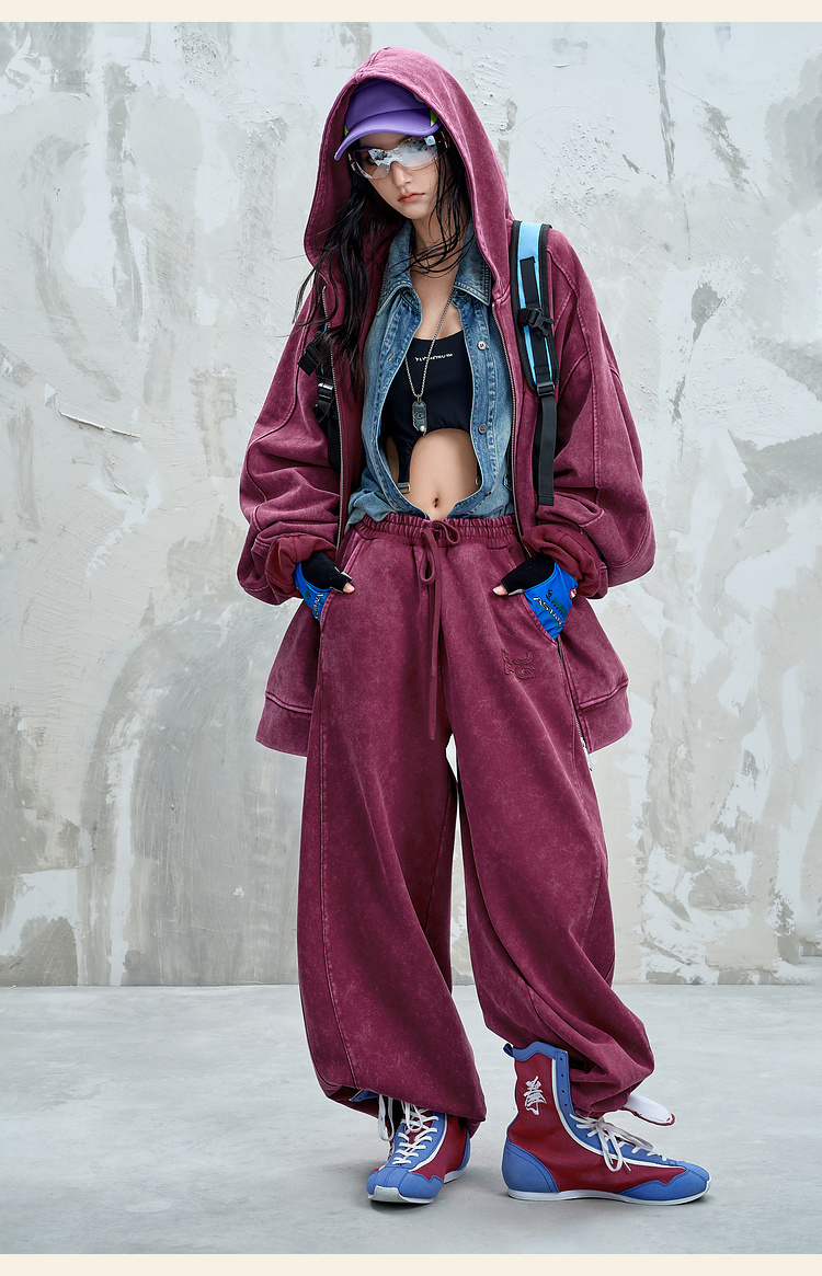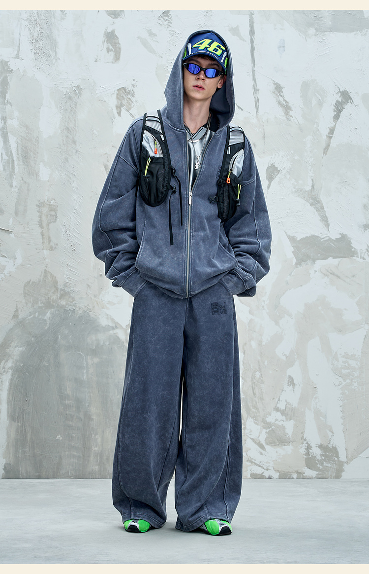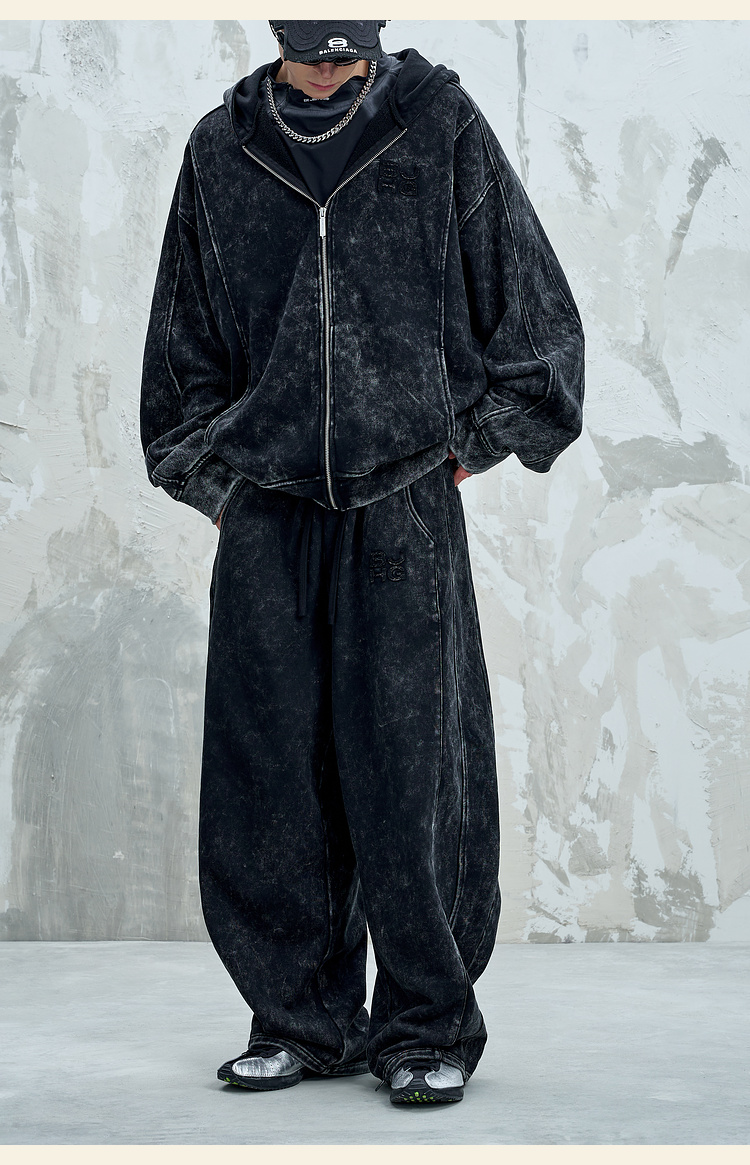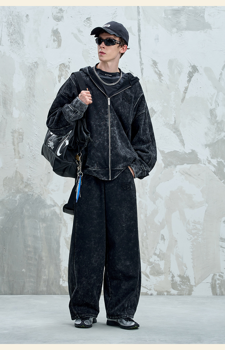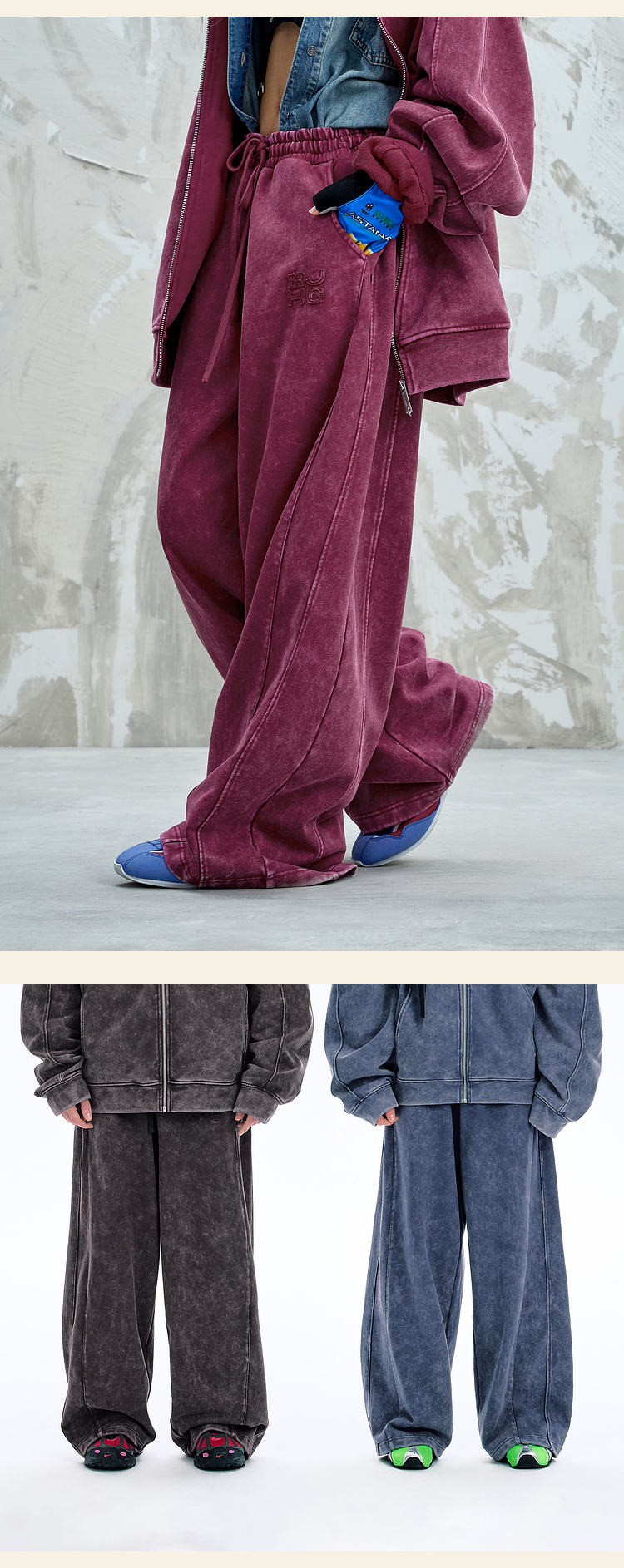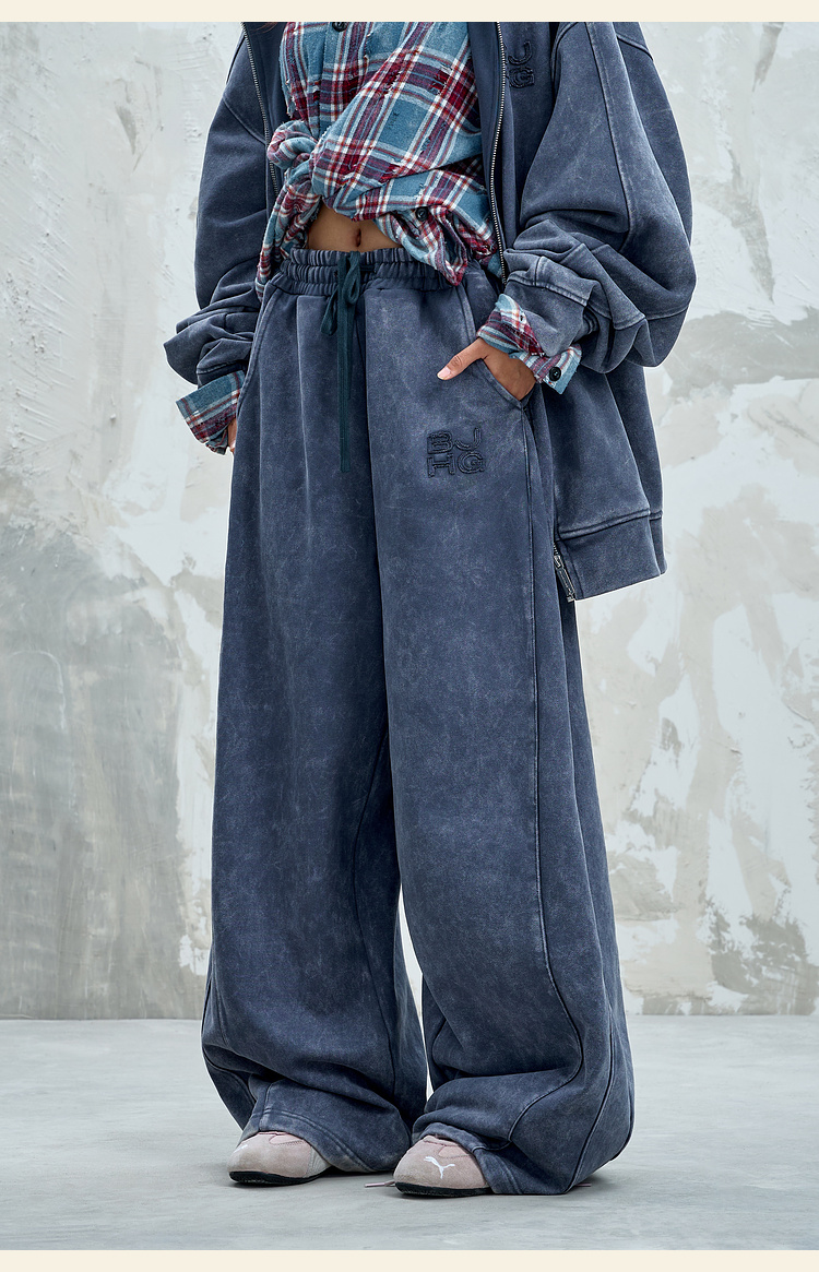BJHG不计后果新款复古水洗卫裤男款秋季套装宽松层次感直筒裤子女