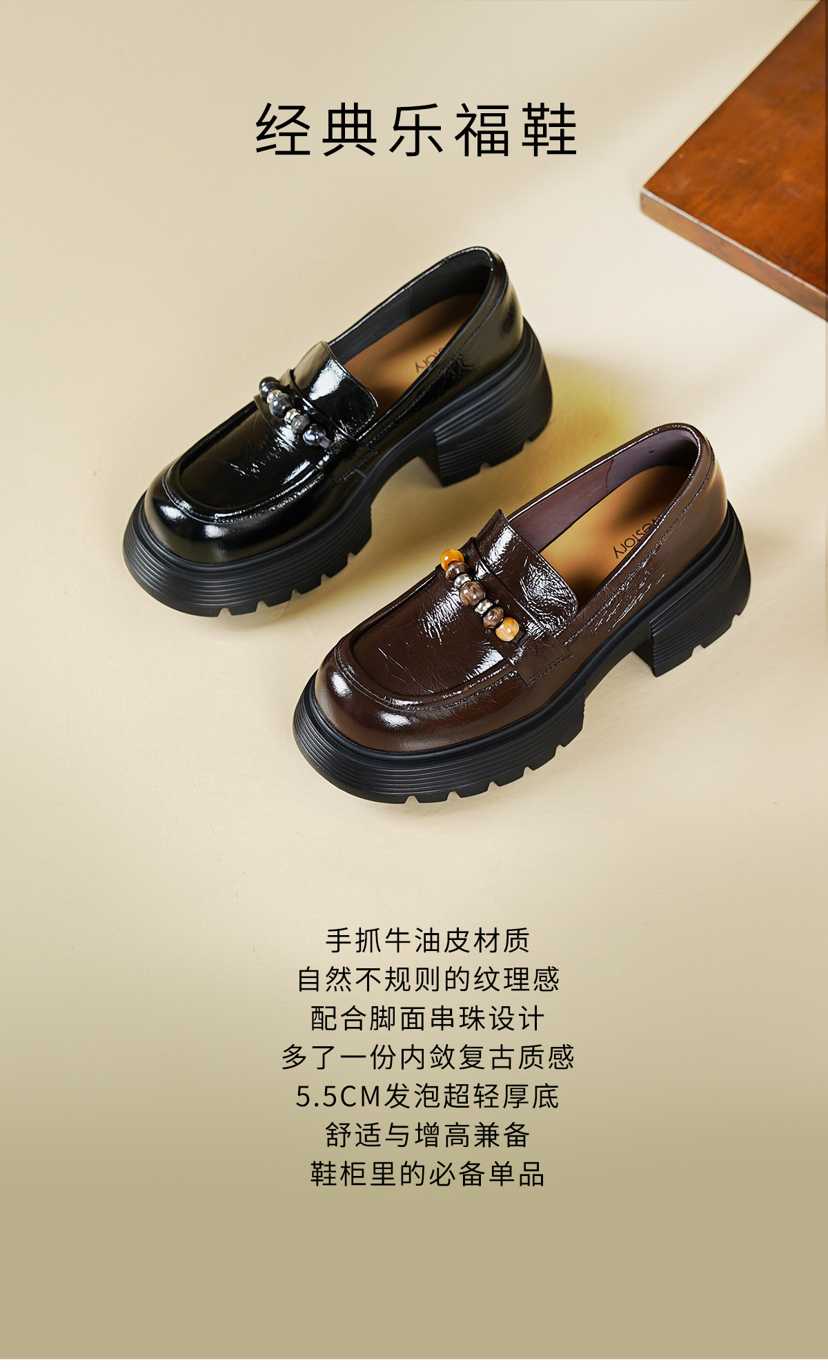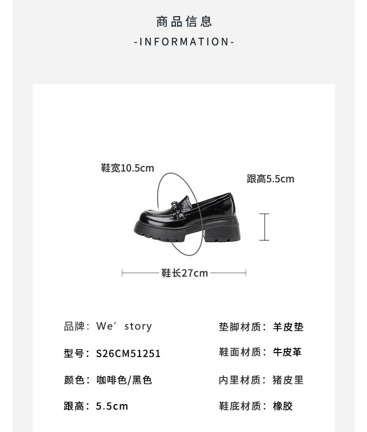 Westory2026年春季牛皮厚底圆头乐福鞋休闲百搭深口单鞋S26CM51251