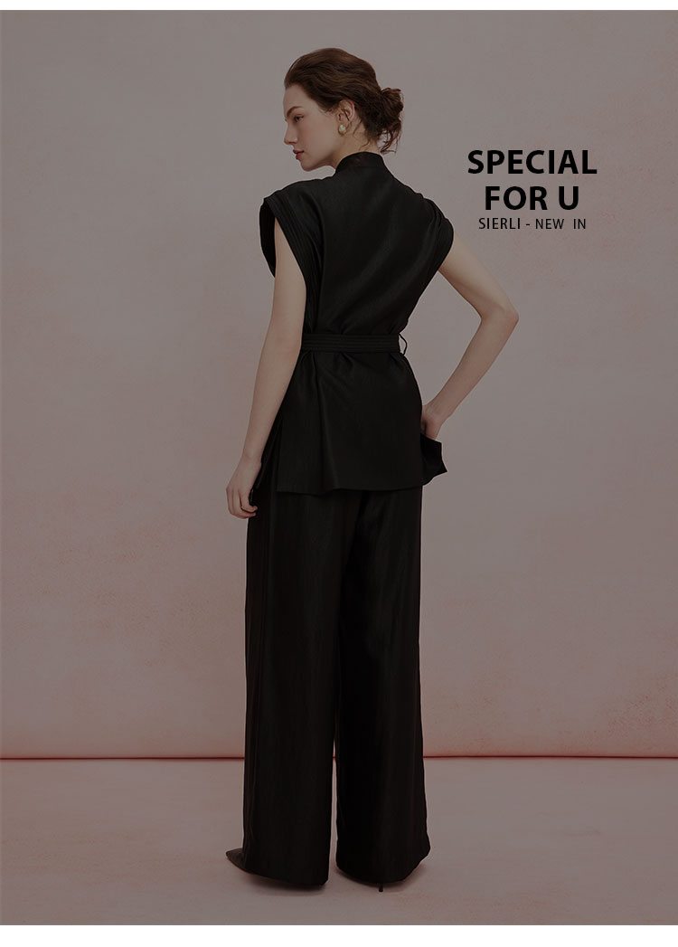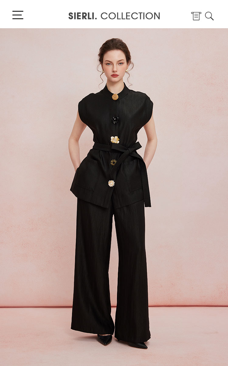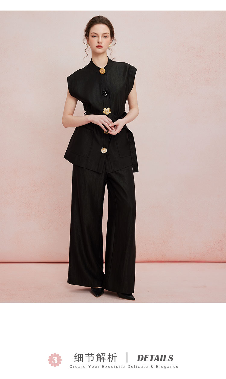 QF401斯尔丽2025夏季新款立体手工绣花上衣高端套装茶歇休闲阔腿裤套装