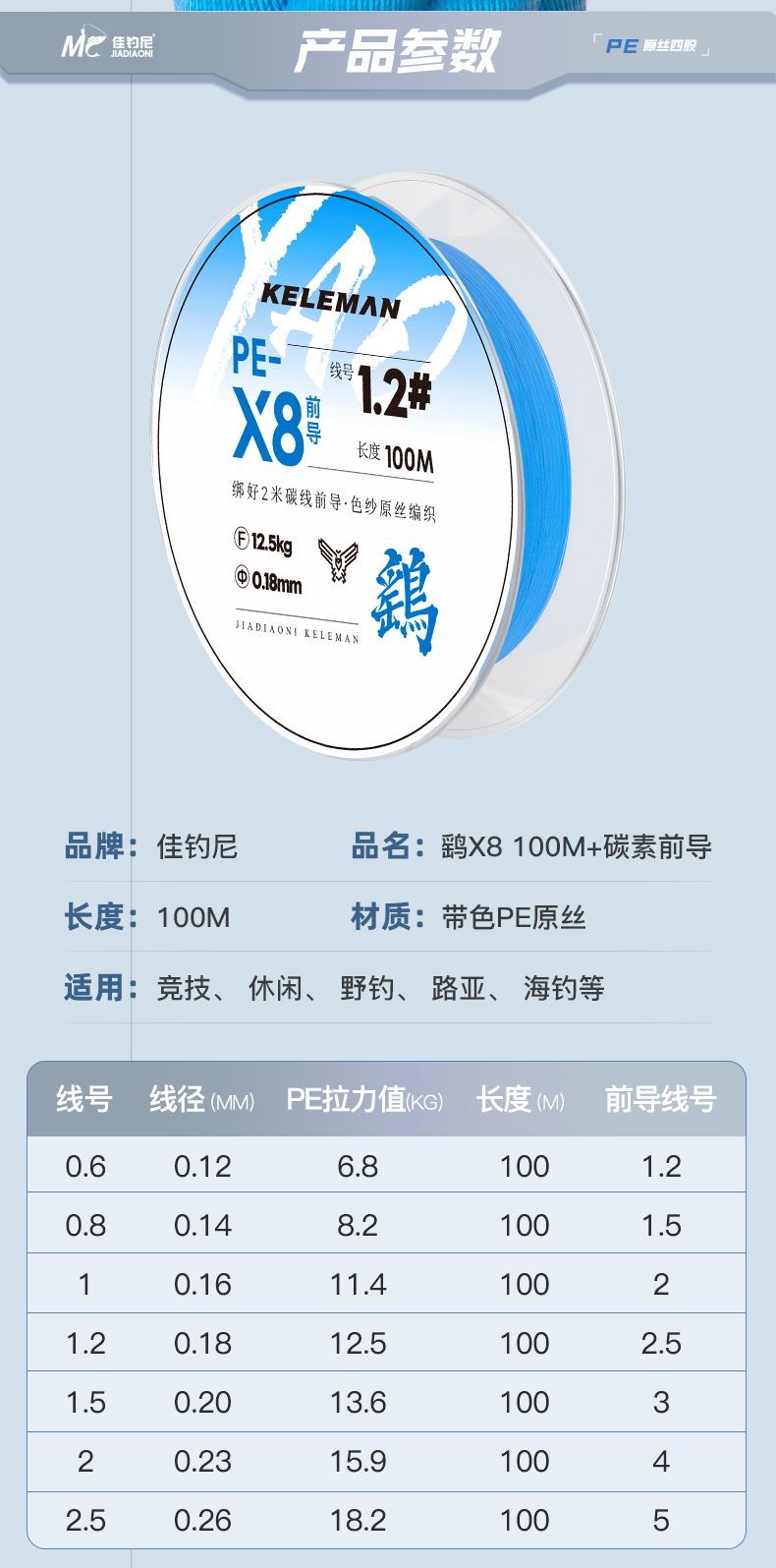 佳钓尼远投线鹞X8编加强不褪色顺滑专用线强拉力路亚线PE