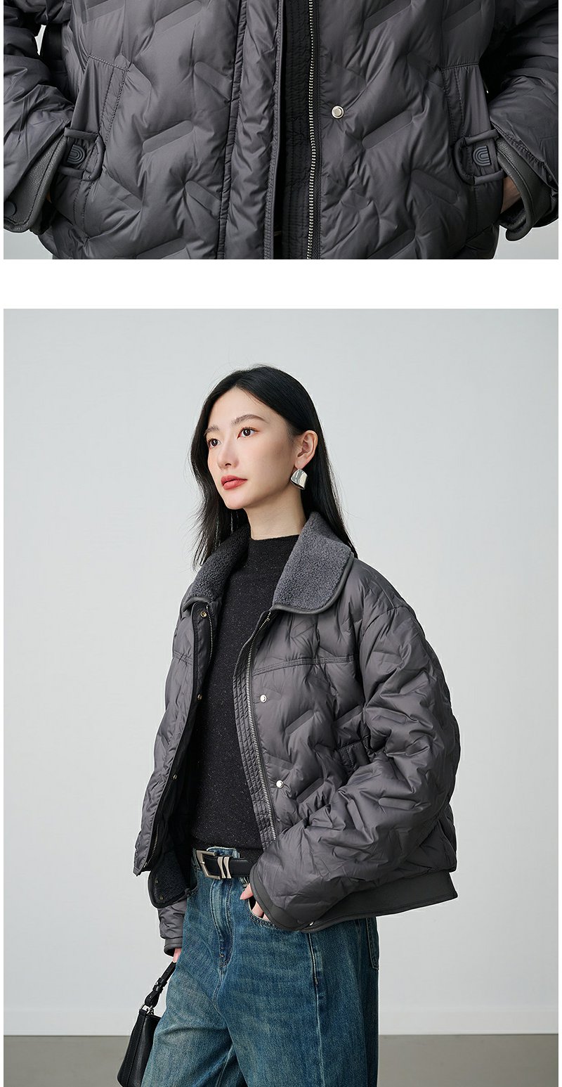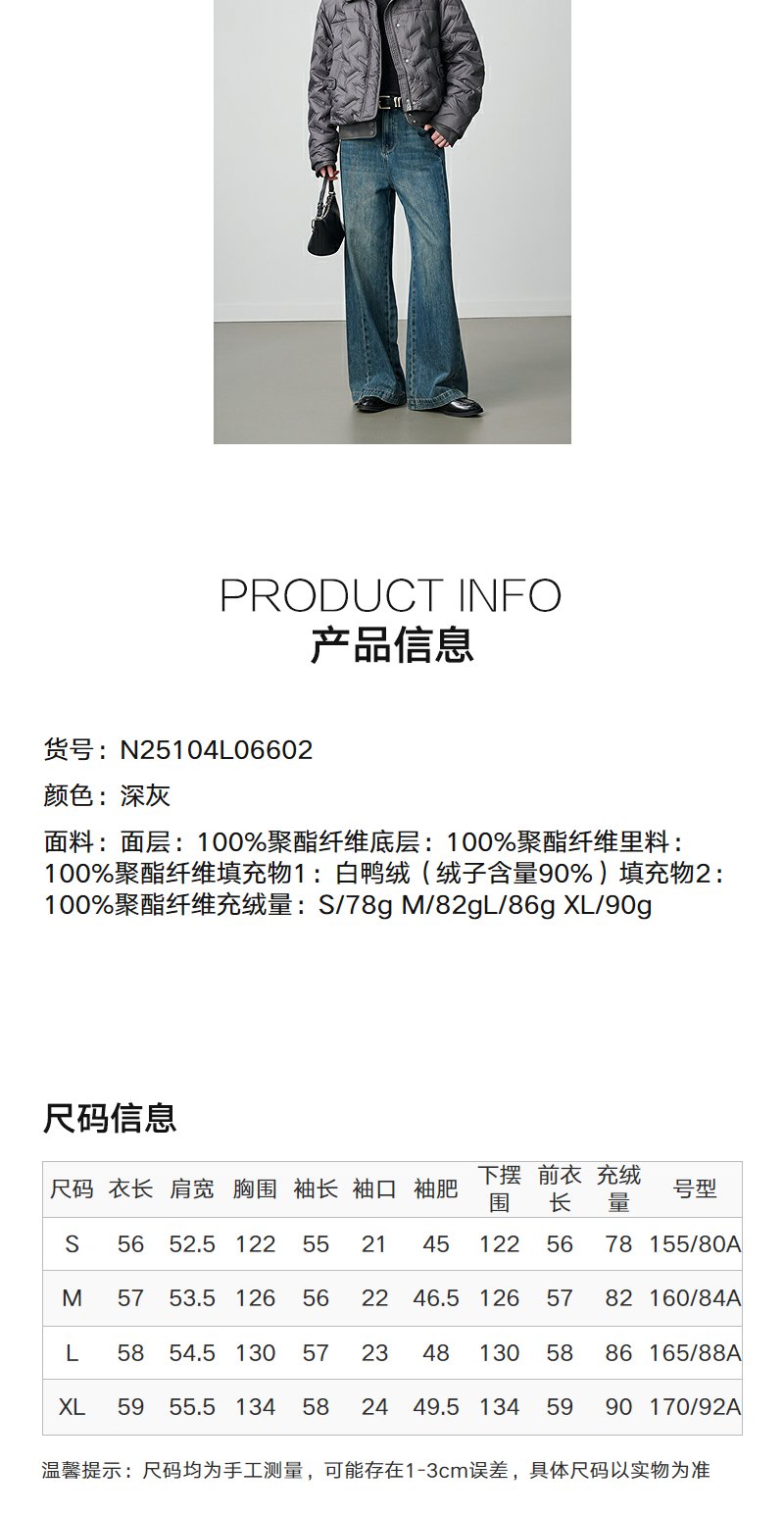 NEELLY纳俪商场同款冬季新款时尚短款廓形羽绒服女百搭小翻领外套N25104L06602