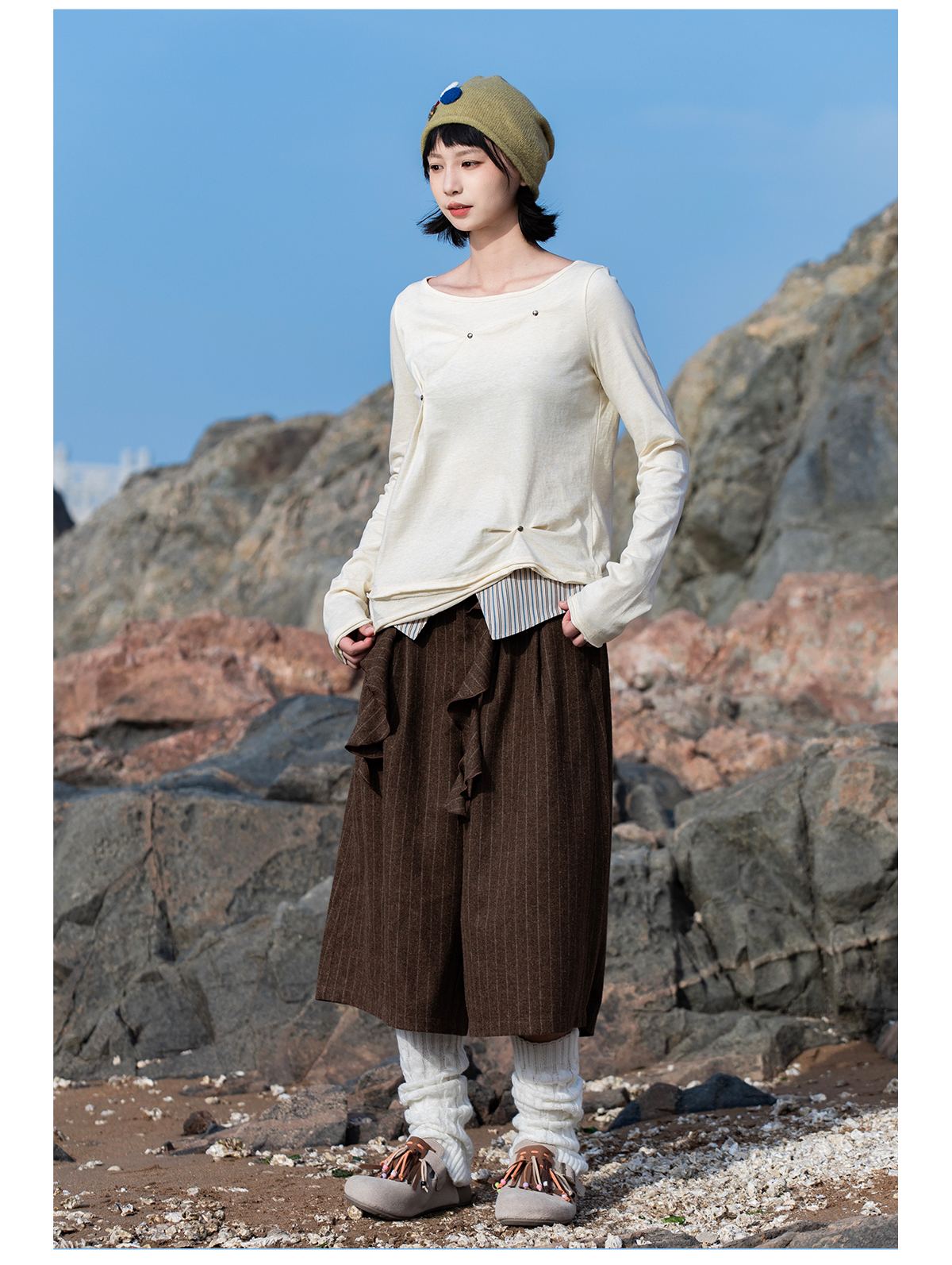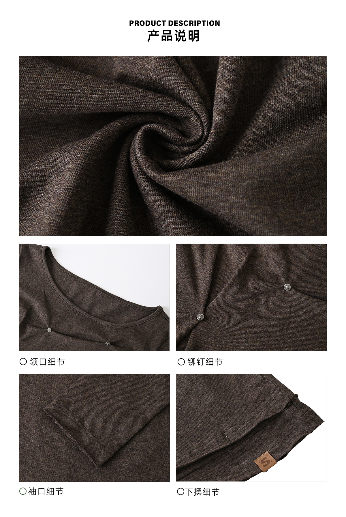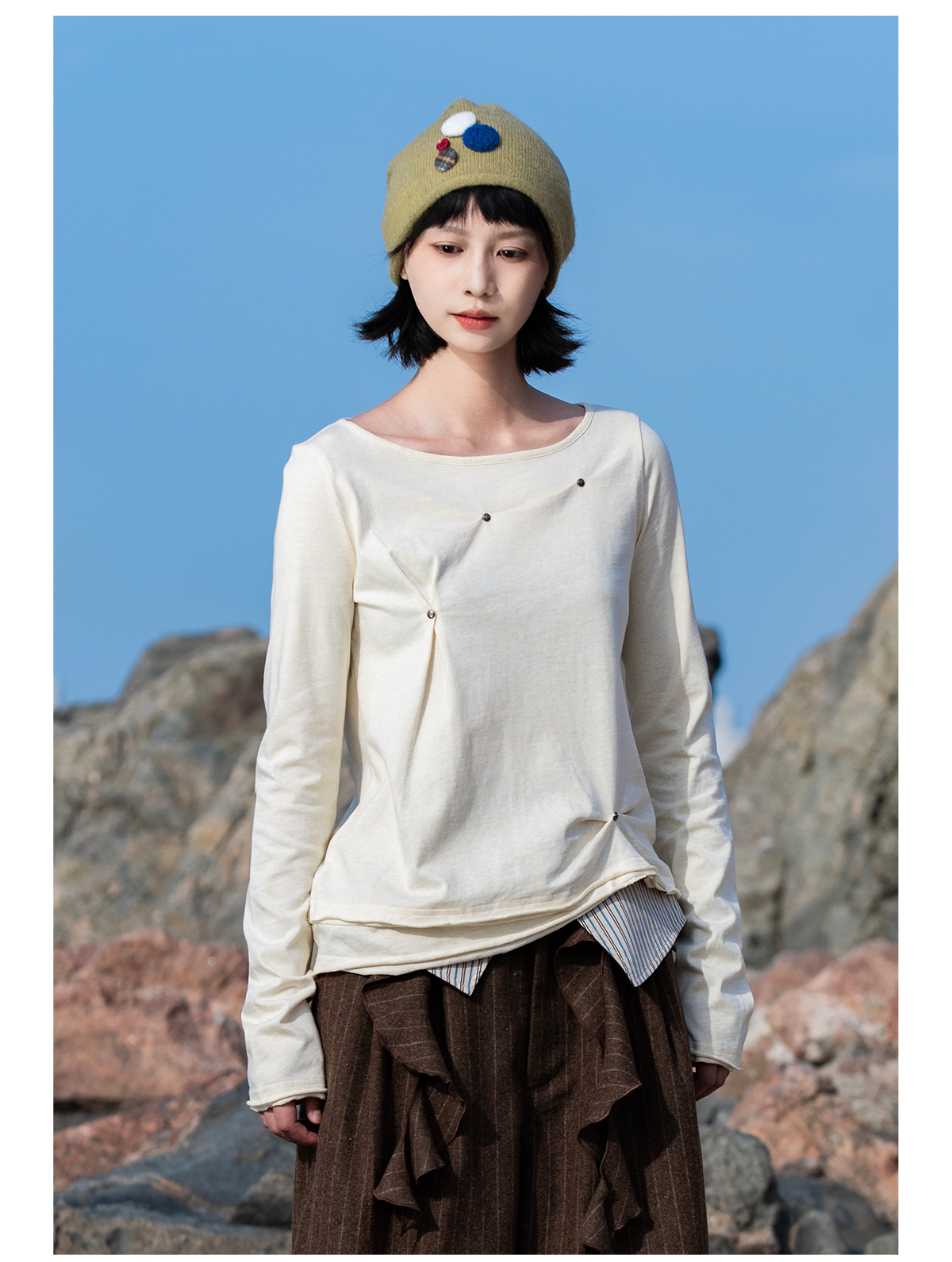 早乙女惠子saotome/STMTX13265/不规则打褶铆钉长袖T恤