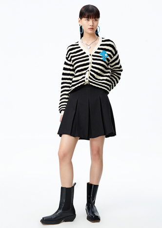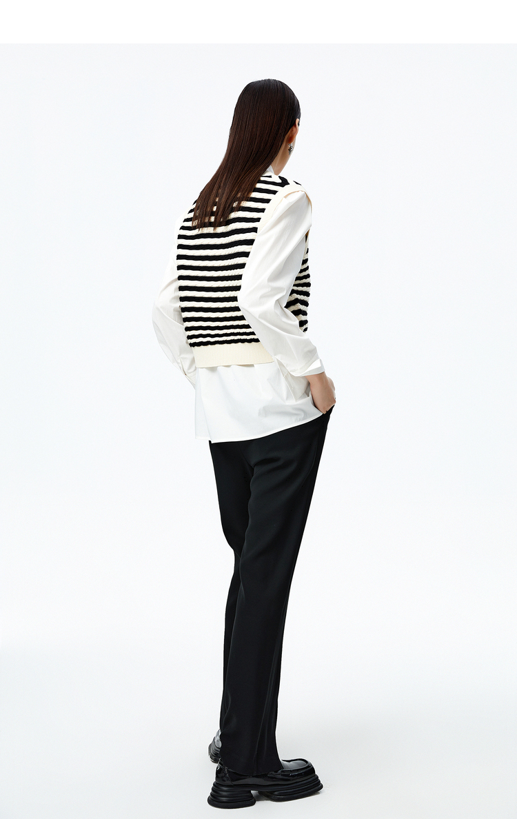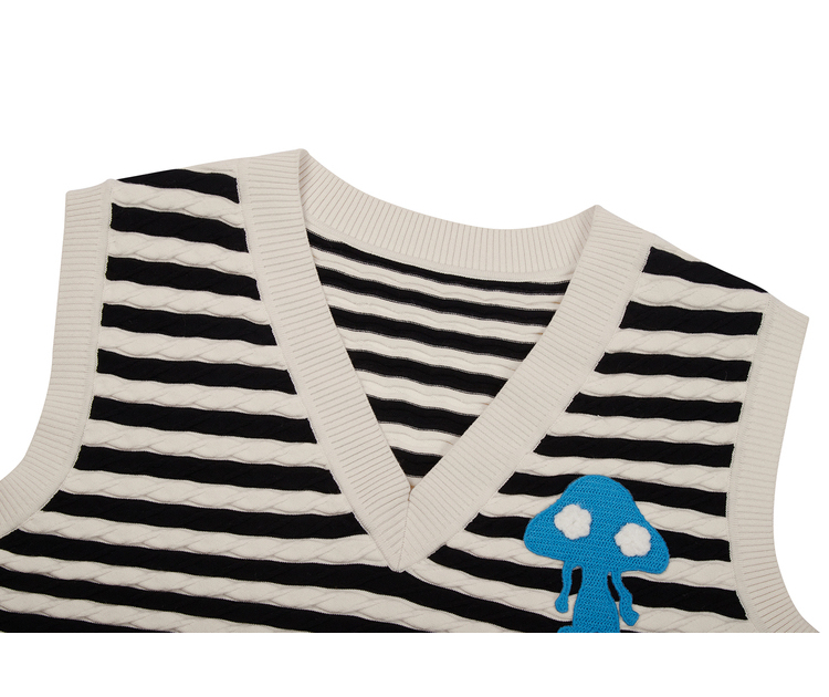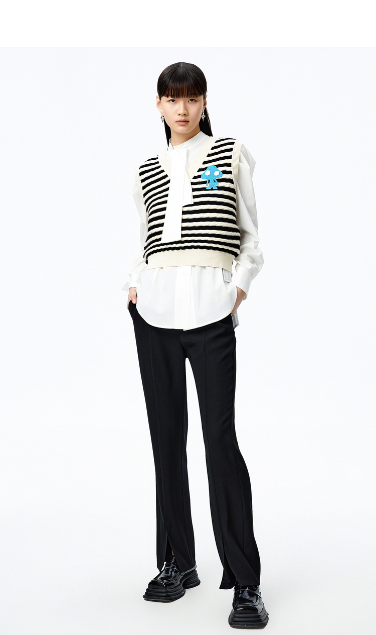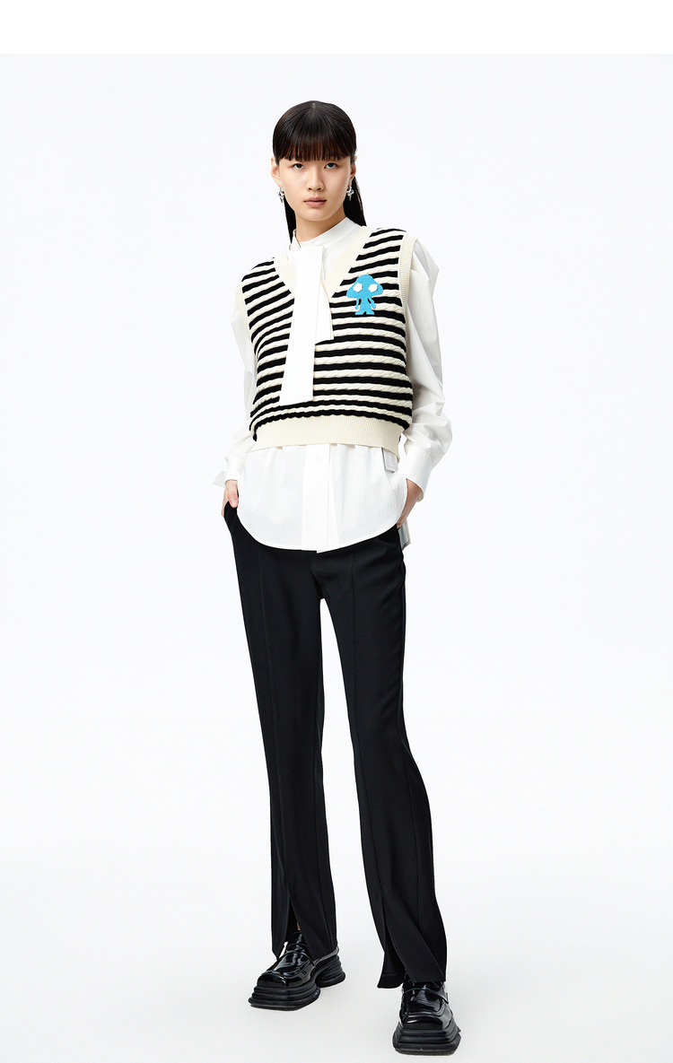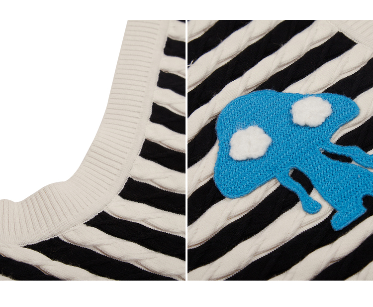 NEELLY纳俪商场同款条纹马甲女气质V领卡通刺绣修身针织衫马夹潮N22083A01101