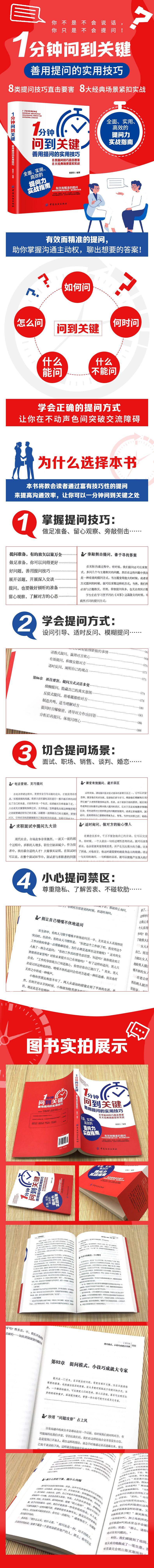 本书将教会读者通过富有技巧性的提问来提高沟通效率,让你可以一分钟问到关键之处。巧妙提问往往比长篇大论表露真心更容易触动对方。希望通过此书,每个读者都能够学会聪明地提问,让人生因会提问而更精彩。