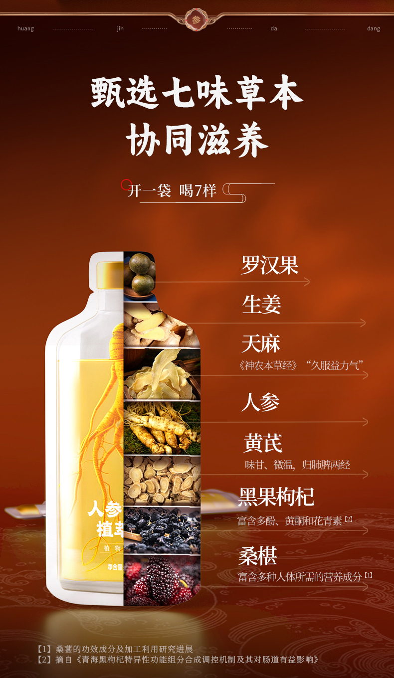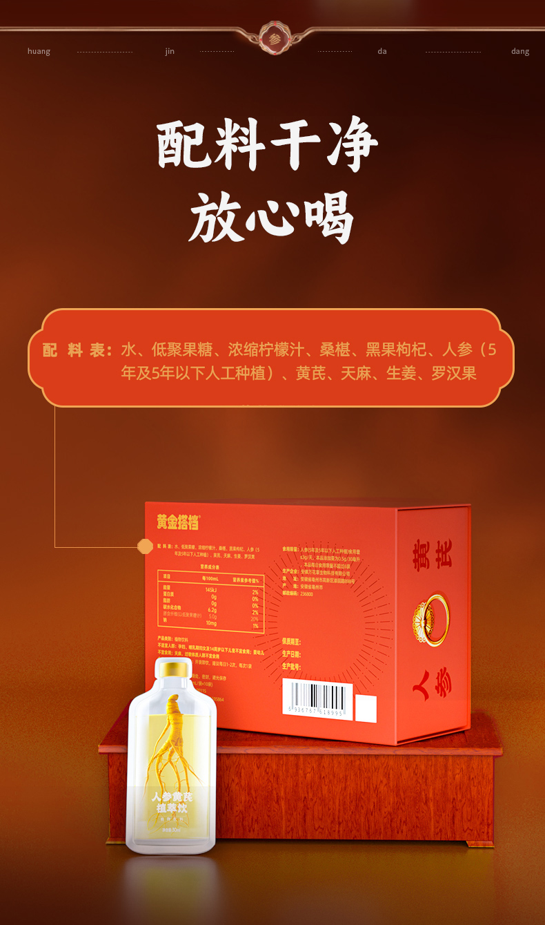 【3盒装送礼袋】黄金搭档人参黄芪植萃饮料即食草本口服液