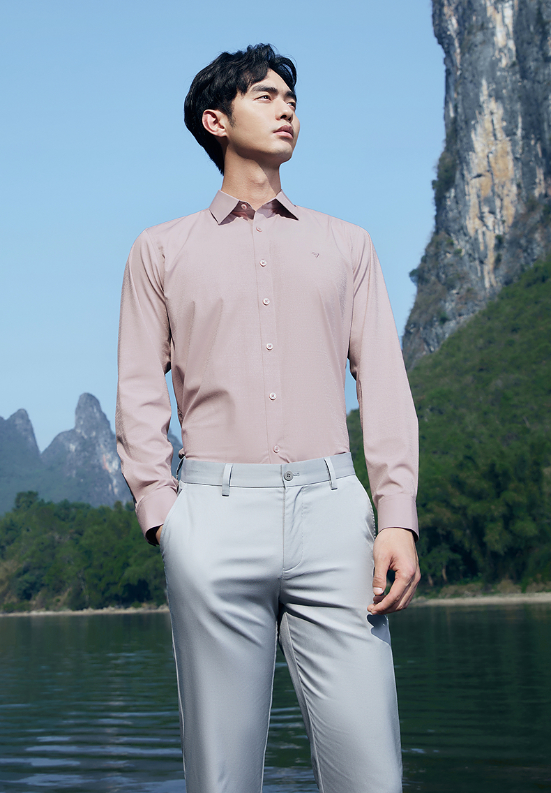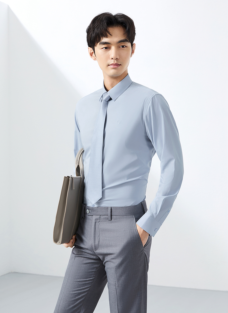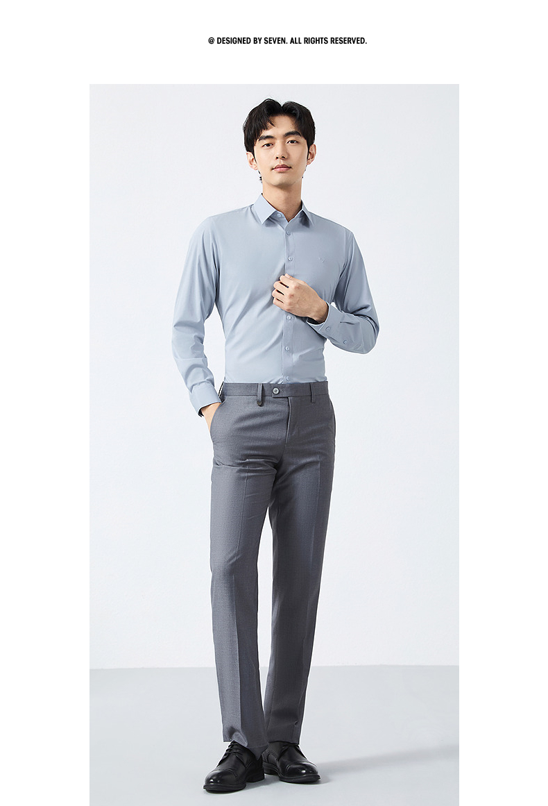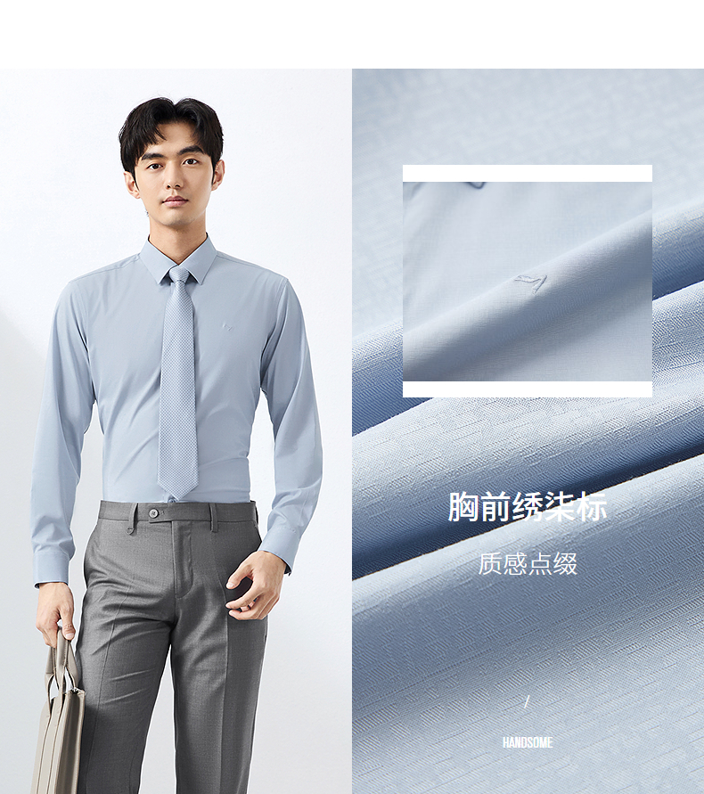 【含莫代尔】柒牌长袖衬衫男士2025春季新款商务百搭暗纹提花衬衣128A70530