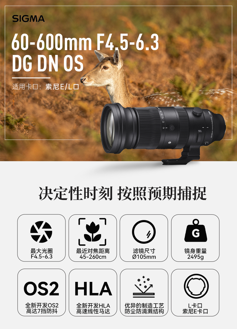 适马(SIGMA)60-600mm F4.5-6.3 DG DN OS|Sports 全画幅微单 超远摄变焦镜头 人像打鸟(联系客服享优惠)