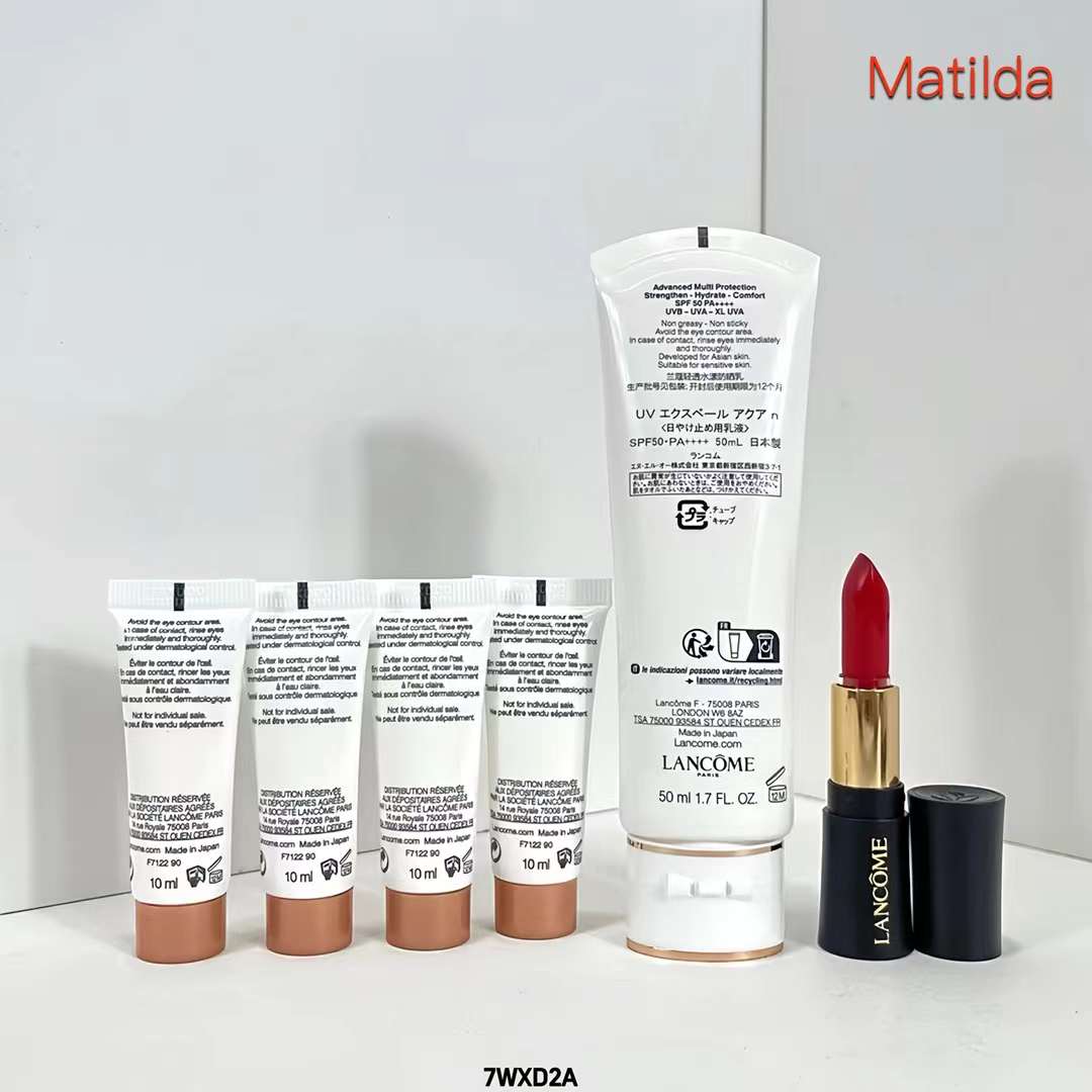 【品牌授权】兰蔻小白管防晒龙年套装正装50ml+小样10ml*4+兰蔻菁纯哑光口红小样505#1.6g 生日礼物 情人节礼物 纪念日礼物