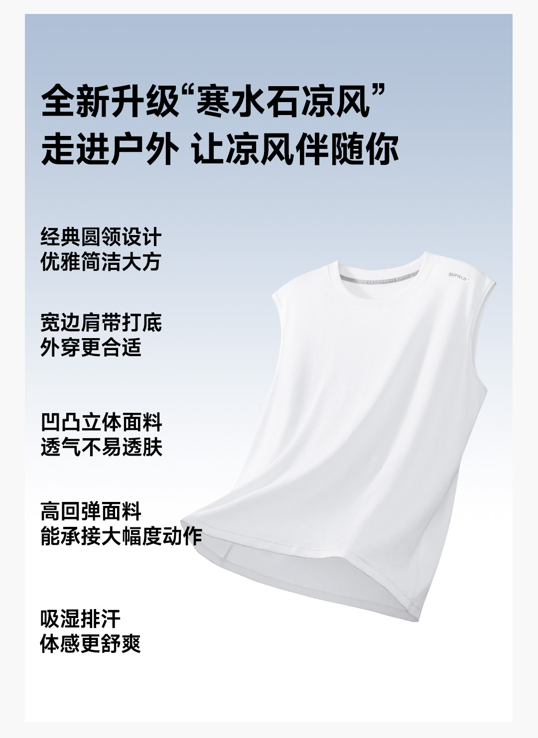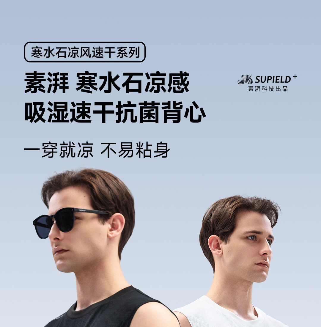 素湃Supield百叶窗吸湿速干运动背心男7A抗菌寒水石超轻凉感无袖T