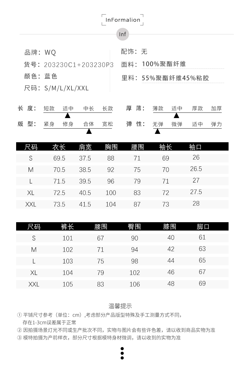 IWY/个性职场精选长袖西装微喇长裤套装CP203230+203144