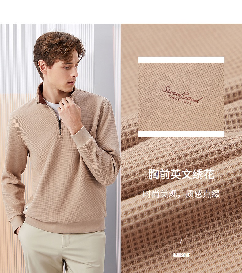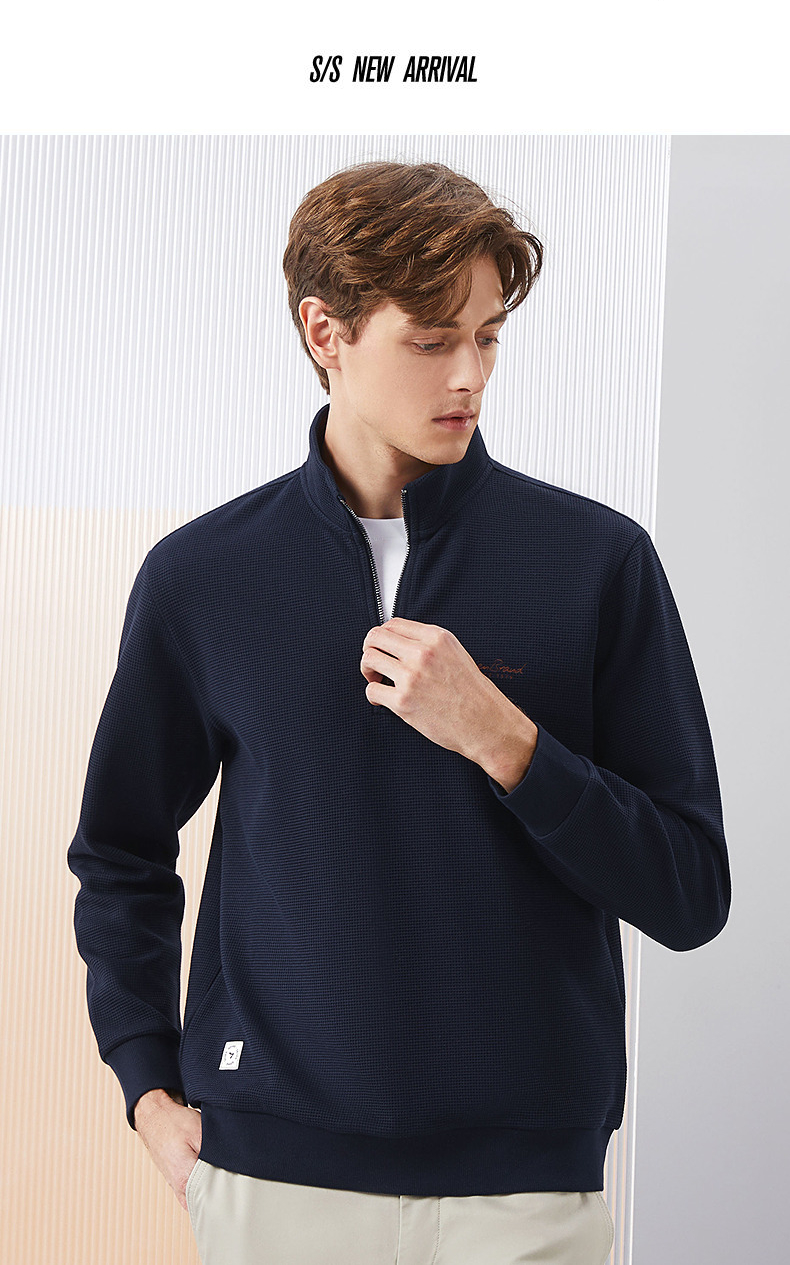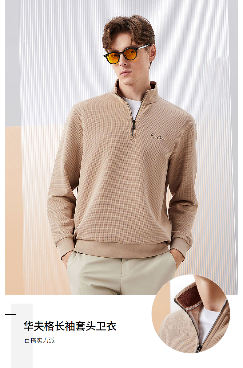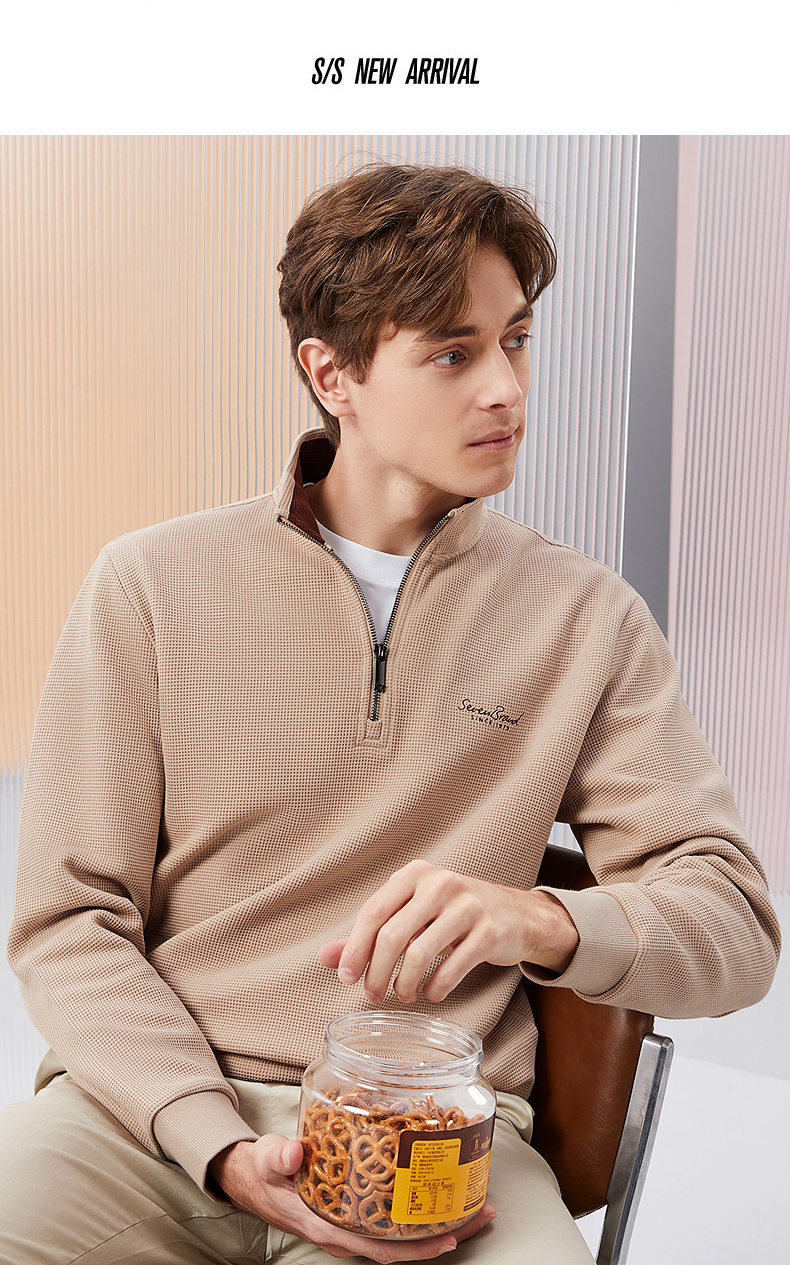 【华夫格】柒牌半拉链卫衣男2024春季新款时尚休闲立领套头上衣潮 126W70100