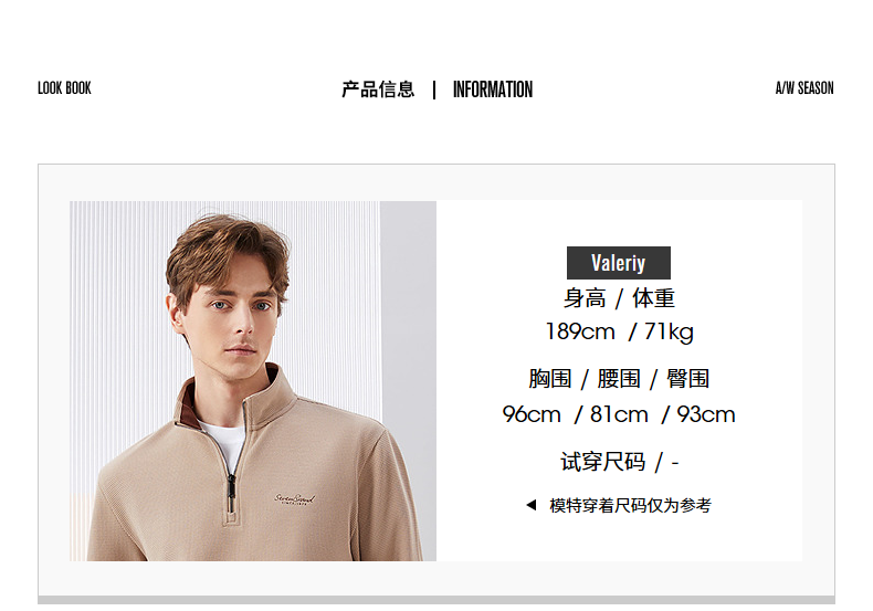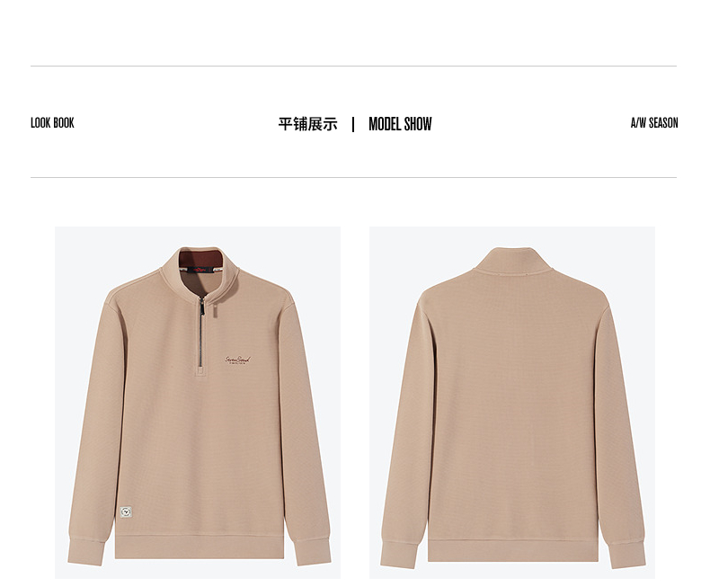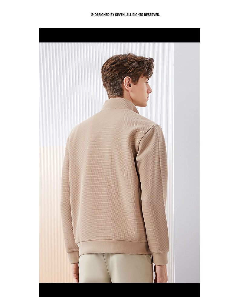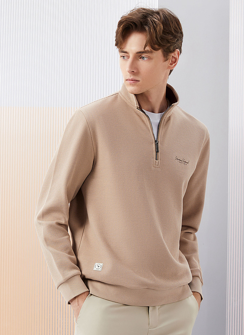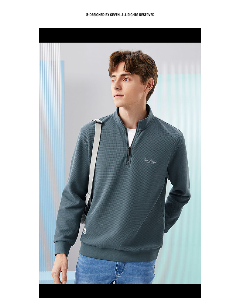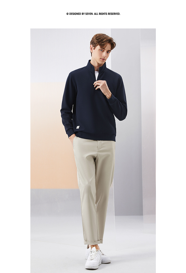【华夫格】柒牌半拉链卫衣男2024春季新款时尚休闲立领套头上衣潮 126W70100