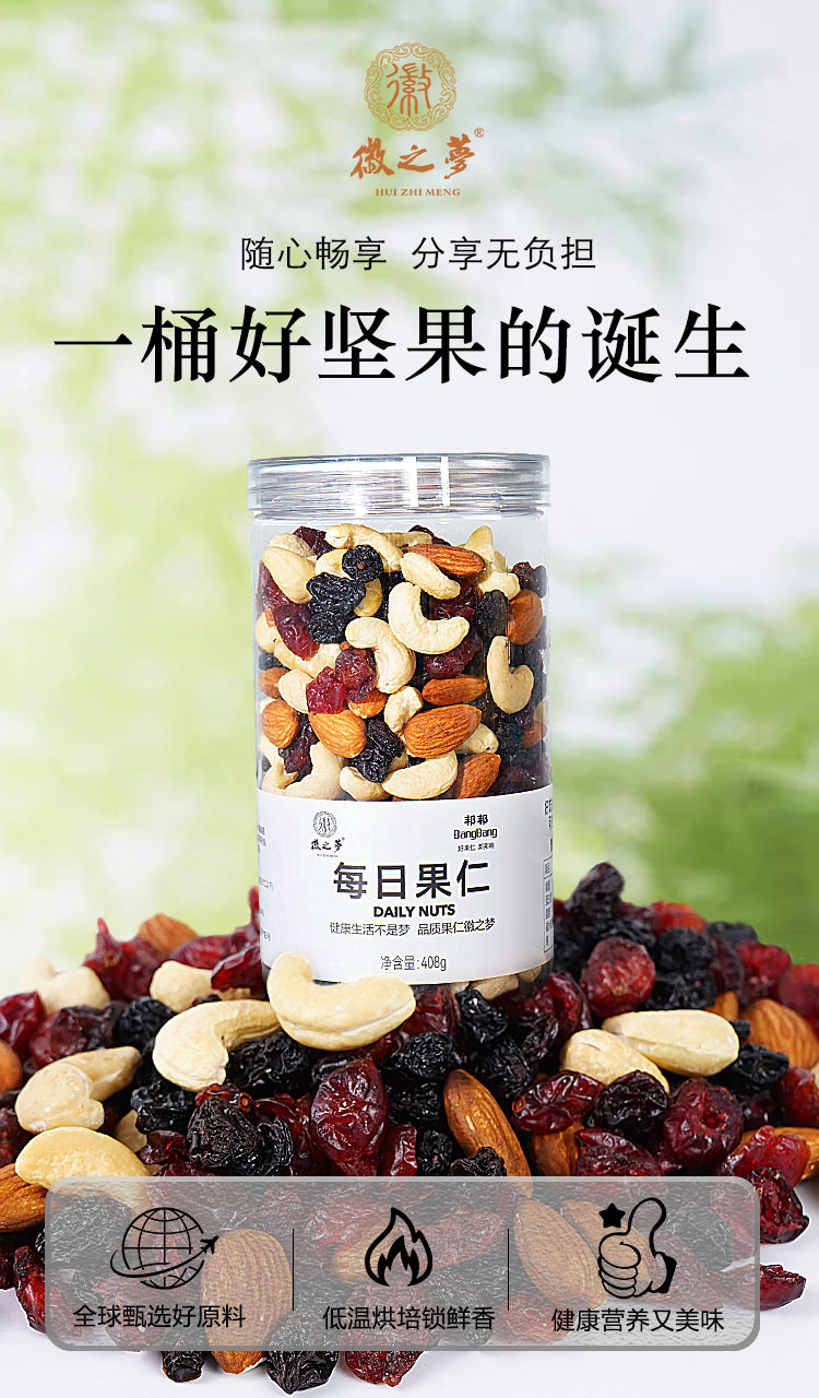 徽之梦 每日果仁 腰果仁巴旦木仁黑提子干蔓越莓干桶装原味 坚果混合原味罐装 新鲜健康早餐休闲小零食