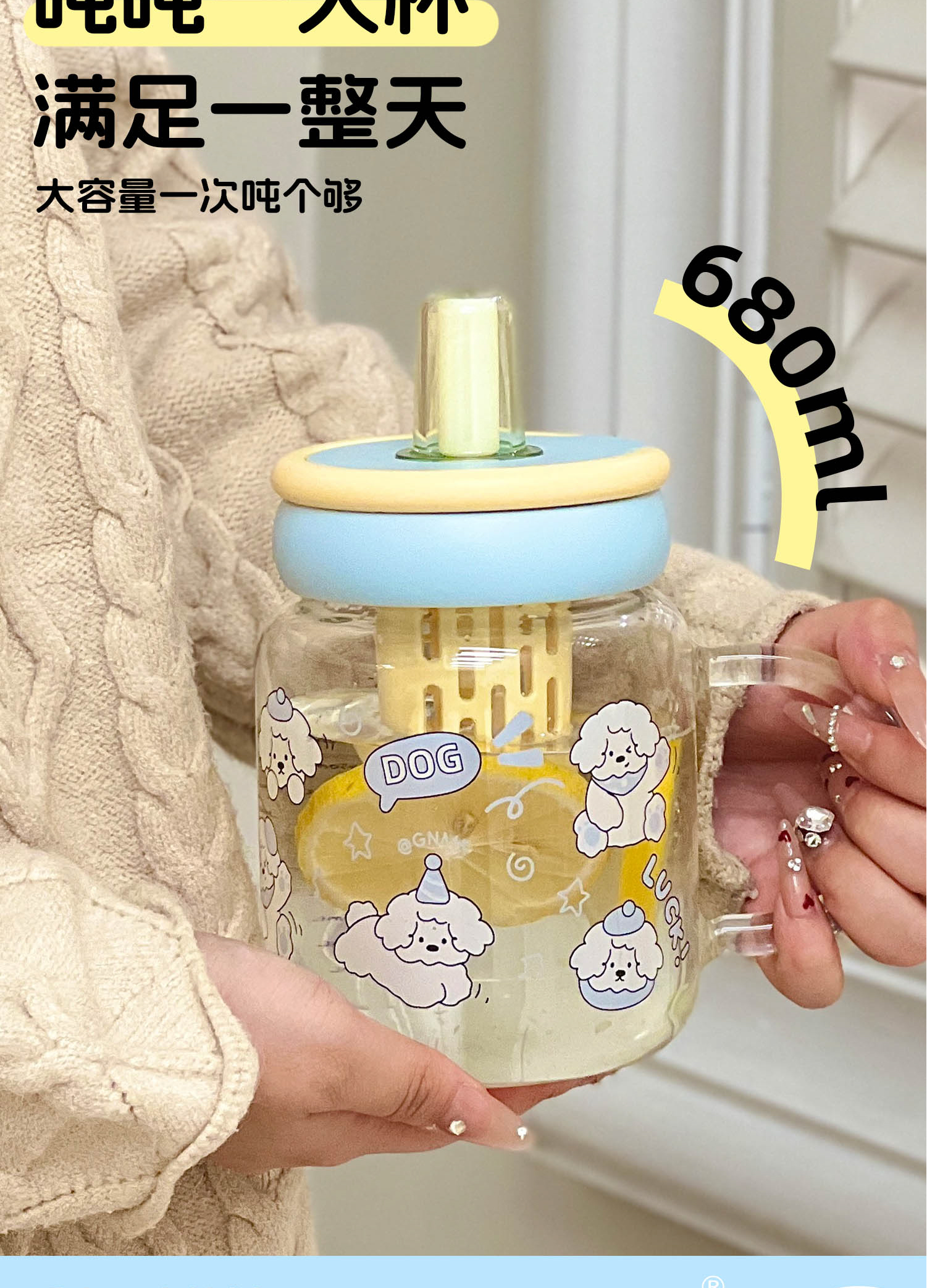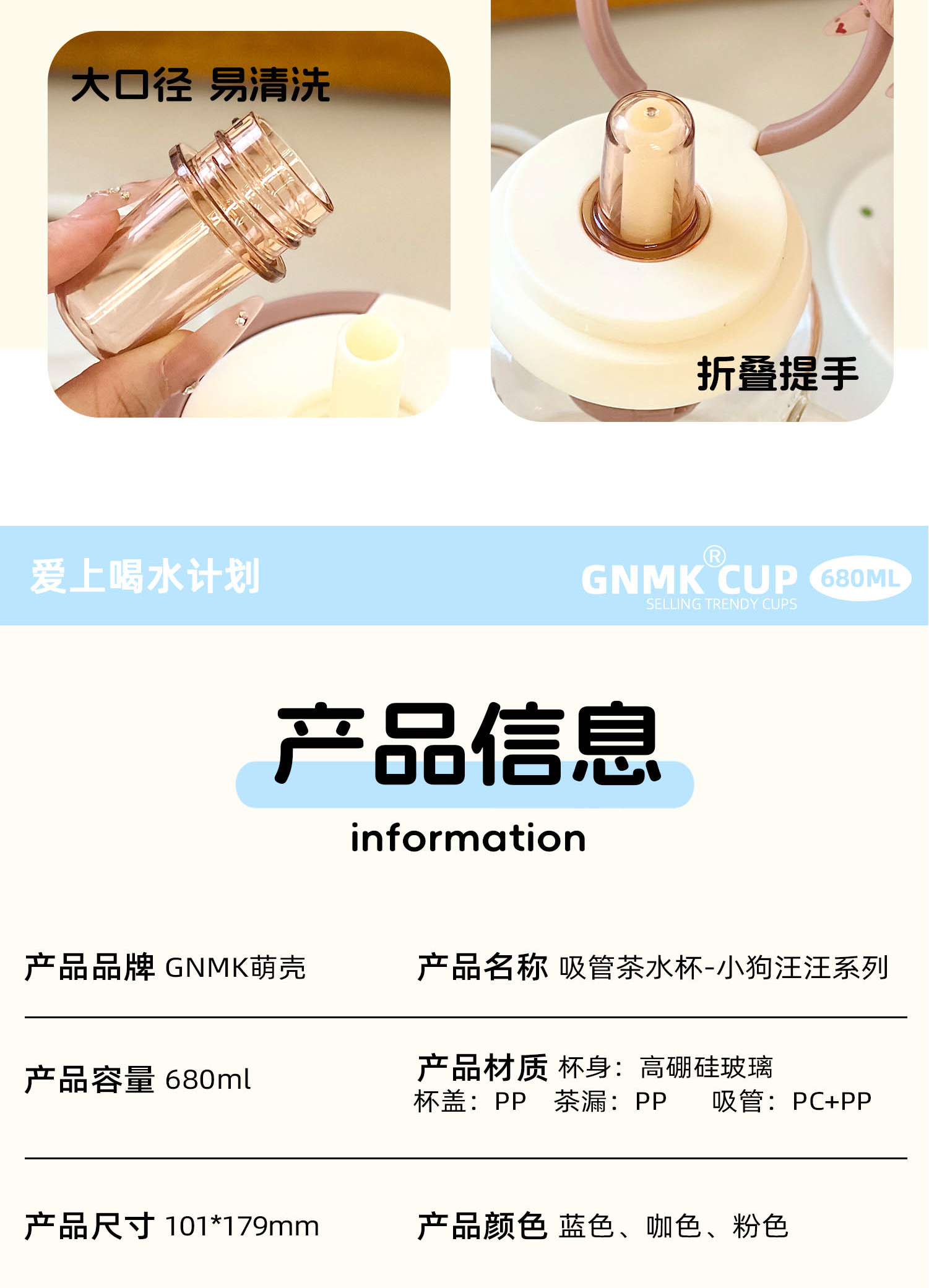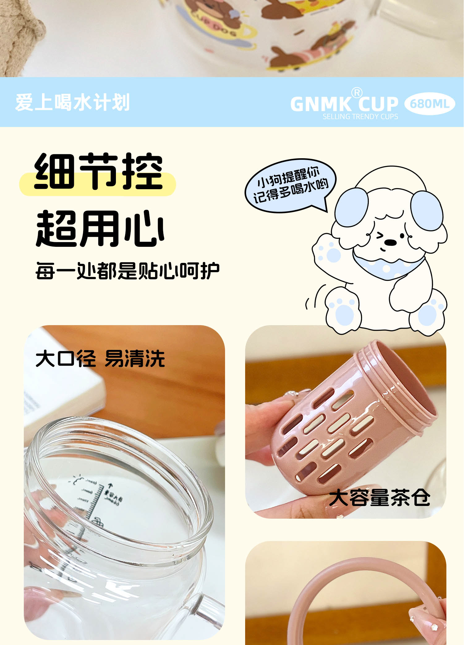 GNMK吸管茶水系列玻璃杯680ML 随机发 250106