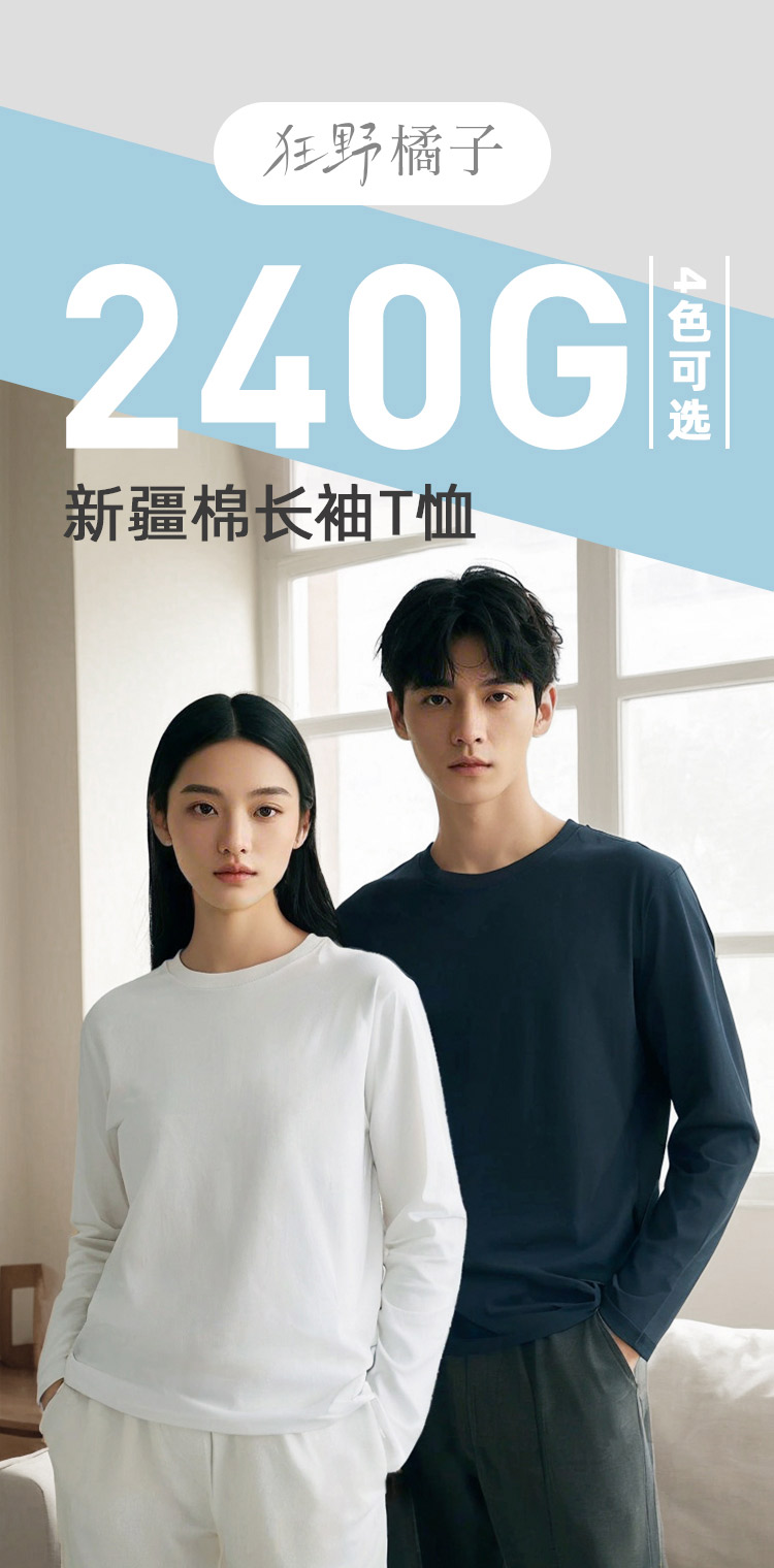 【89元3件起】重磅纯棉T恤(长袖+短袖)狂野橘子·230g/240g/260g 挺括高级质感 透气亲肤 不闷热不透点 遮肉显瘦修饰身形