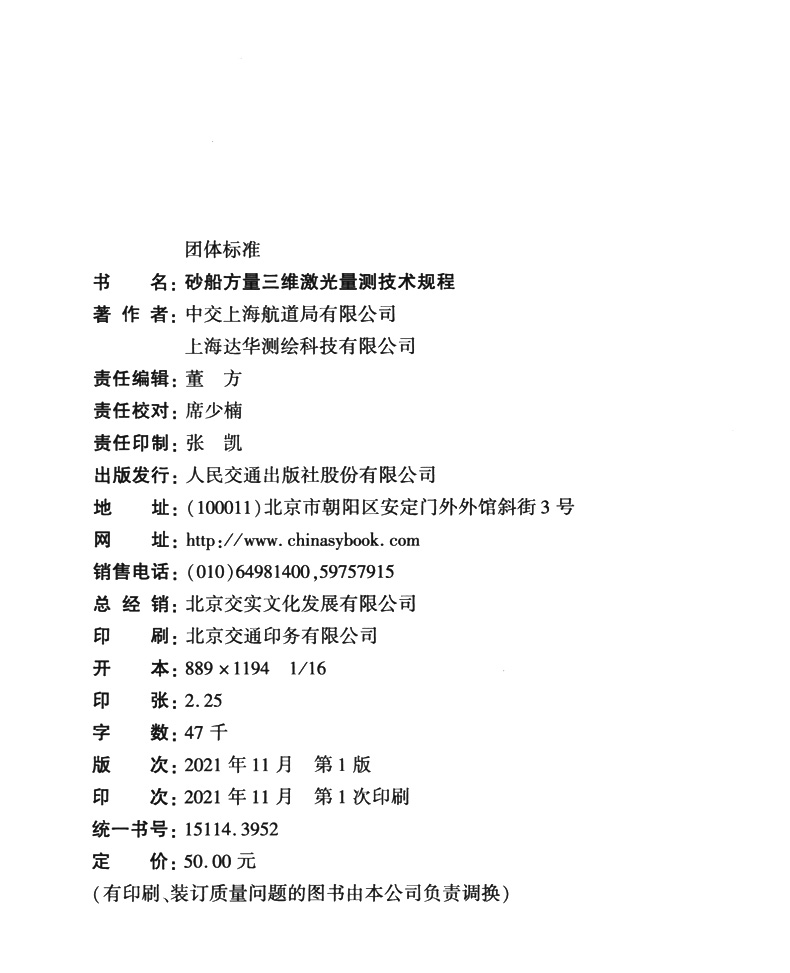 书名:砂船三维激光方量量测技术规程