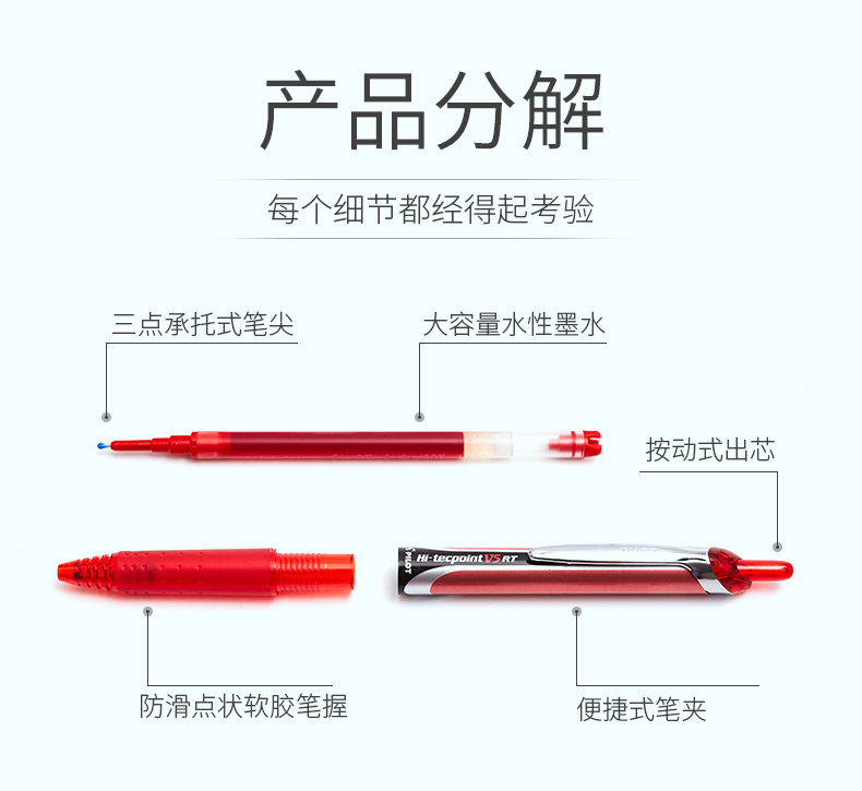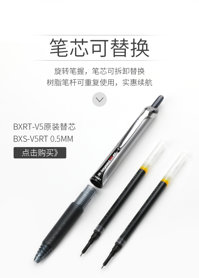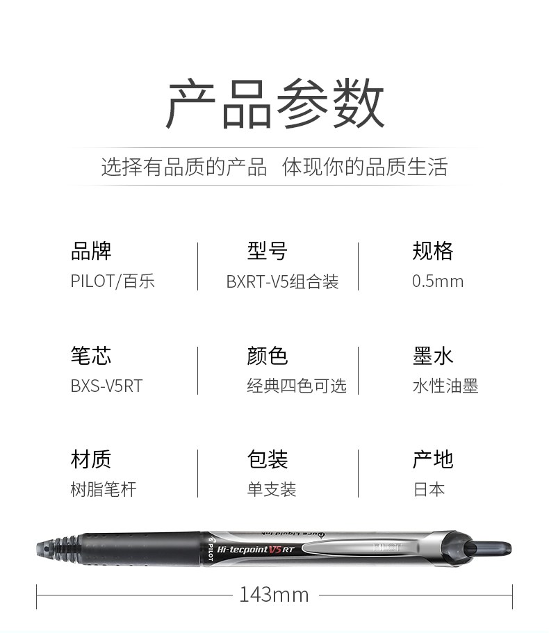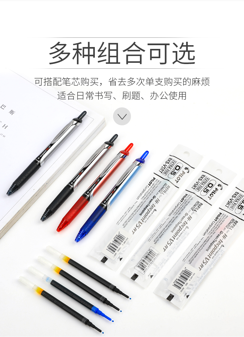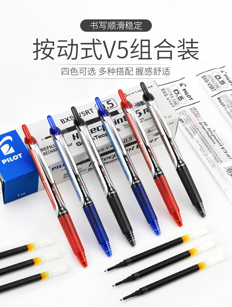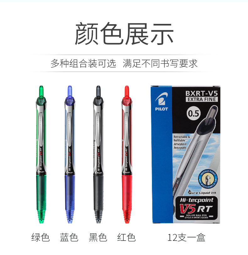 日本Pilot百乐BXRT-V5按动中性笔开拓王0.5mm 针管走珠笔学生考试
