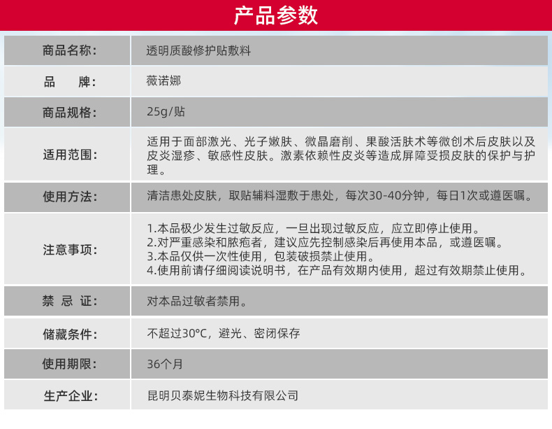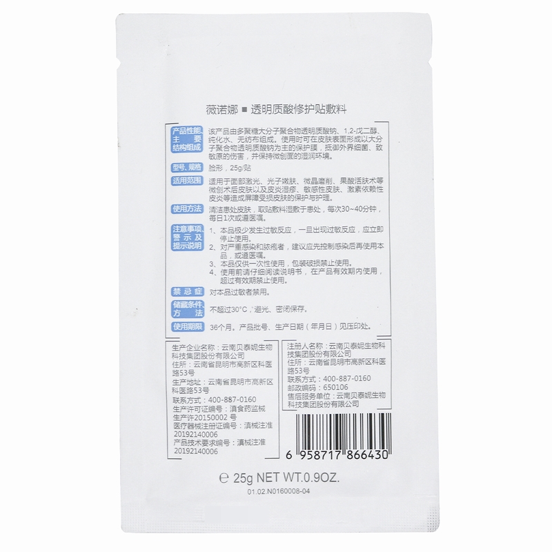 【6单片装】薇诺娜透明质酸修护贴敷料25g(效期至26年3月)【械】