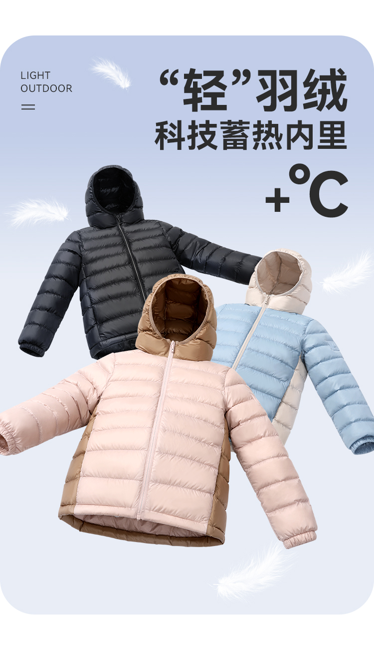水孩儿童装2024秋冬新款女童羽绒服男童外套中大童轻薄羽三防抑菌外套