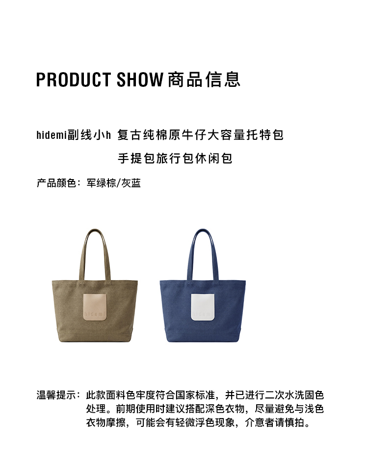 hidemi副线小h 复古大容量托特包手提包旅行包休闲包
