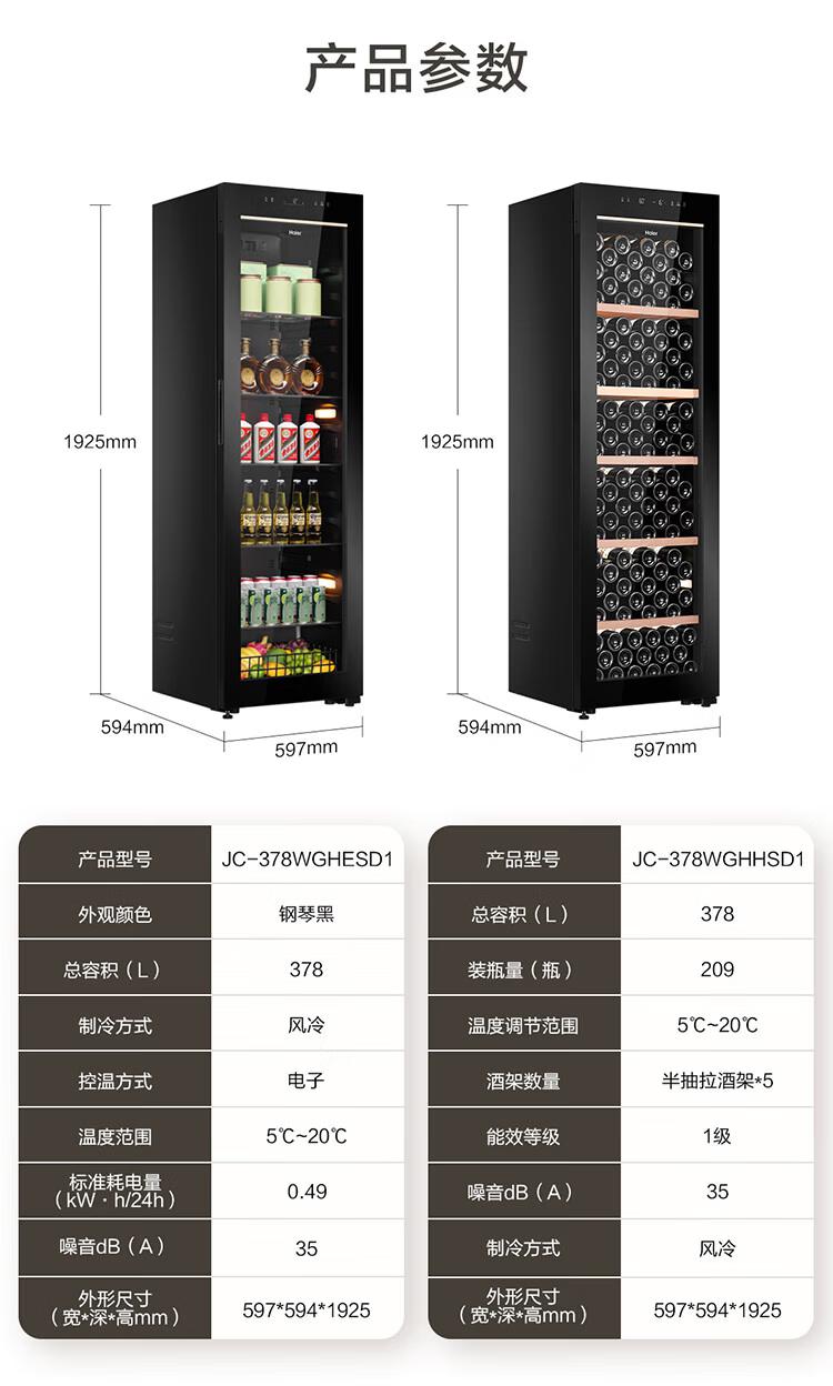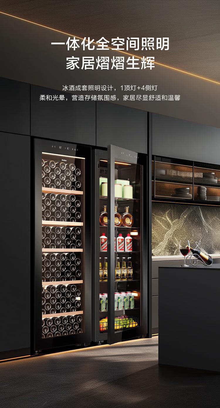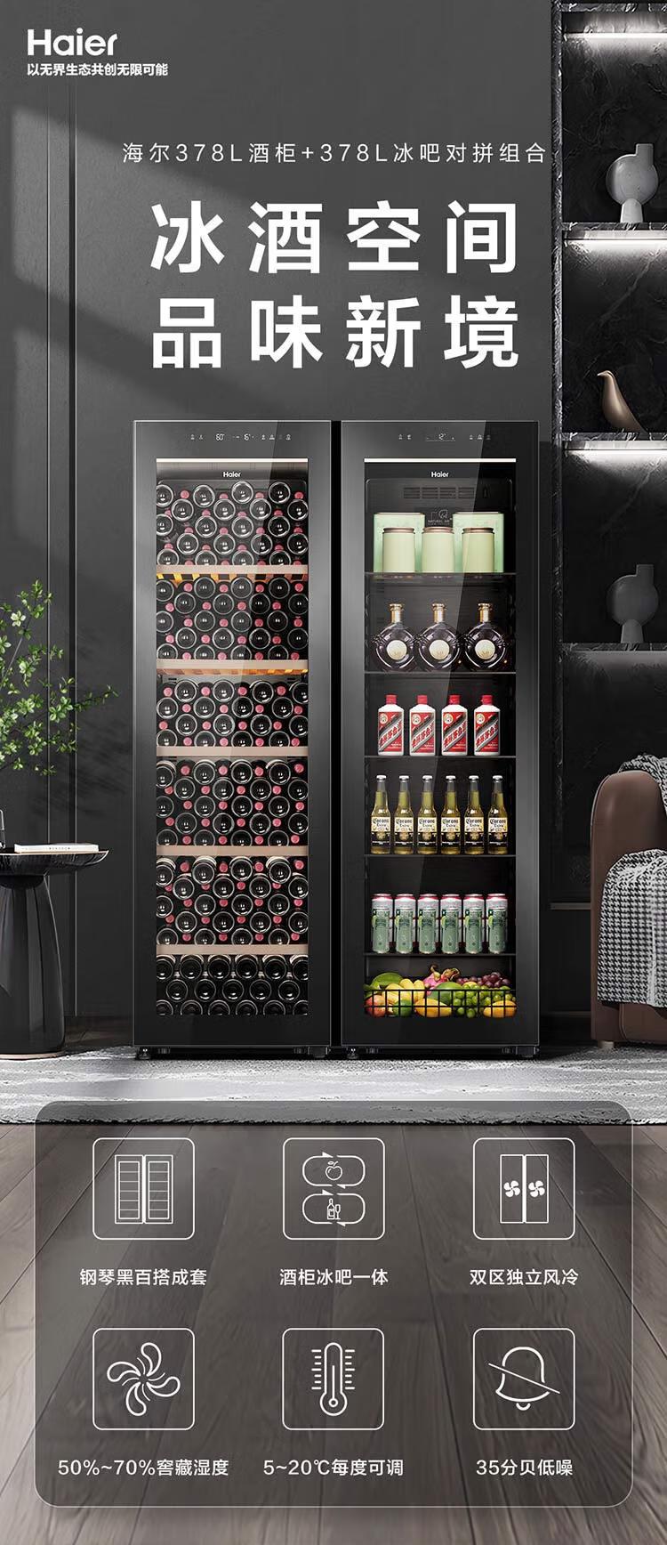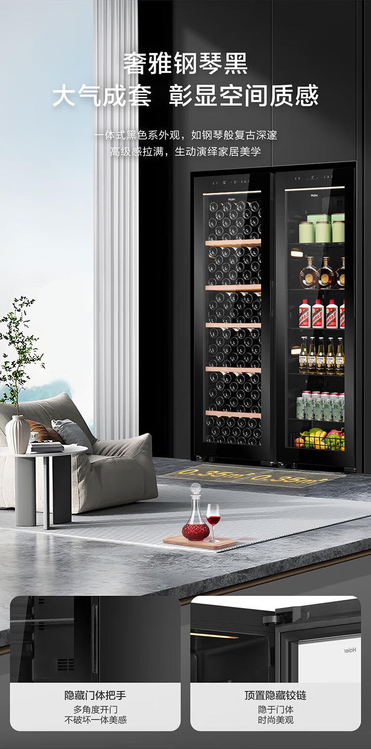海尔(Haier)【新品现货】大容量嵌入式冰吧378L恒湿红酒柜家用办公室客厅冷藏保鲜柜风冷柜葡萄酒红酒展示柜 冰吧丨风冷无霜丨378L左右换门