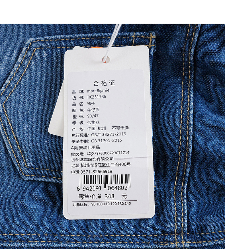 马克珍妮秋装新款 女童趣味樱桃弹力牛仔裤 231736