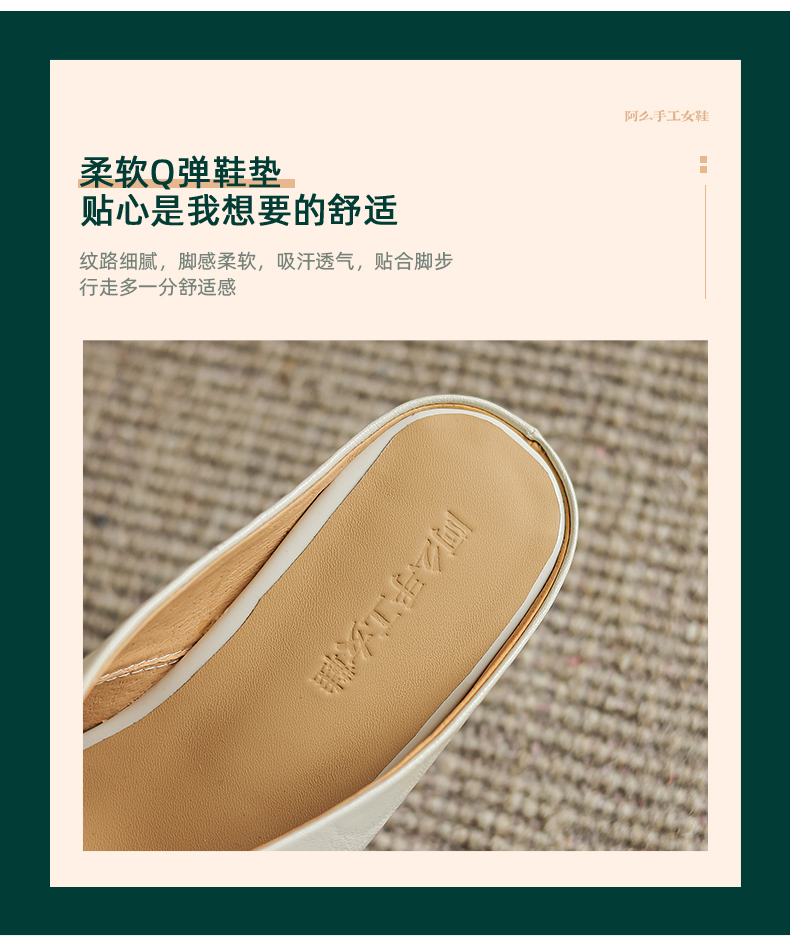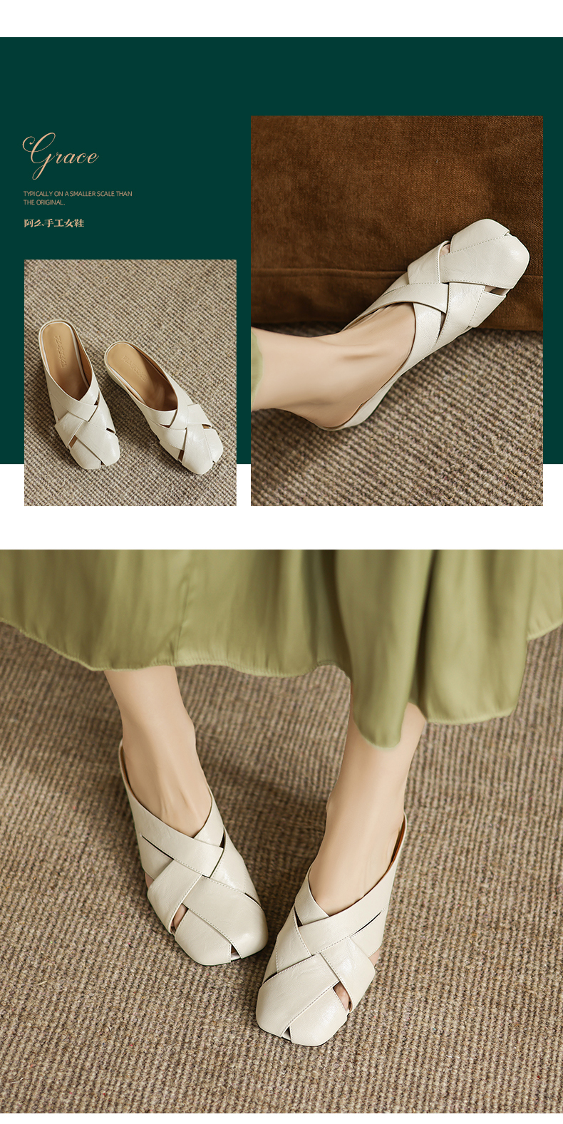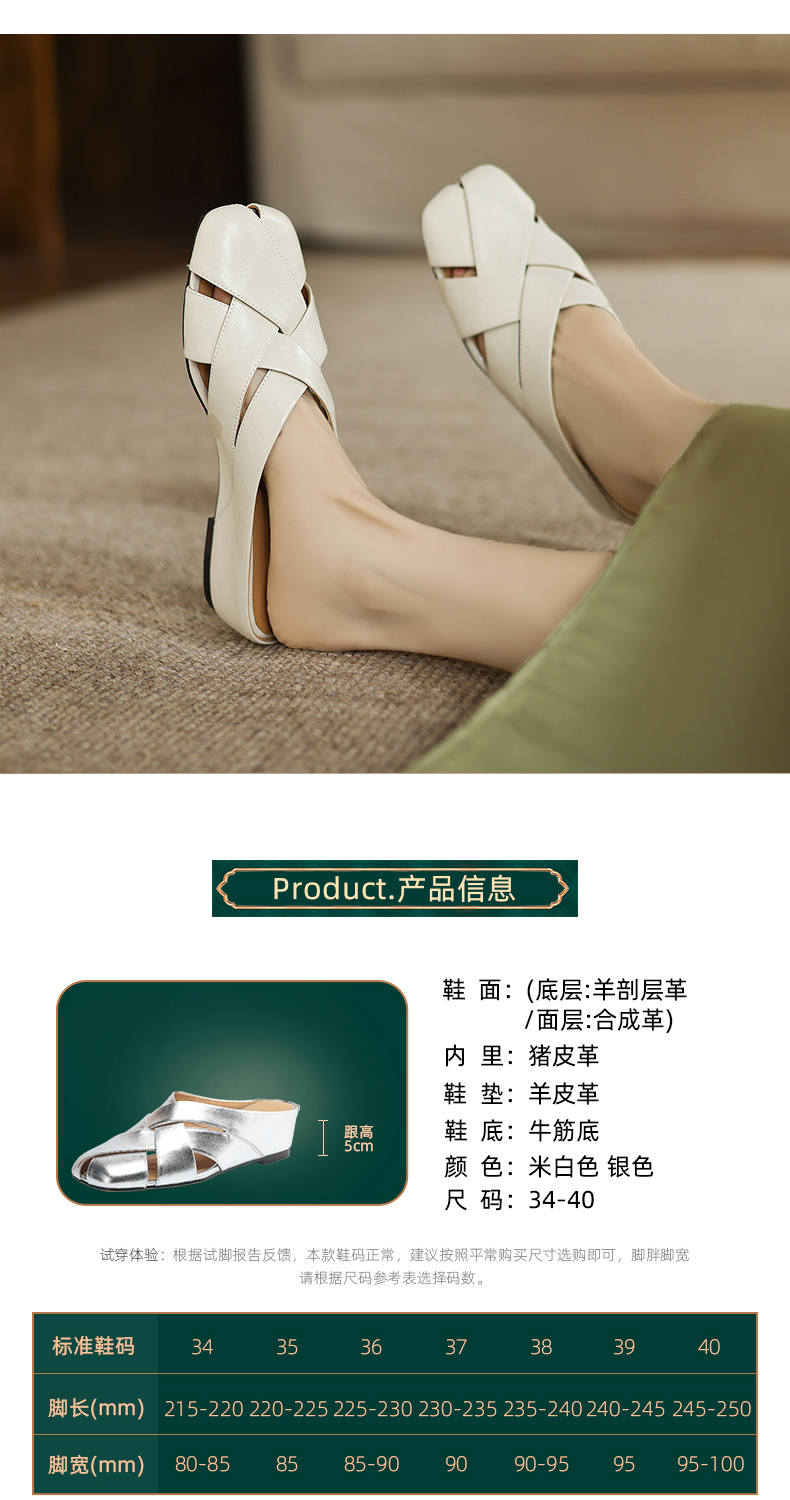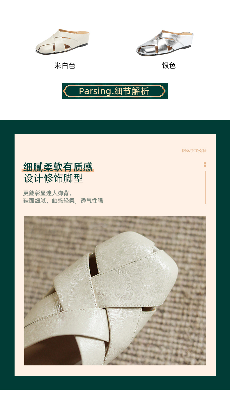 阿么手工女鞋真皮编织镂空凉鞋夏外穿百搭坡跟半拖包头鞋软底5CM