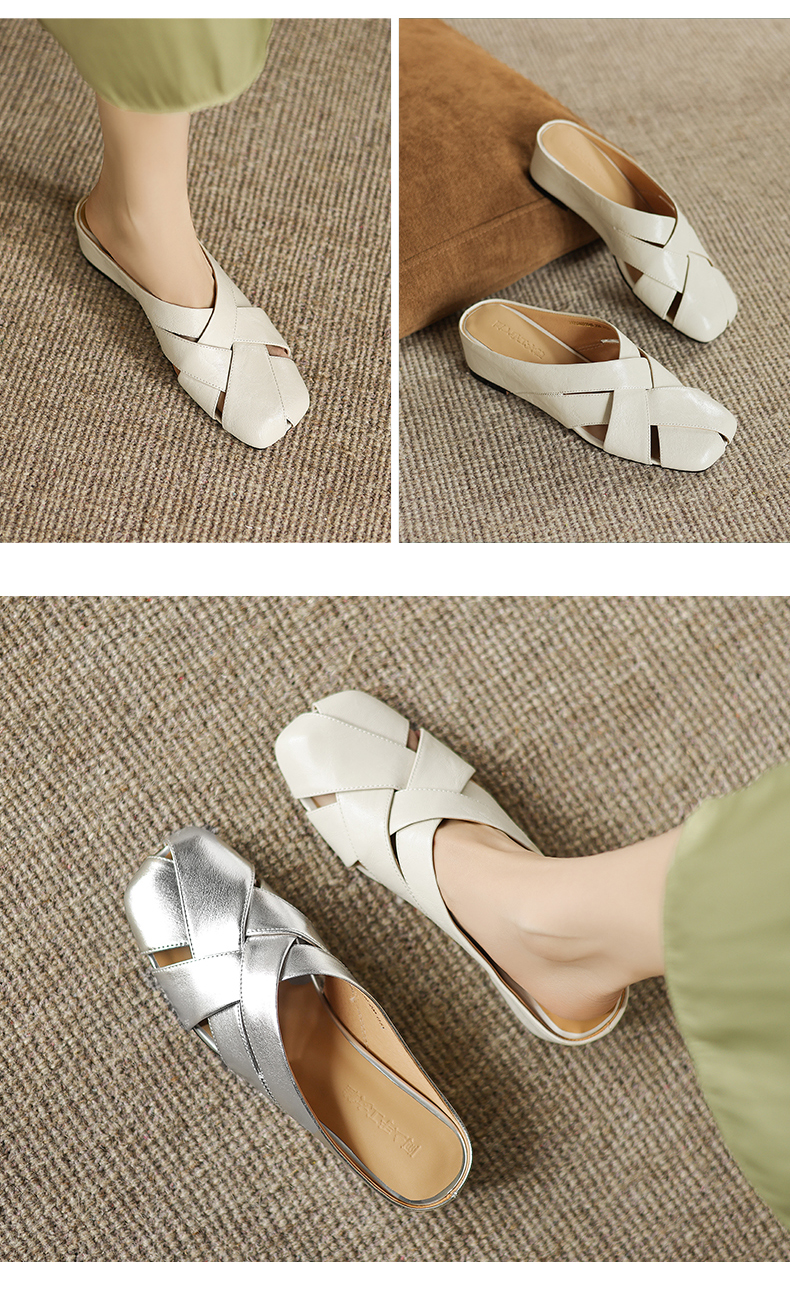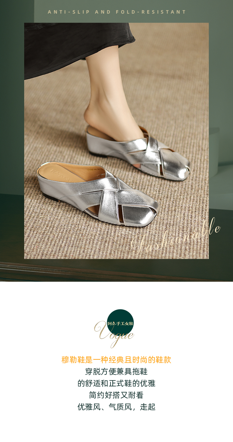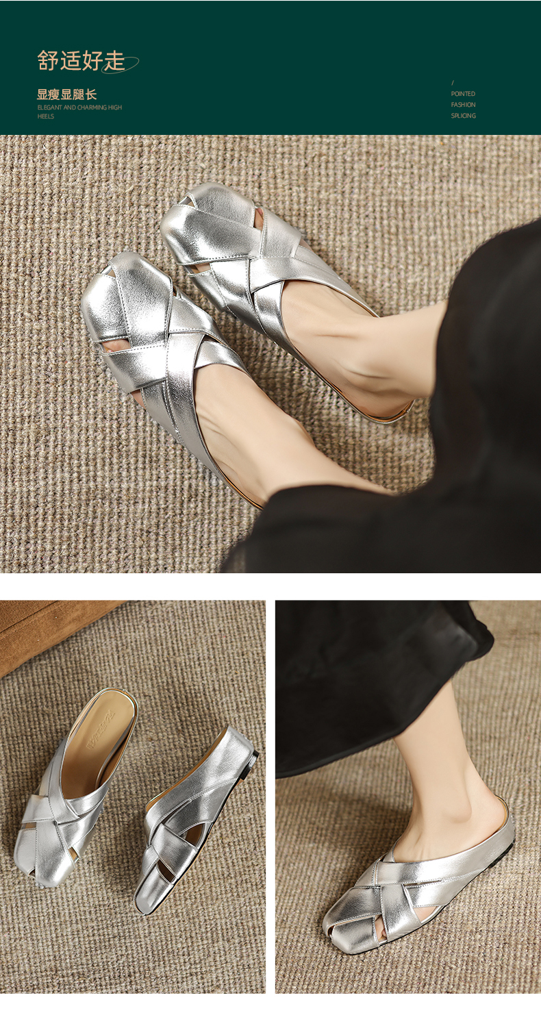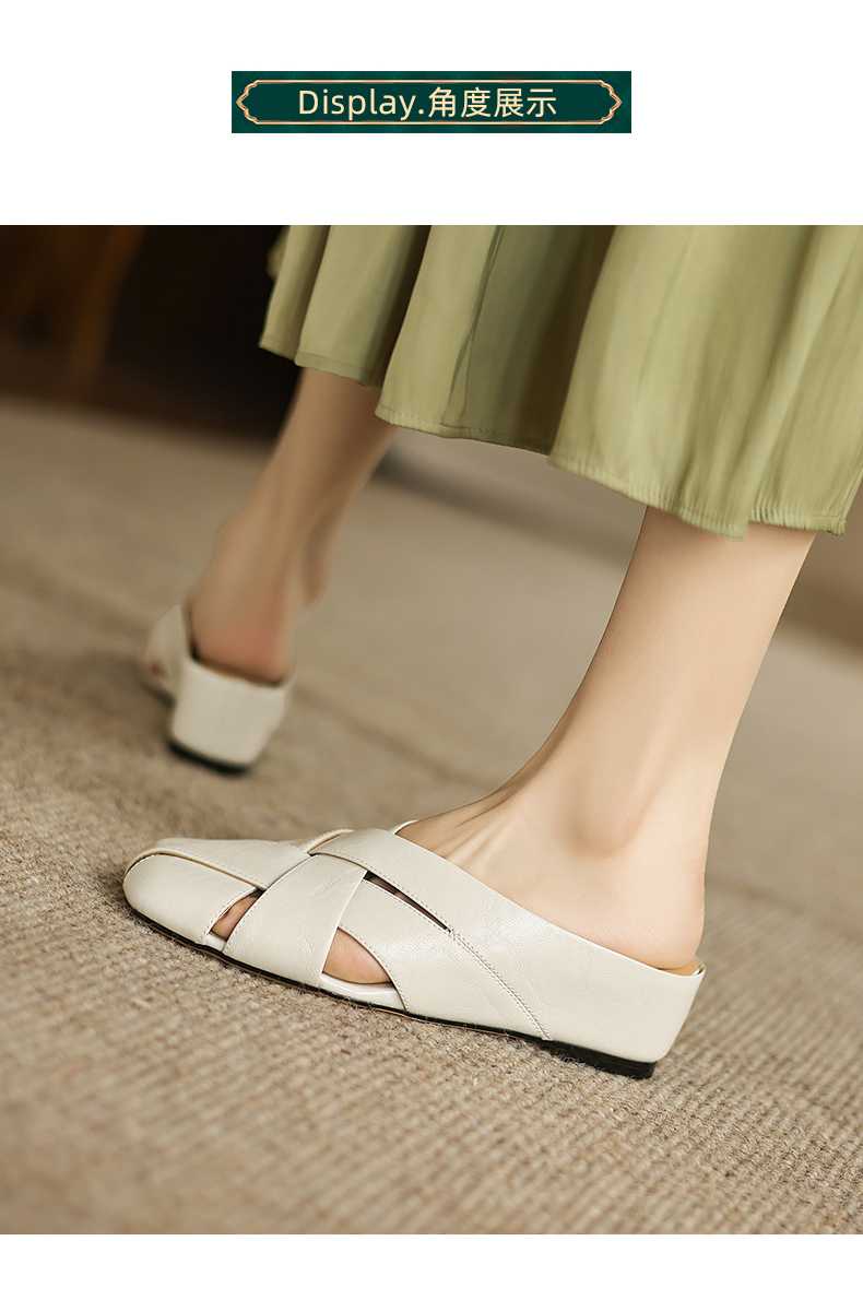 阿么手工女鞋真皮编织镂空凉鞋夏外穿百搭坡跟半拖包头鞋软底5CM