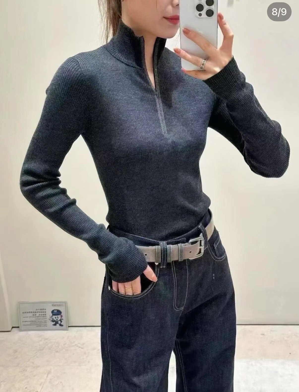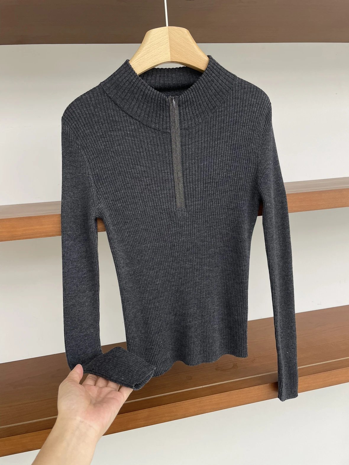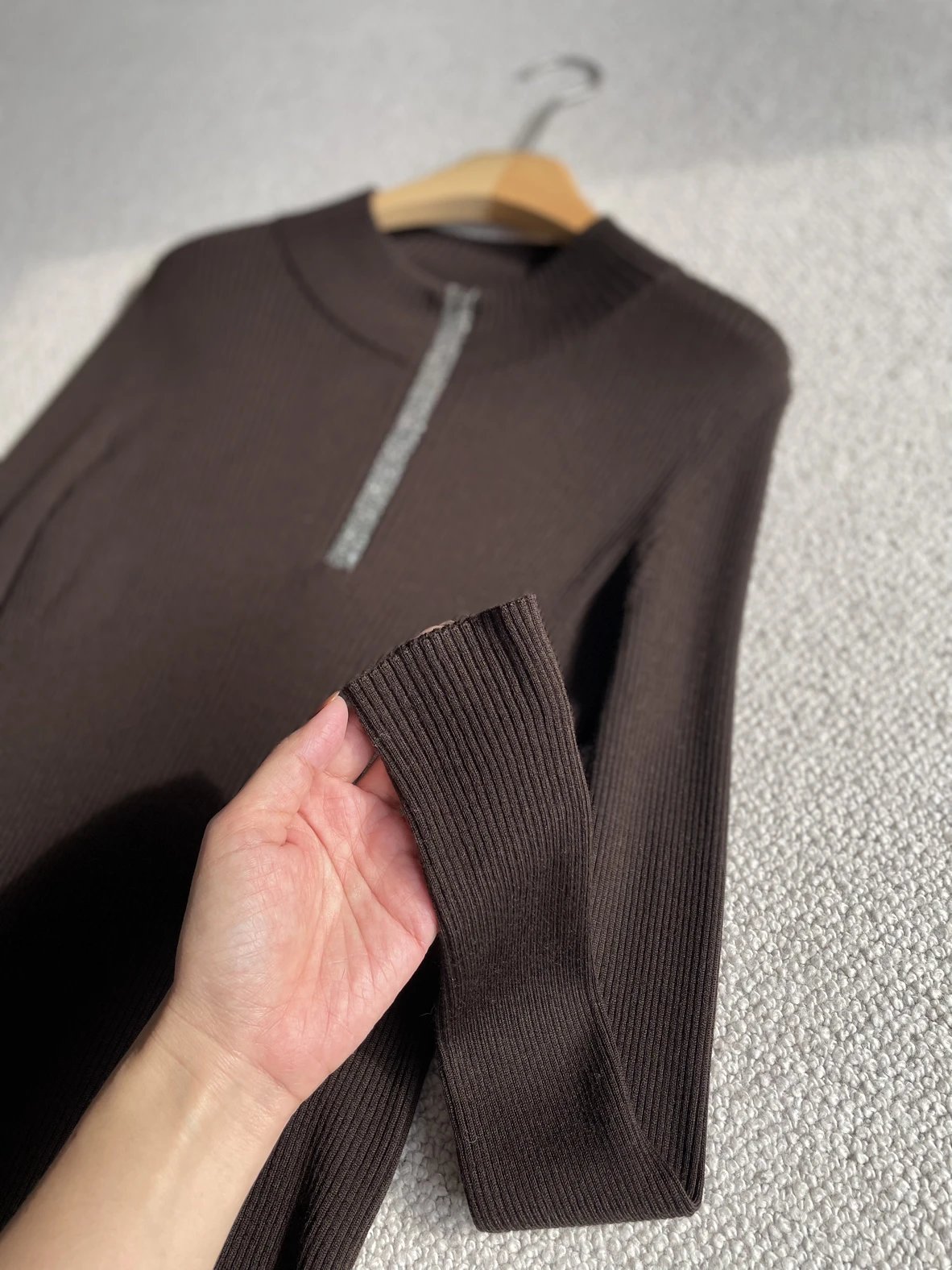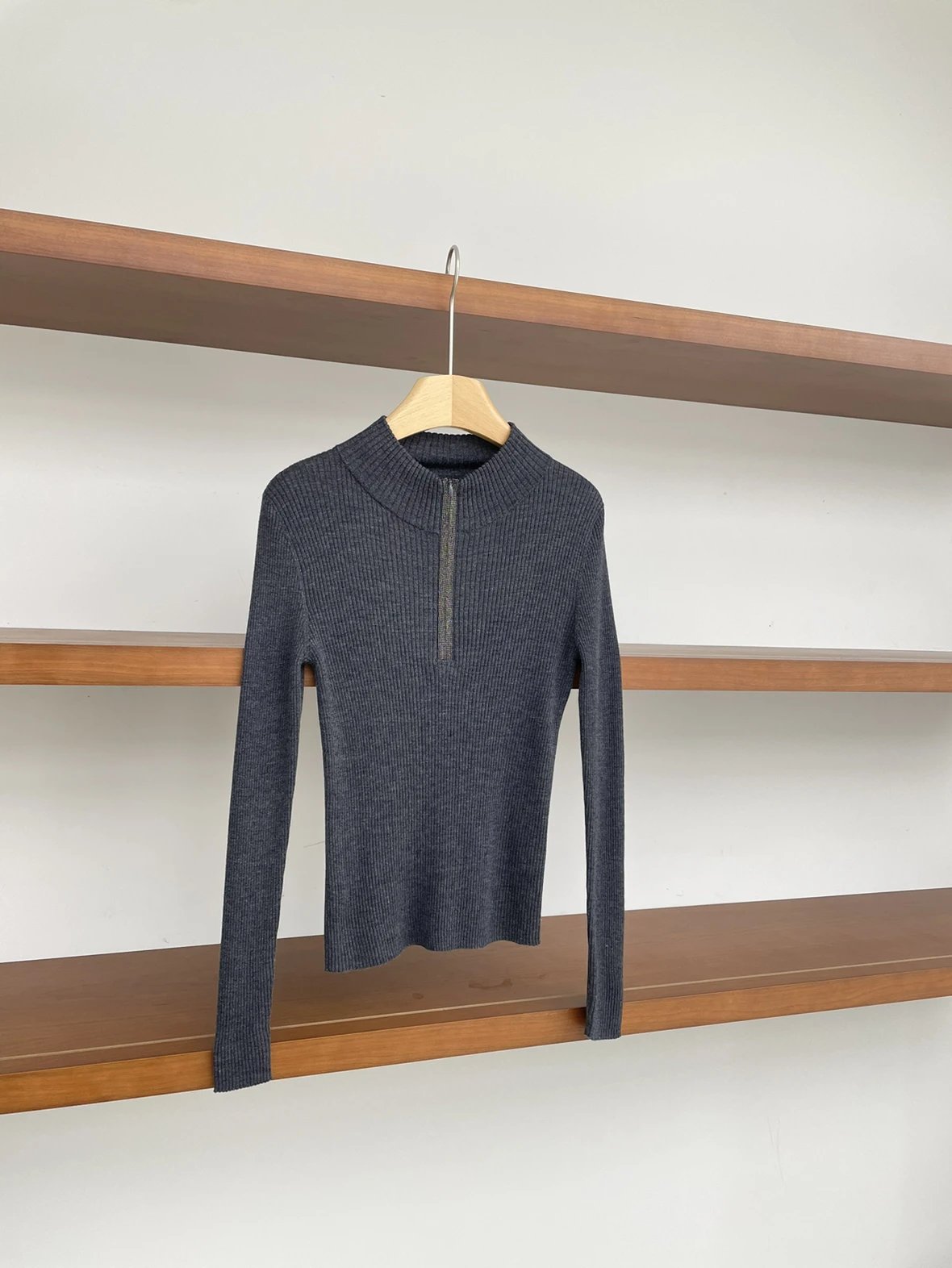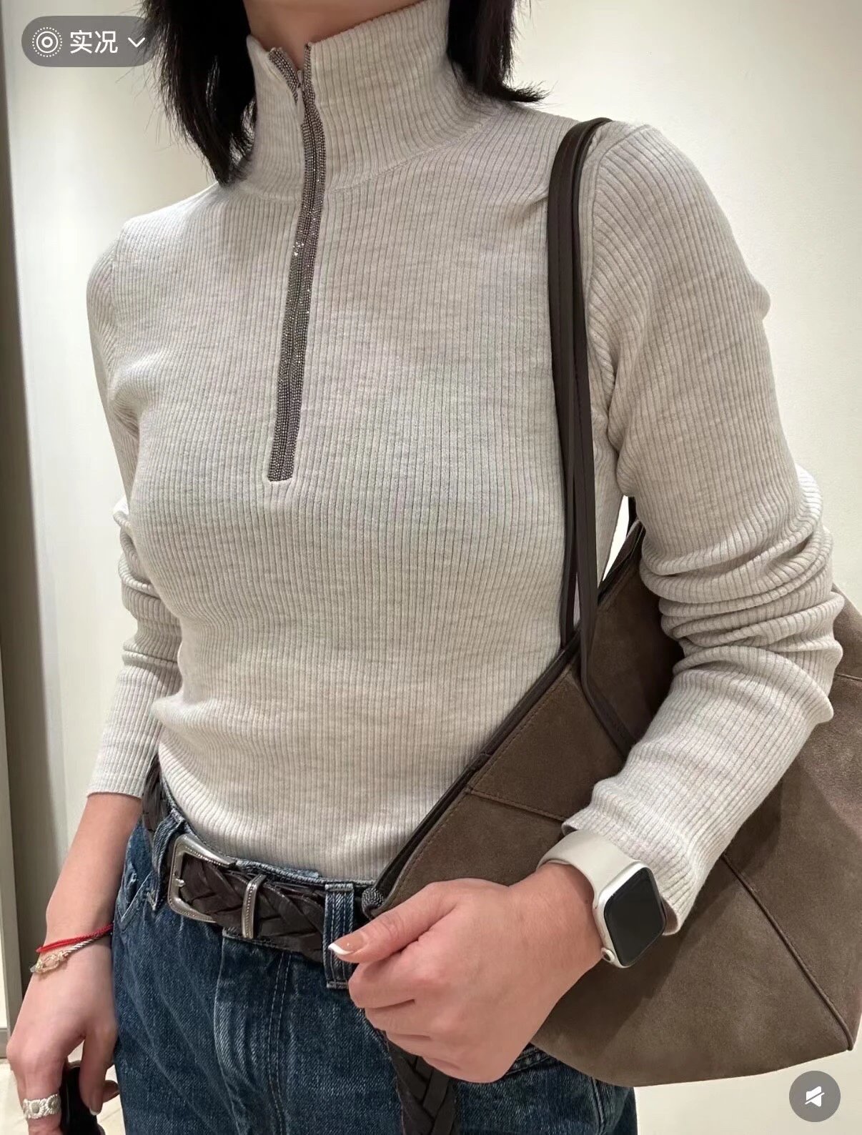 少量!重磅! bc半拉链打底 钉珠装饰 丝羊绒混纺 18针针织衫