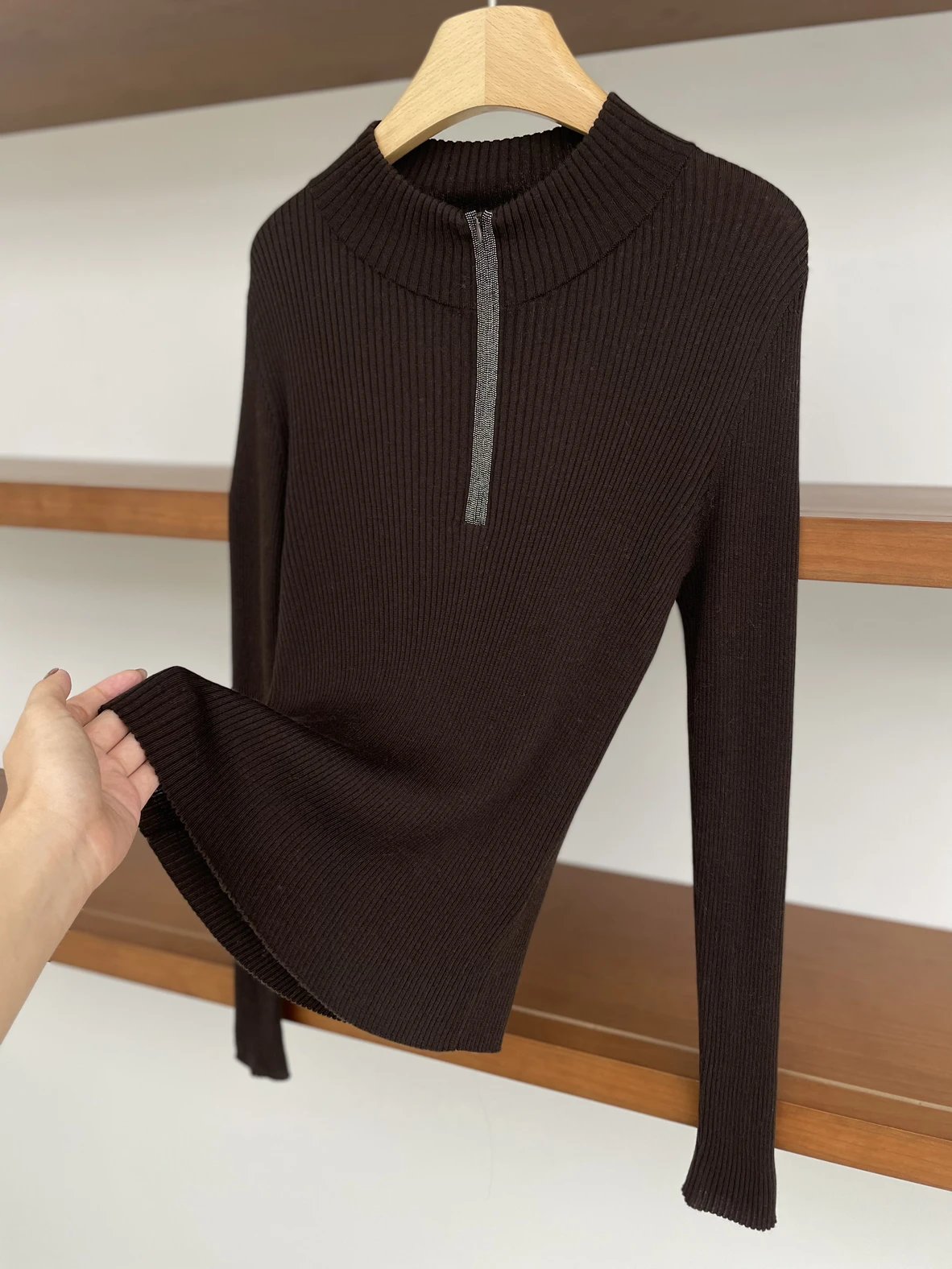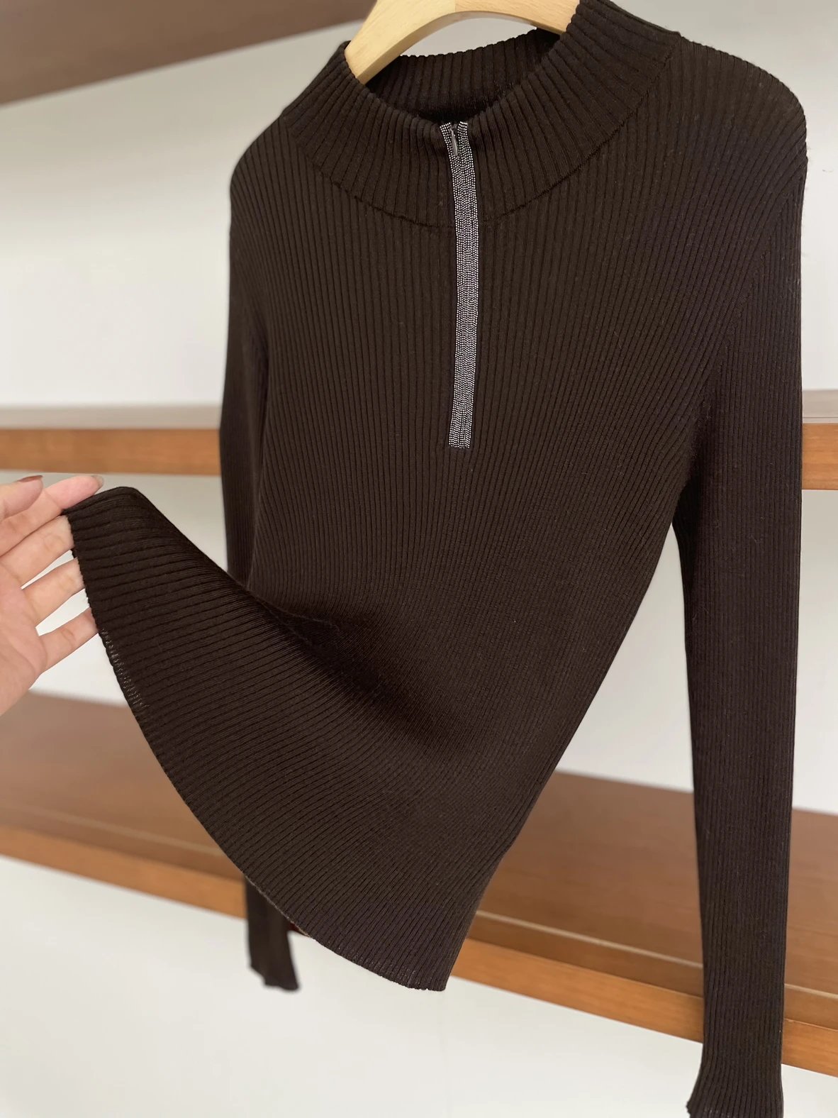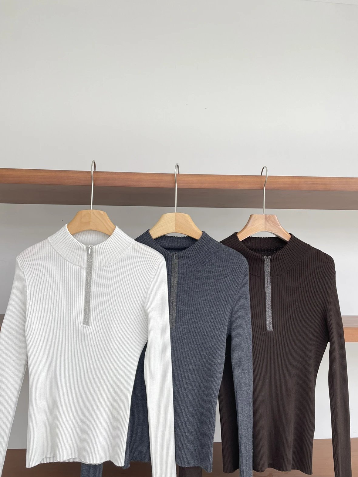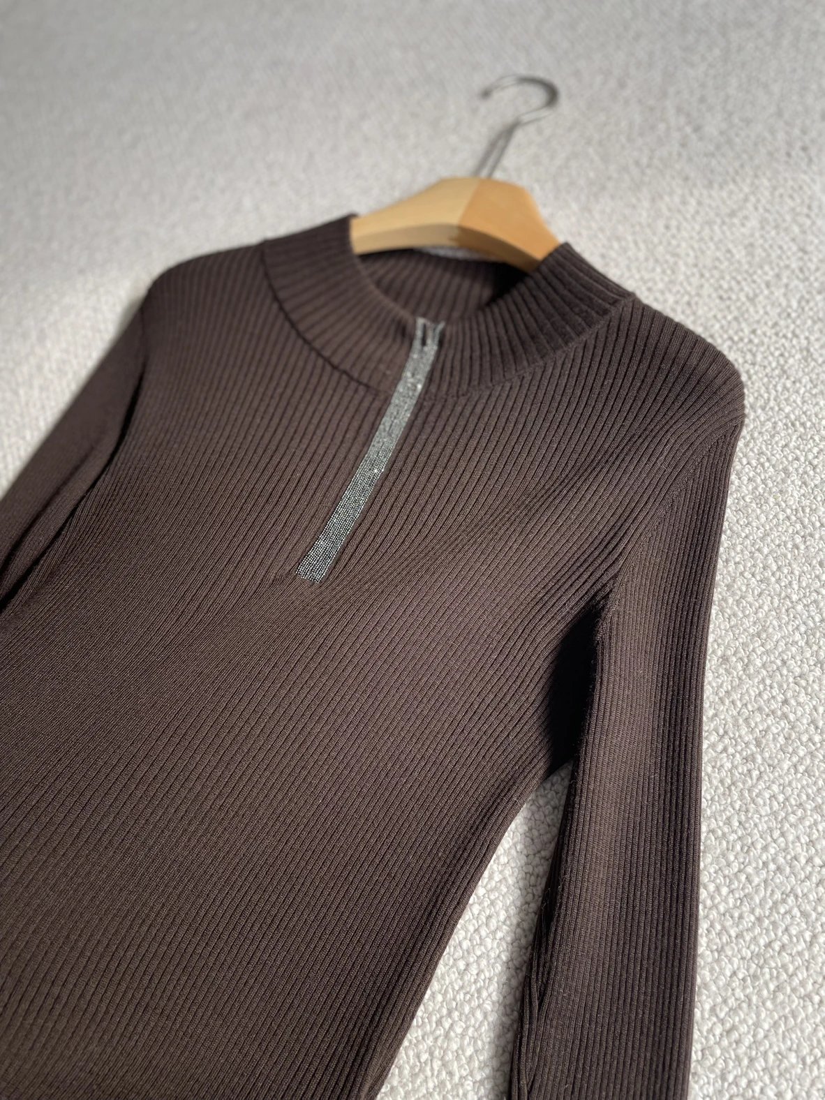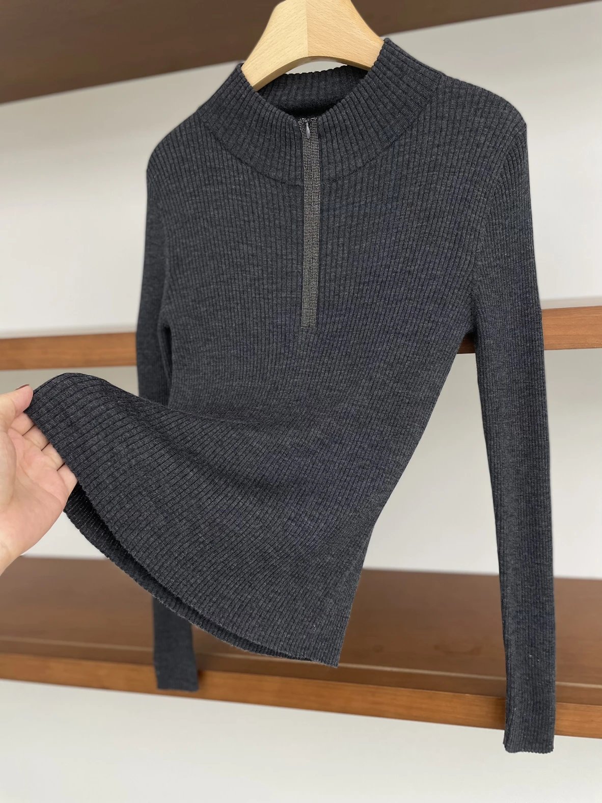 少量!重磅! bc半拉链打底 钉珠装饰 丝羊绒混纺 18针针织衫