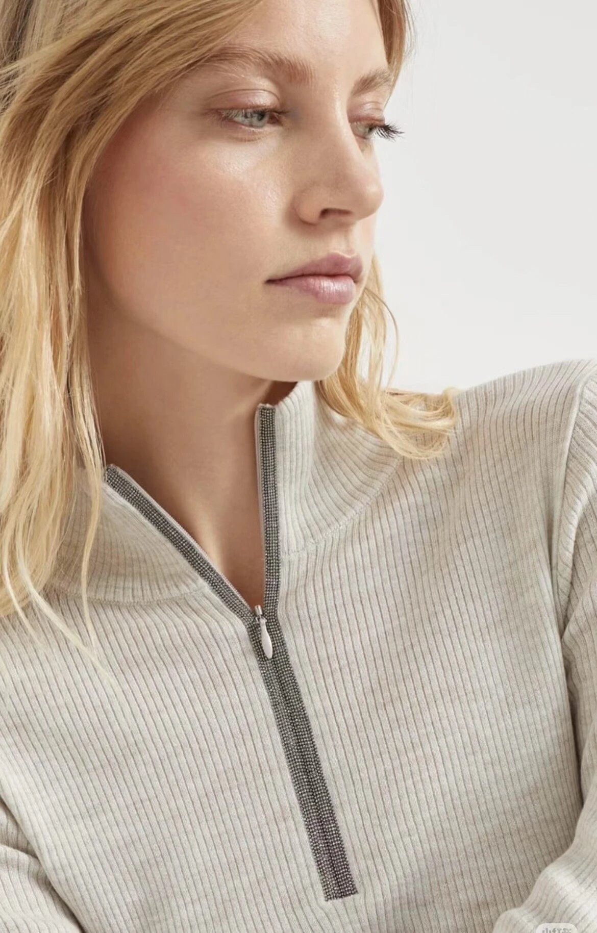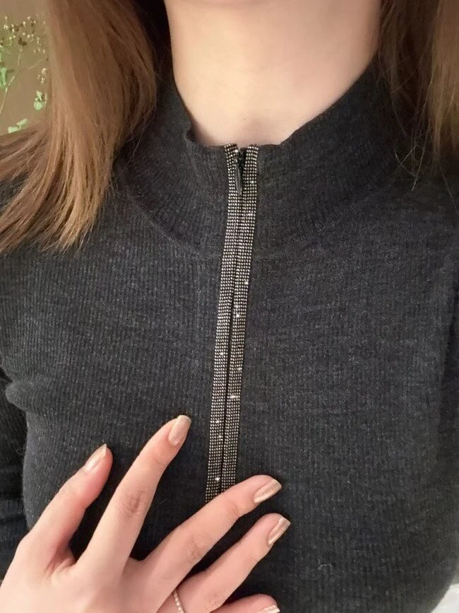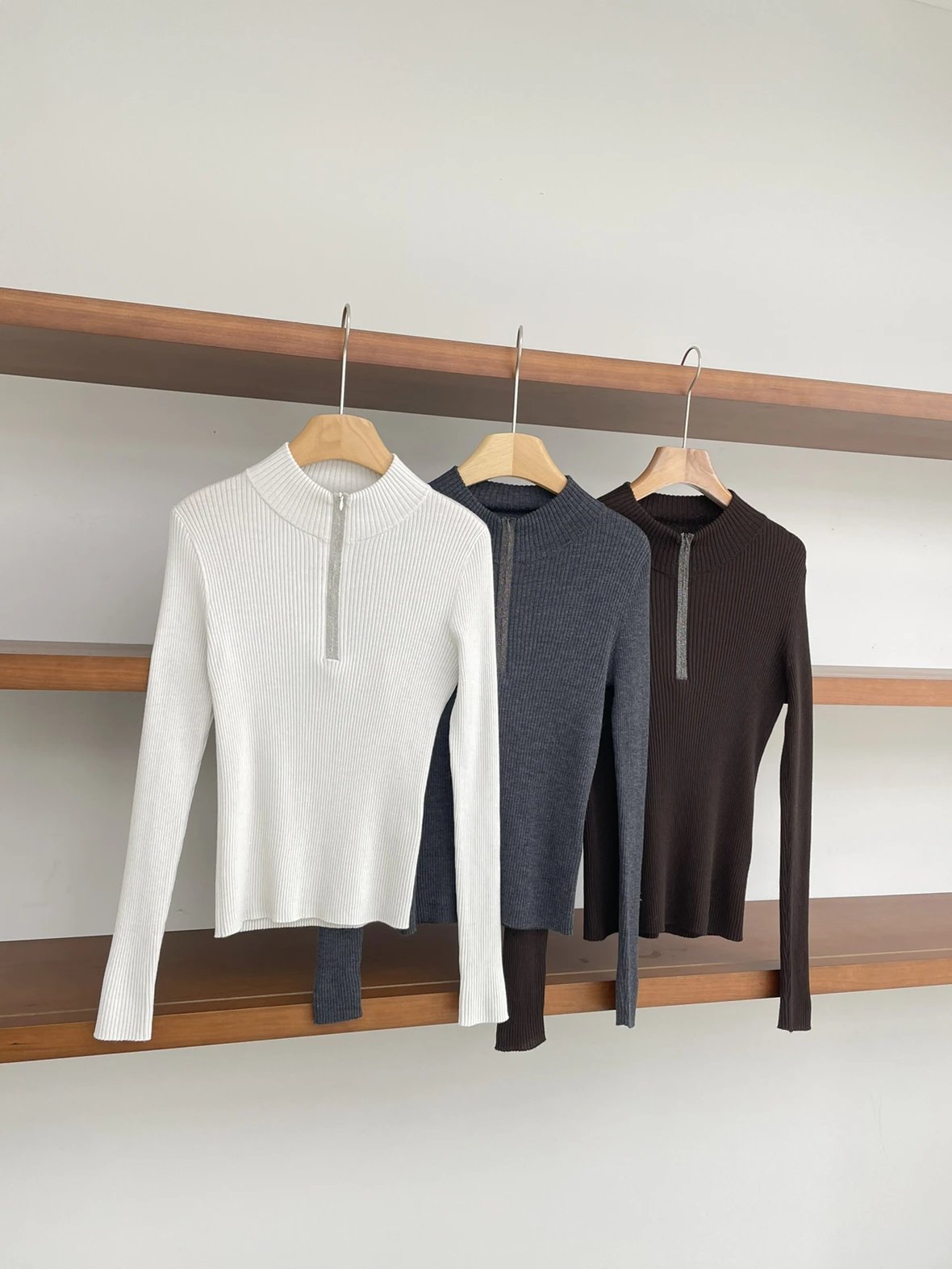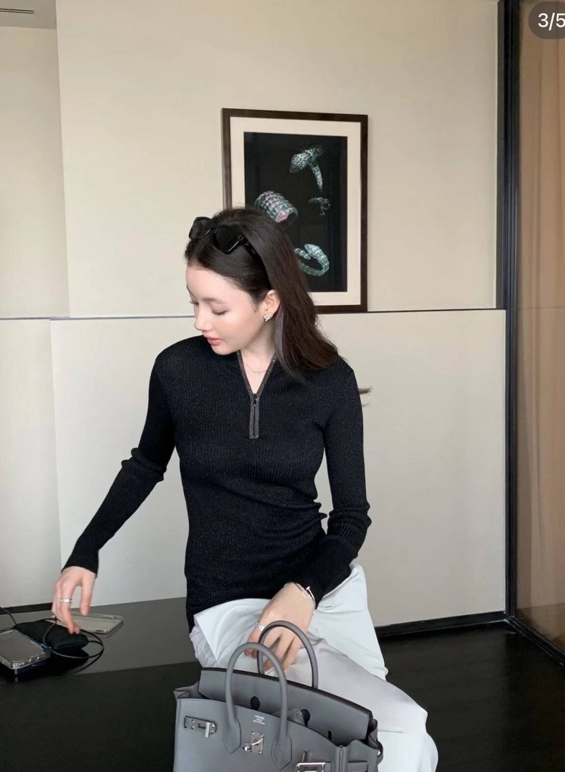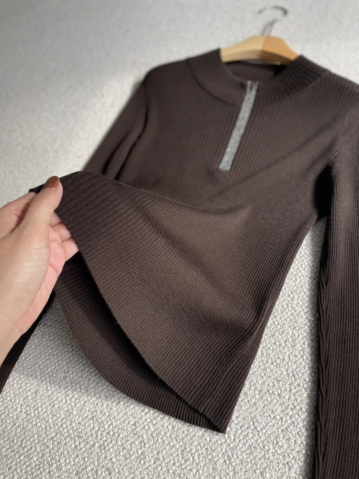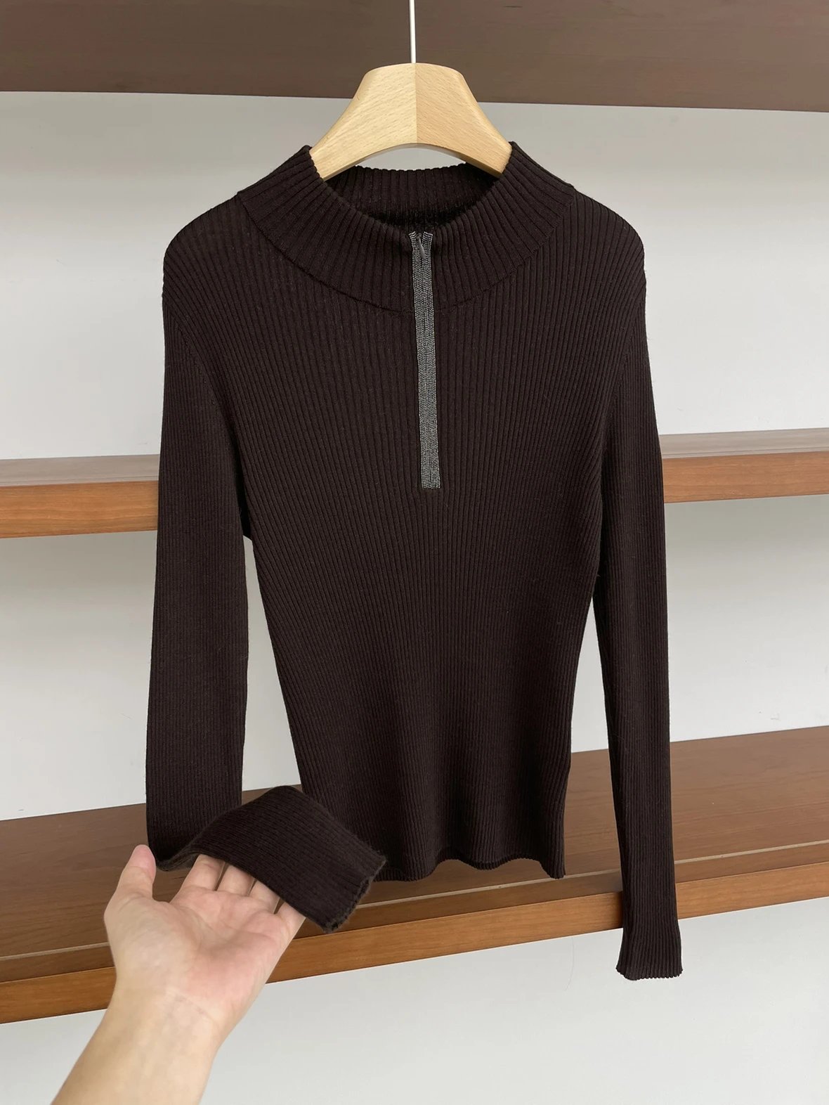 少量!重磅! bc半拉链打底 钉珠装饰 丝羊绒混纺 18针针织衫