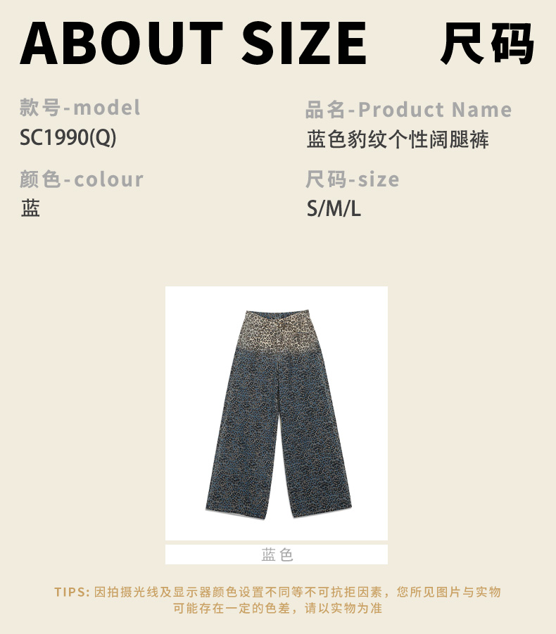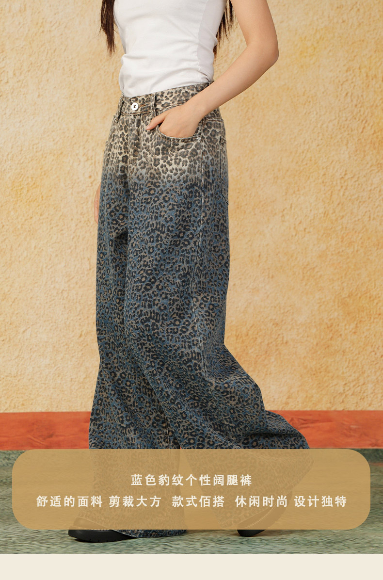 秋季蓝色豹纹个性阔腿裤女纪念日百货门店同款165499313