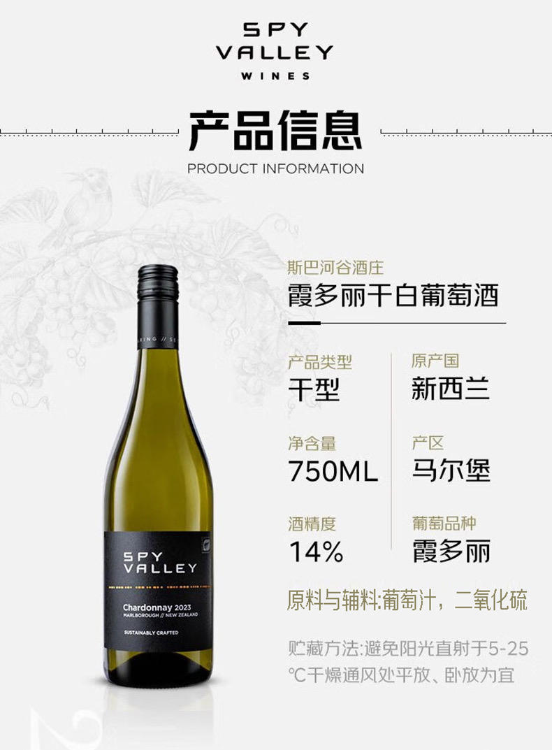 碟谷新西兰马尔堡长相思白葡萄酒750ml清新果香口感醇厚